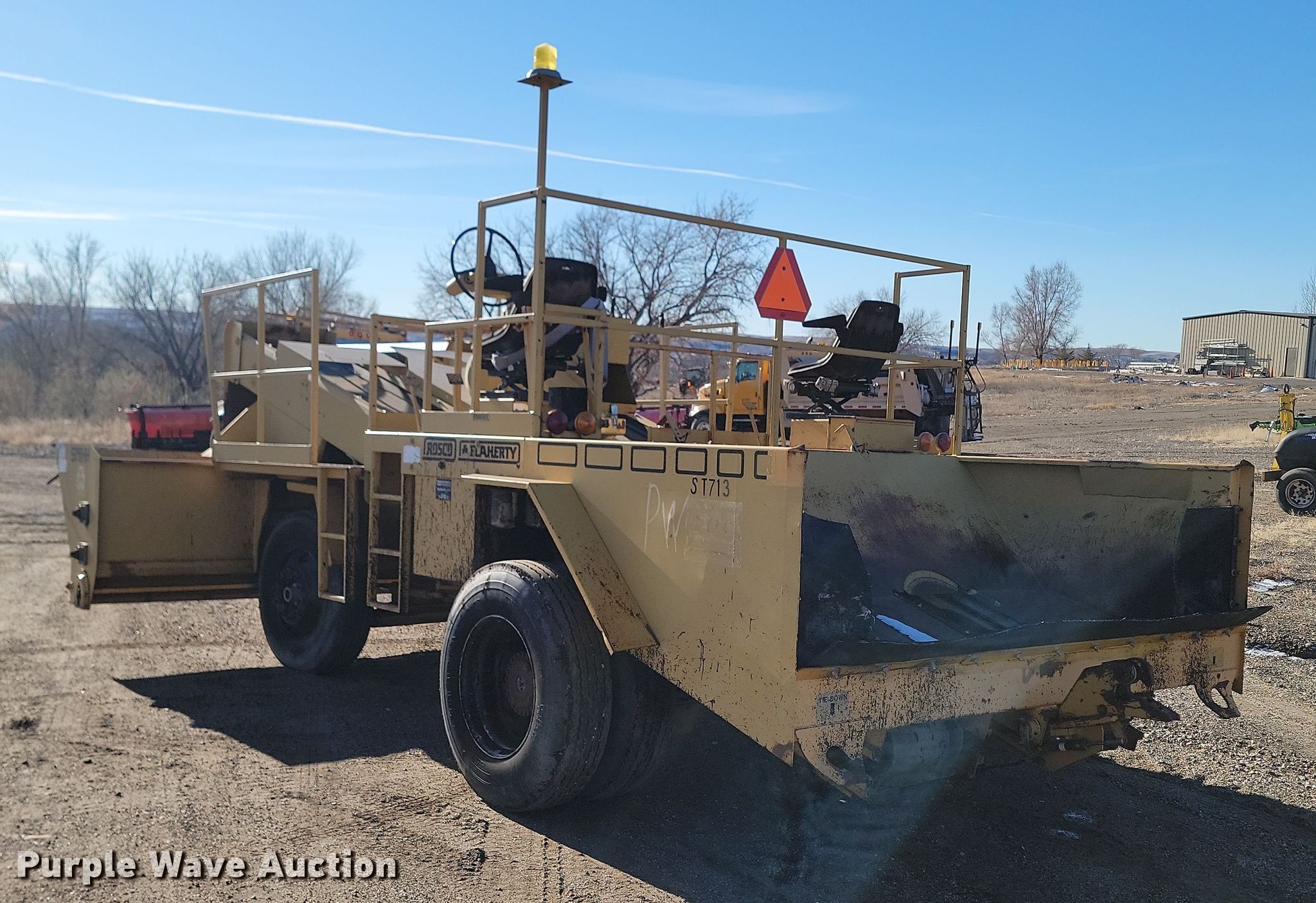 Purple Wave is selling a used Chip Spreader in South Dakota. This item is a 2000 Rosco SPRHH chip spreader with the following: Hours: 1,039 on meter, Serial: 37445, Unit #: ST713