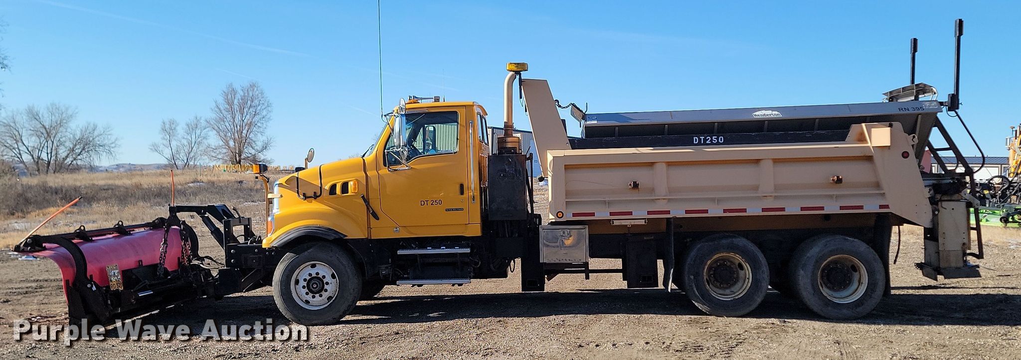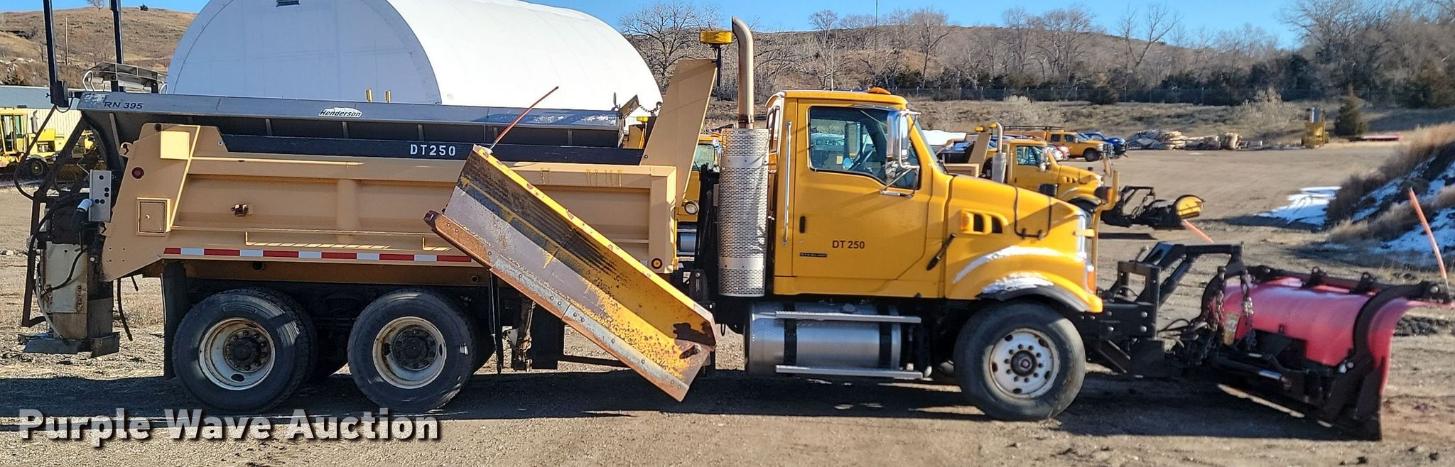 2009 Sterling LT9500 dump truck. Miles: 177,025 on odometer, Hours: 3,174 on meter, VIN: 2FZHAZDE59AAG5455, Unit #: DT250, RN395, RR775, RD520. Engine Caterpillar C13 Acert, Displacement: 12.5L, Cylinders: 6, Fuel type: Diesel, Engine brake. Transmission Automatic. Chassis Double frame, Axles: Tandem, Differential lock: Inter-axle, Suspension: Spring over walking beam, Brakes: Air, Front mount PTO, GVWR: 58,000 lbs FAWR: 18,000 lbs, IAWR: 20,000 lbs, RAWR: 20,000 lbs. Interior AC, Heat, Heated mirrors, Power windows, Cruise control. Features Dump bed 15' L x 96" W, Side height: 32", Bed type: Steel, Ram: Single , End gate: Air operated, Spreader Henderson, Plow Wausau, Width: 144", Wing plow Monroe, Width: 96". Tires Front: 385/65R22.5 , Rear: 11R22.5. Notes Dash warning indicator: Check engine, Engine stop, Check transmission, Transmission issues , Unit must be towed or hauled, Non-operational unit. South Dakota title. Title distribution may be delayed up to 14 days from verification of funds. State of South Dakota Bureau of Administration. 104 South Garfield Avenue. Pierre, SD 57501