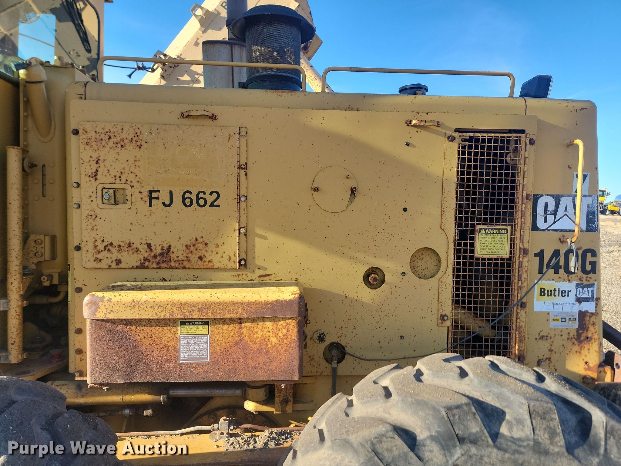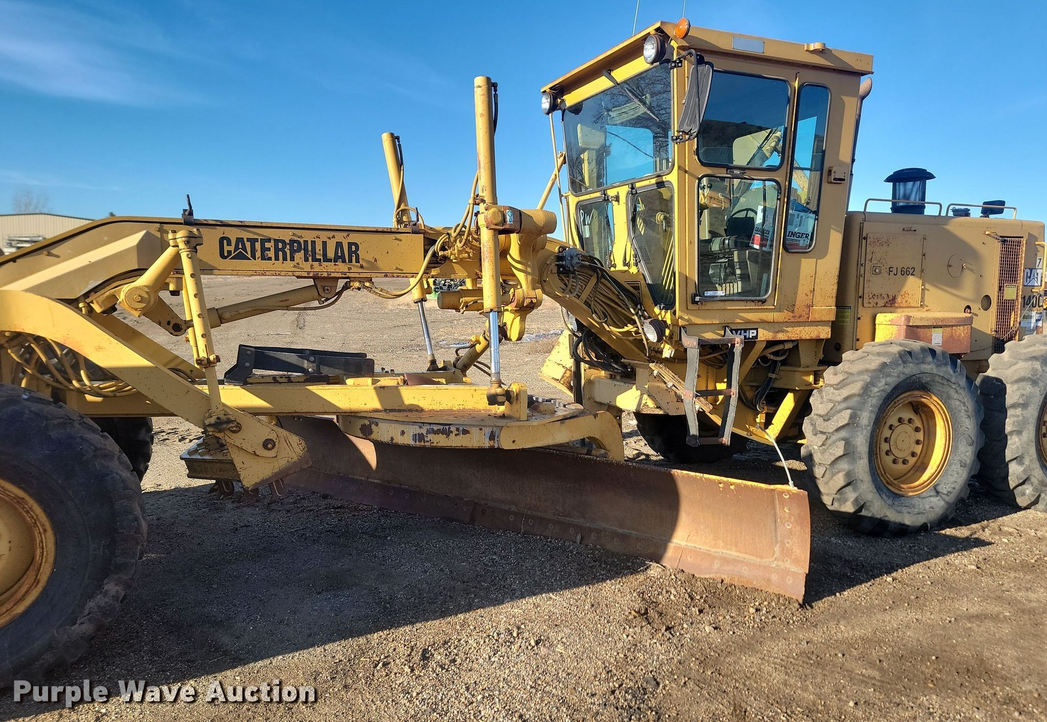 Purple Wave is selling a used Motor Grader in South Dakota. This item is a 1994 Caterpillar 140G motor grader with the following: Hours: 9,336 on meter, Serial: 72V16412, Unit #: FJ662, RR650