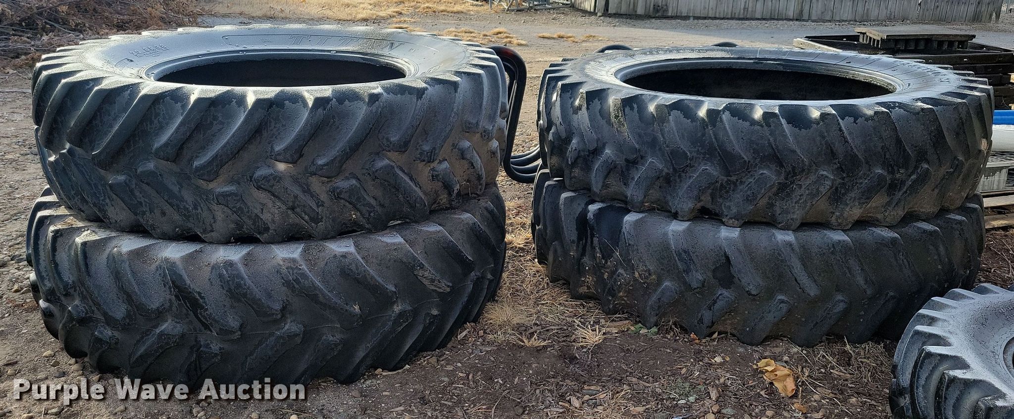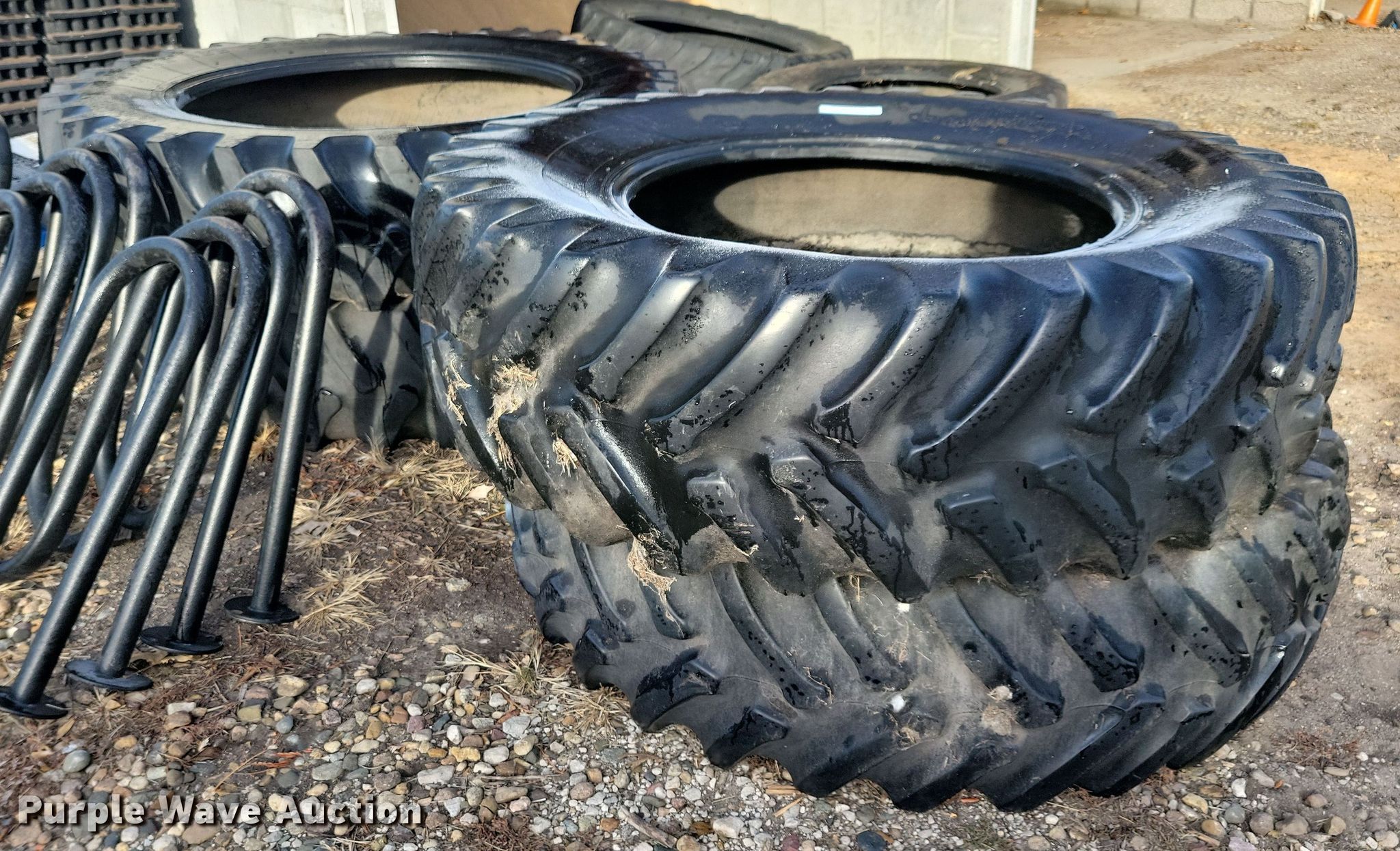 Purple Wave is selling a used Industrial Tires or Tracks in Iowa. This item is a (4) tractor tires with the following: (2) Titan 20.8R38, (2) Firestone 480/80R46