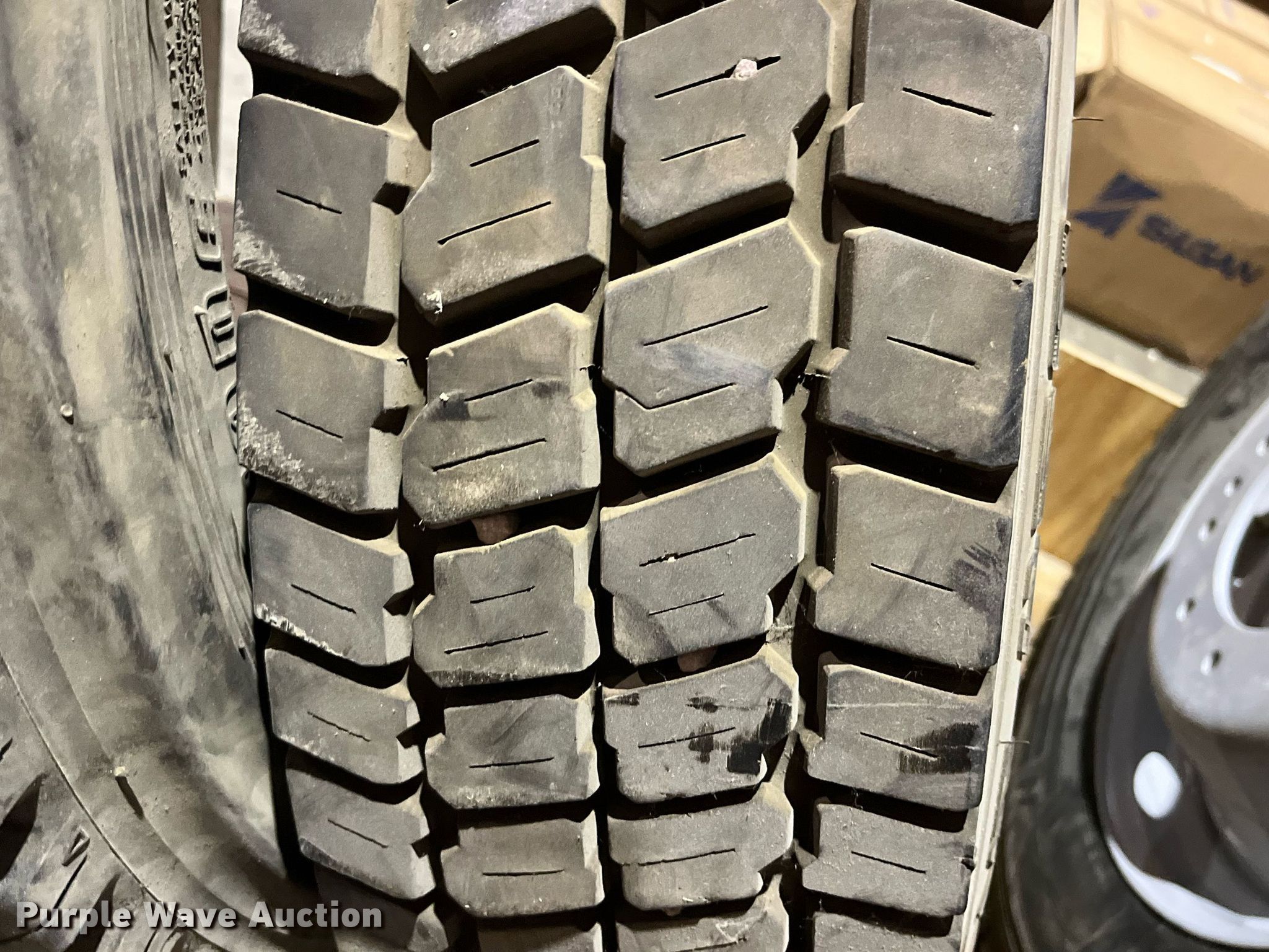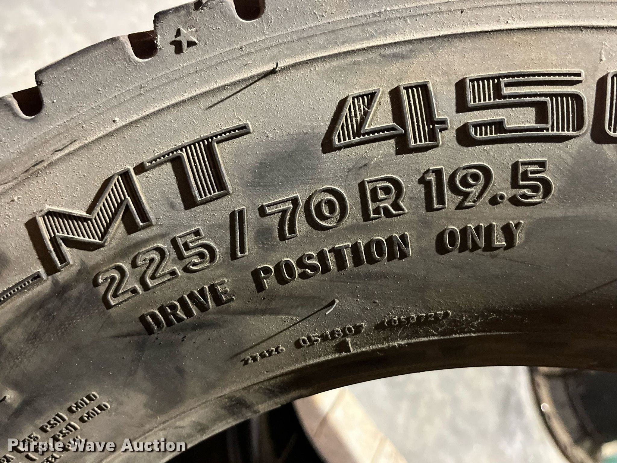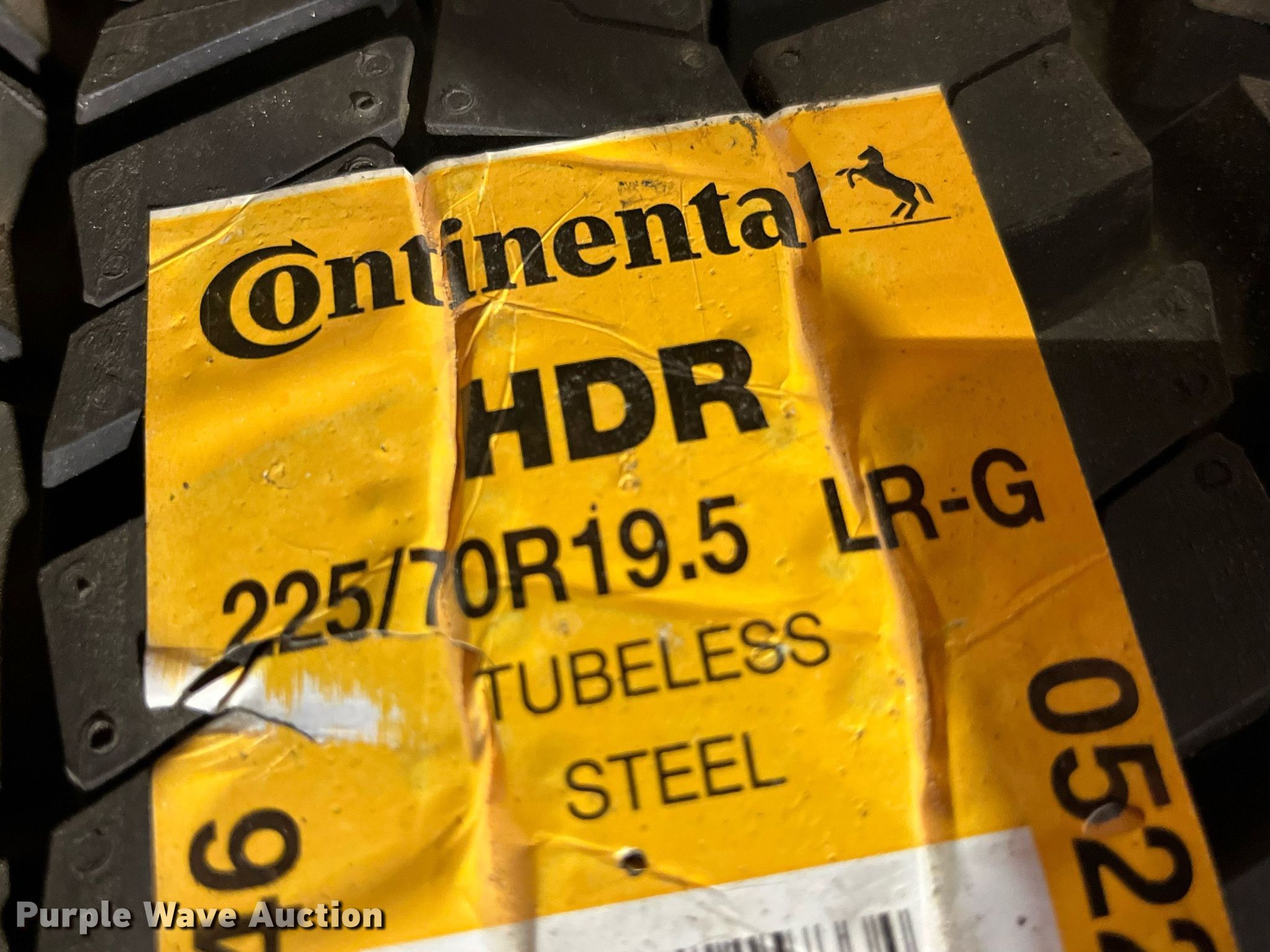 Purple Wave is selling a used Fleet Tires in Missouri. This item is a (3) tires with the following: Bridgestone M724 245/70R19.5, Continental General LMT 450 225/70R19.5, Continental HDR 225/70R19.5 with wheel, Cart not included