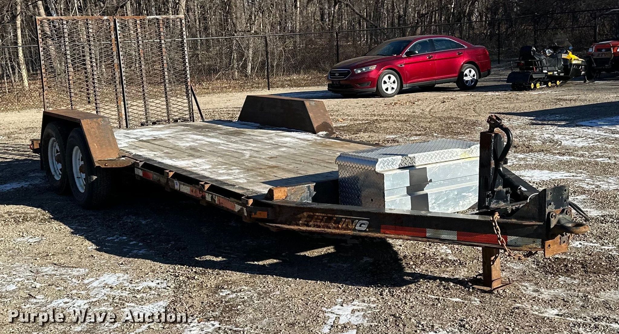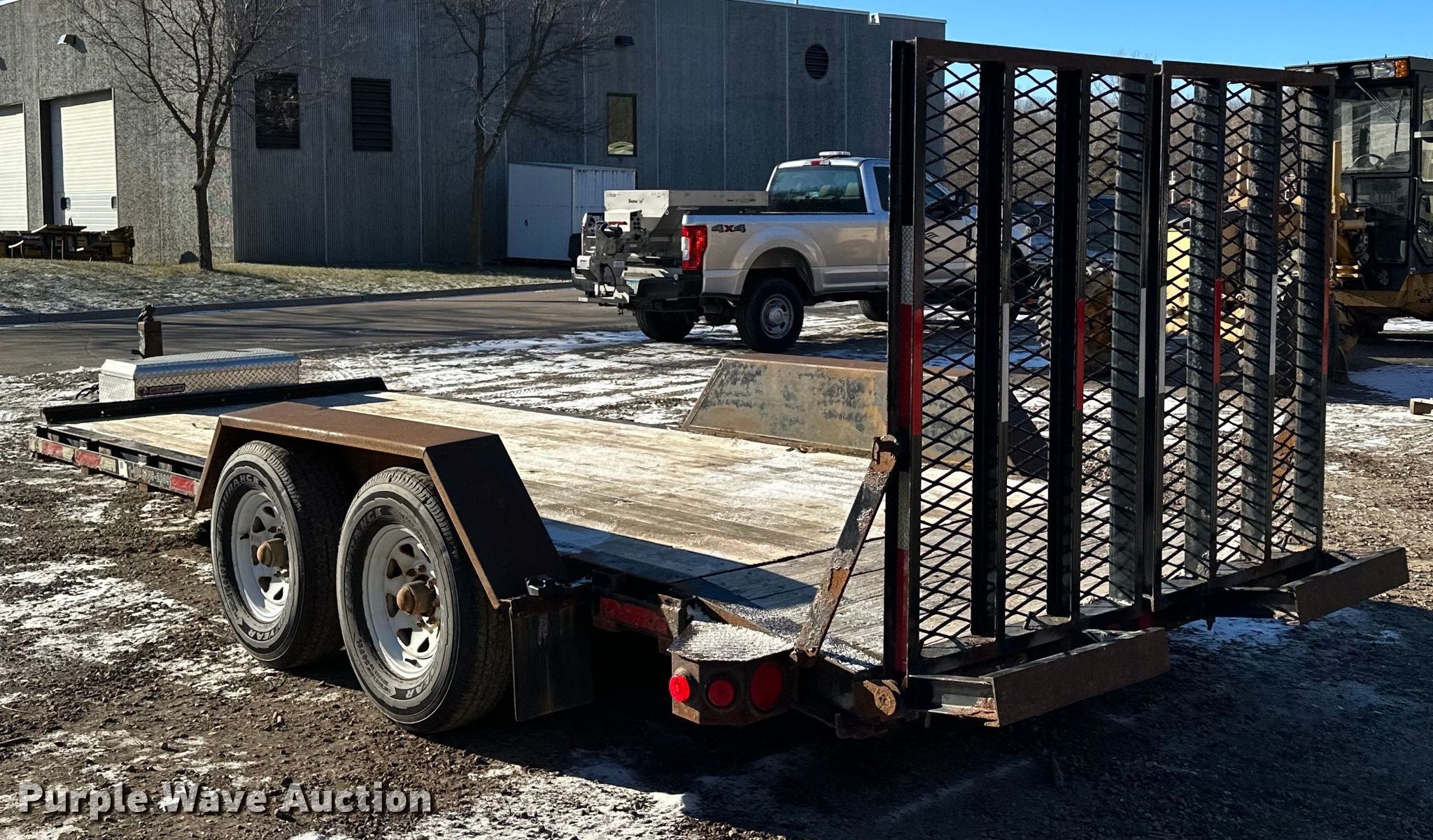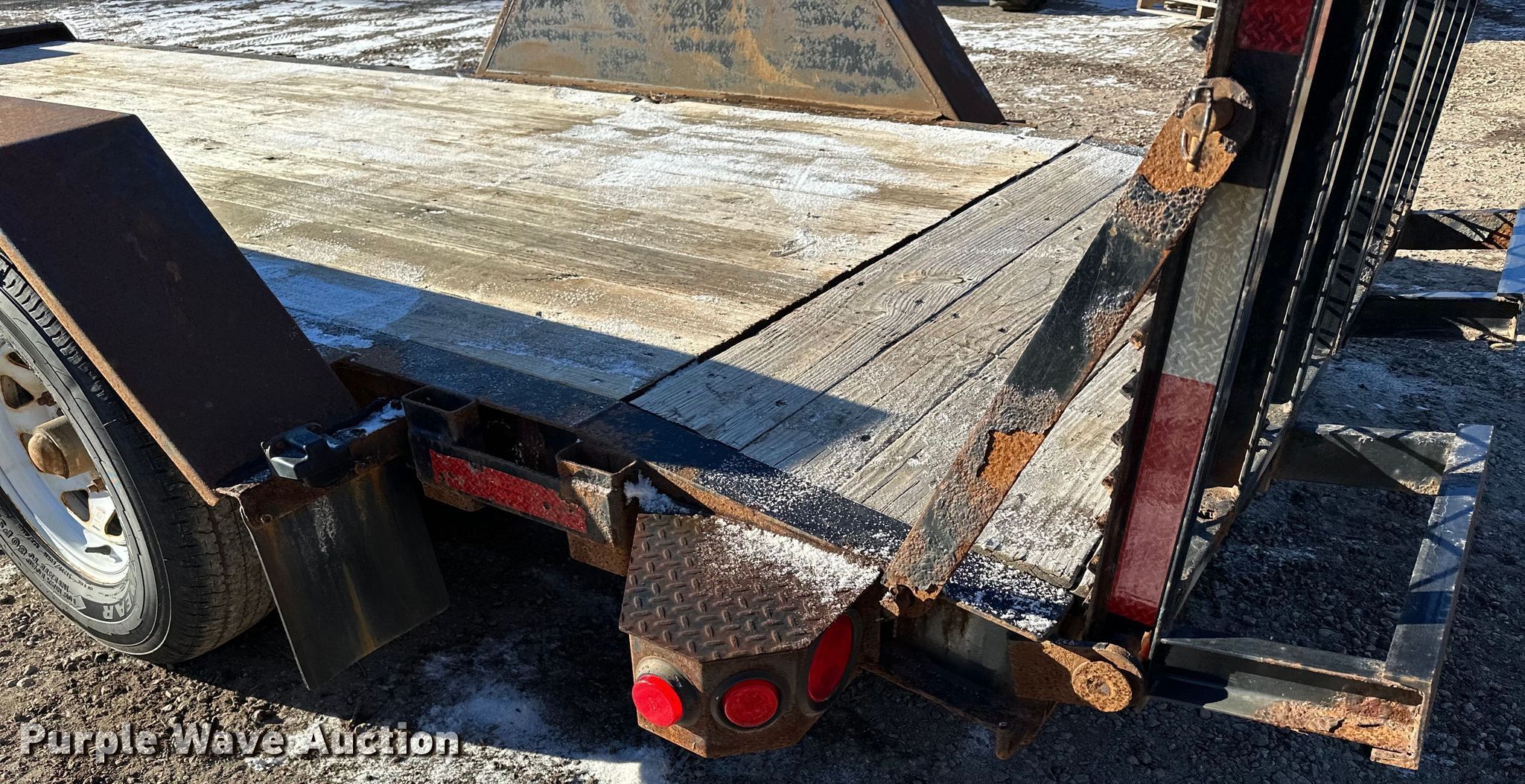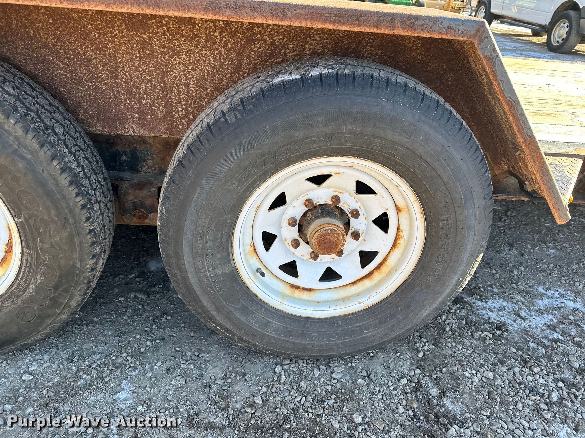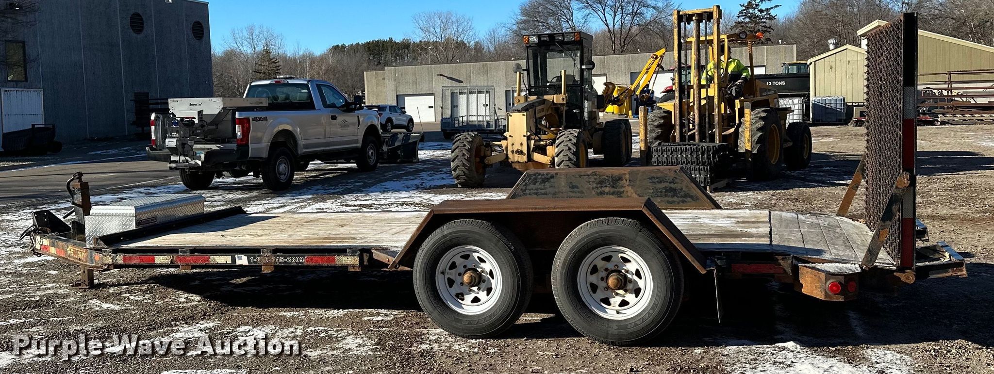 2013 Felling equipment trailer. VIN: 5FTEE1823D1041456. Dimensions Overall: 23' 7" L x 102" W, Deck: 16' 1" L x 81 1/2" W, Deck height: 1' 9", Tail length: 2' 3", Ramps: Manual Length: 4' 9". Features Deck type: Wood. Chassis Hitch: Pintle, Landing gear: Single, Suspension: Spring, Brakes: Electric, Axles: Tandem, GVWR: 12,000 lbs, GAWR: 6,000 lbs. Tires Steel wheels, Size: ST235/80R16. Notes Rear axle broken. Minnesota title. Title distribution may be delayed up to 14 days from verification of funds. Tree Rivers Parks. 2330 County Rd 19. Maple Plain, MN 55359