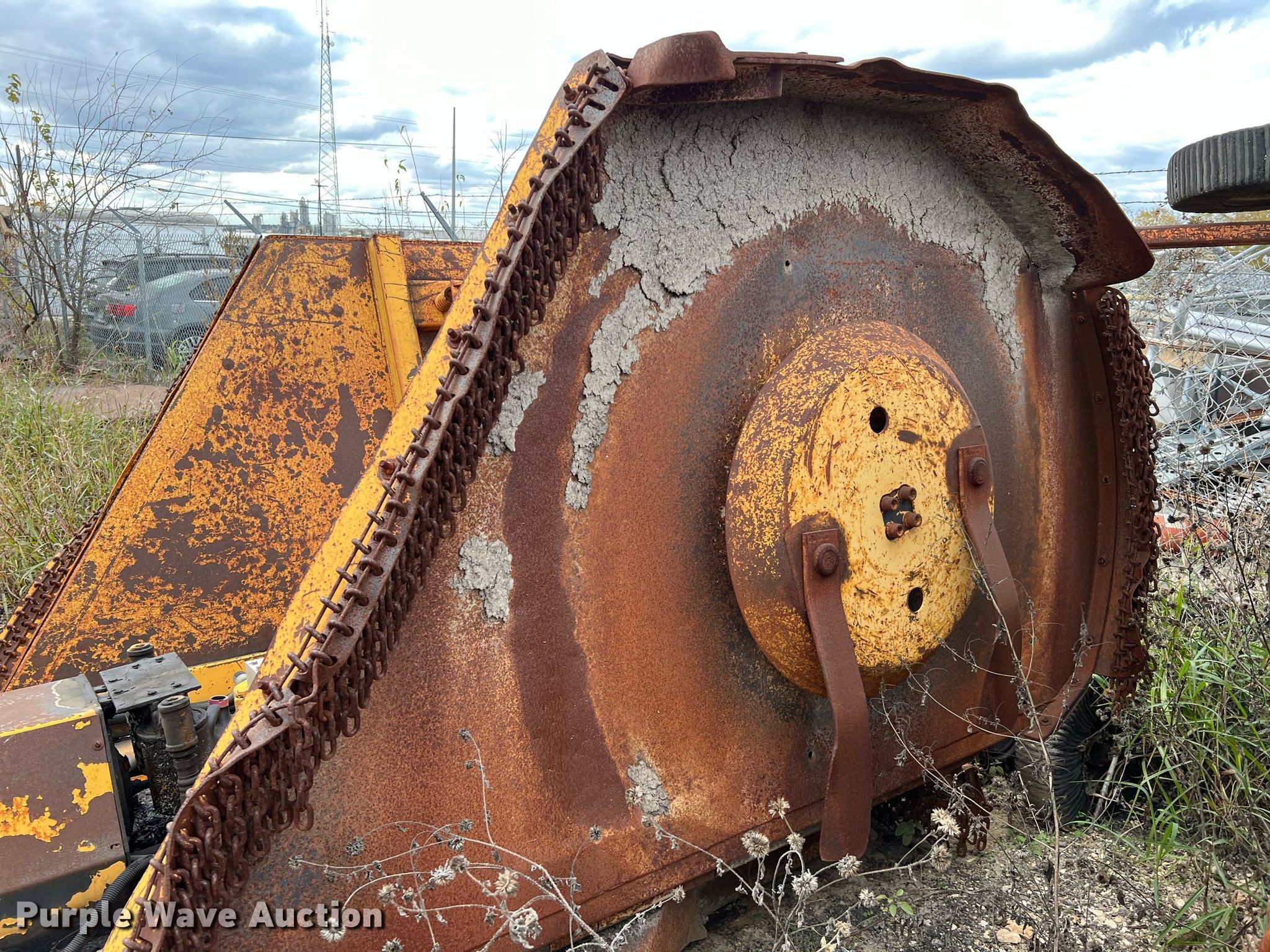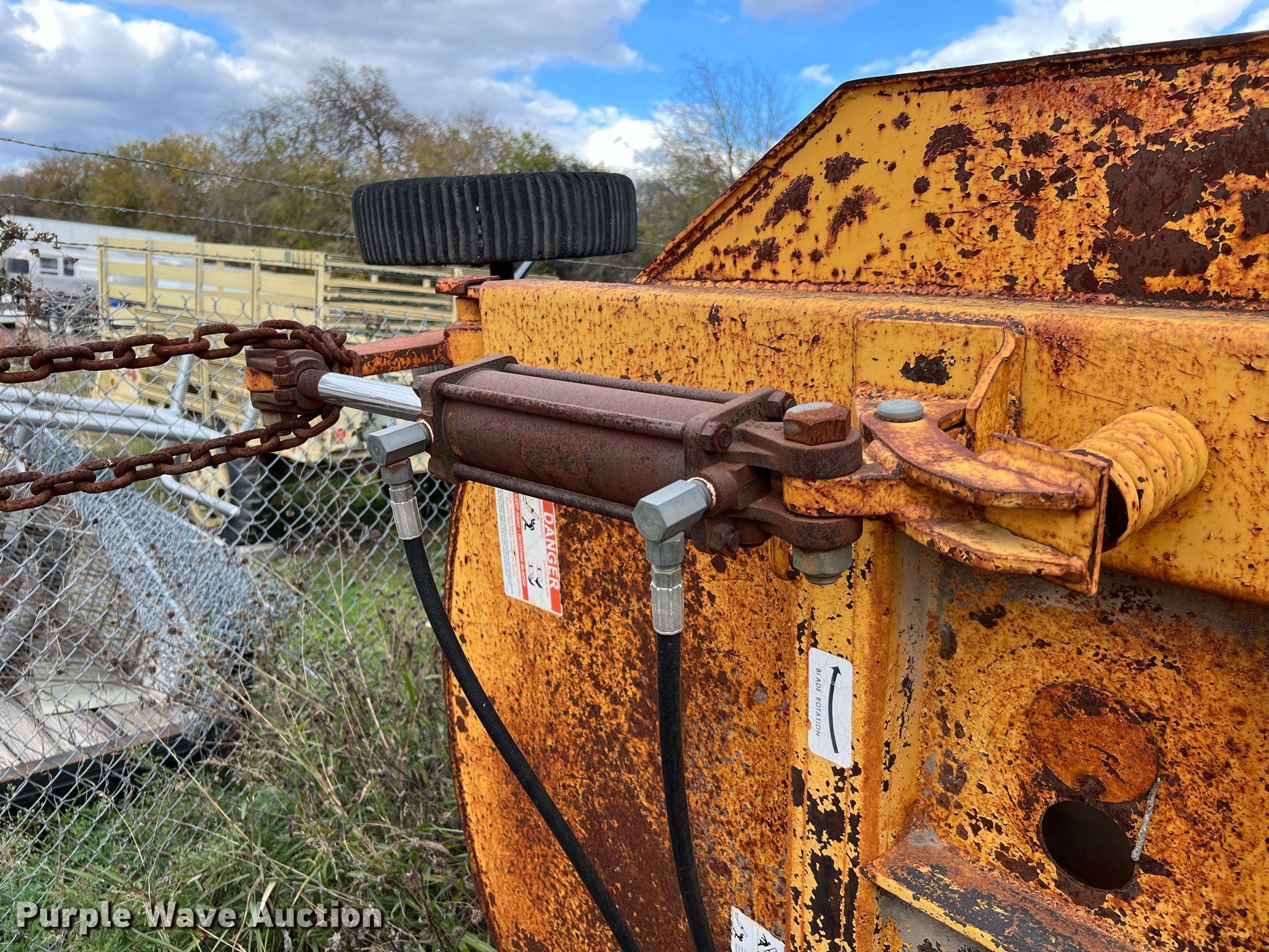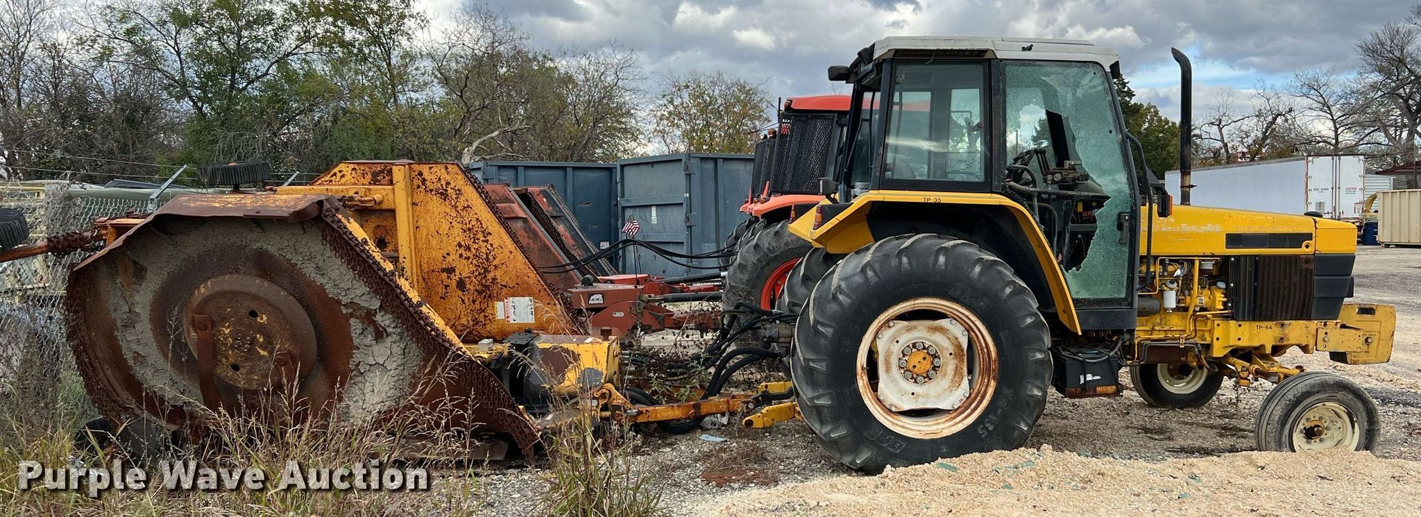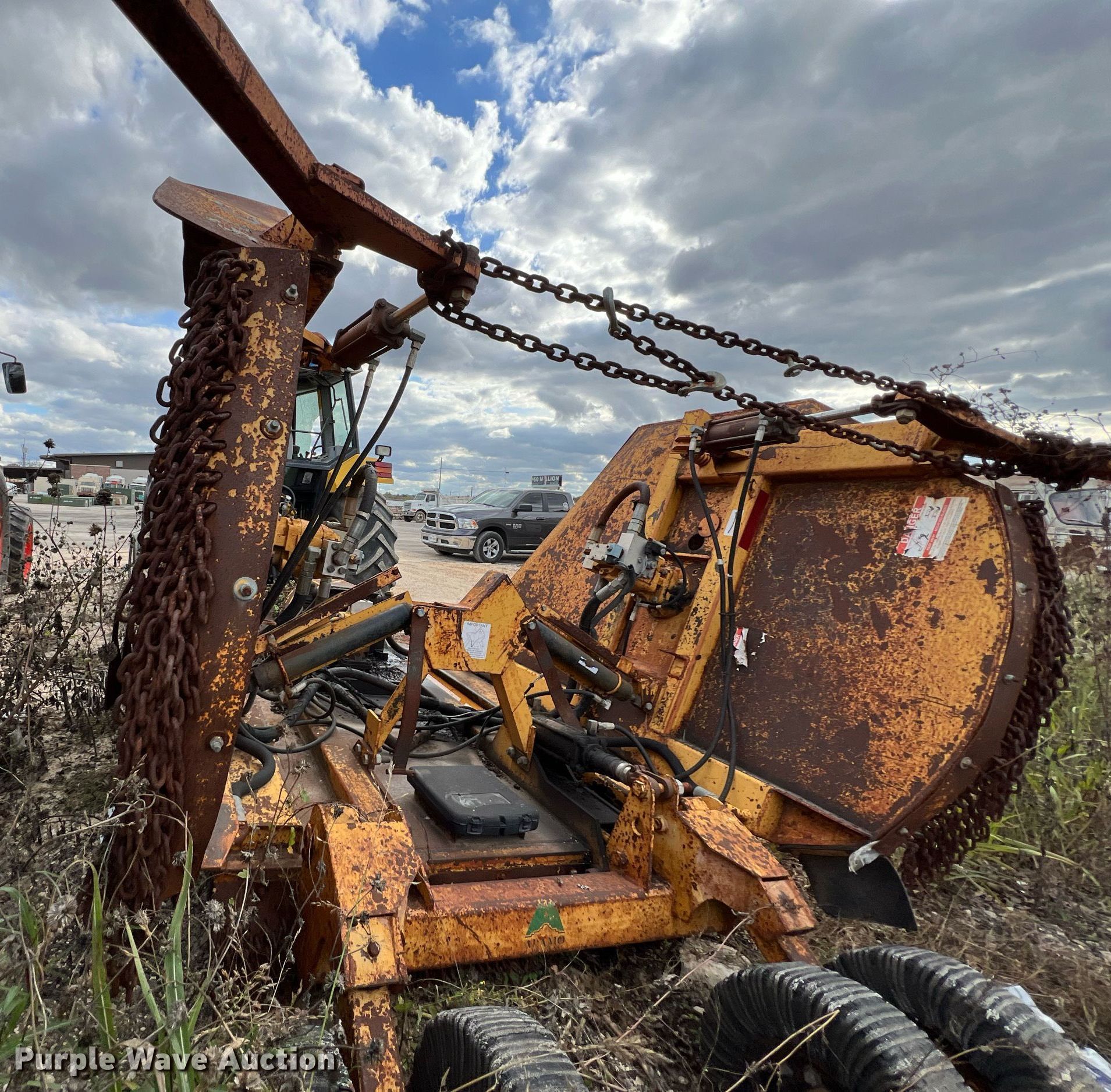 Ford New Holland FA5PVR tractor. Hours: 1,698 on meter, Serial: 011322B. Engine Cylinders: 4, Fuel type: Diesel. Transmission Synchro, 12F - 12R. Operators station AC, Heat. Features PTO: 540, Three point, Seven pin outlet, Hydraulic remote sets Rear: 1, Power beyond (hydraulics), Suitcase weights: 4. Tires Front: 30x9.5-14, Rear: 18.4-30. Notes No key, Glass missing , Glass cracked, Unknown operating condition. Alamo Industrial rotary mower. Features Width: 15' , Hydraulic fold , Hydraulic lift, Tire size: 20". City of New Braunfels. 155 South Water Lane. New Braunfels, TX 78130