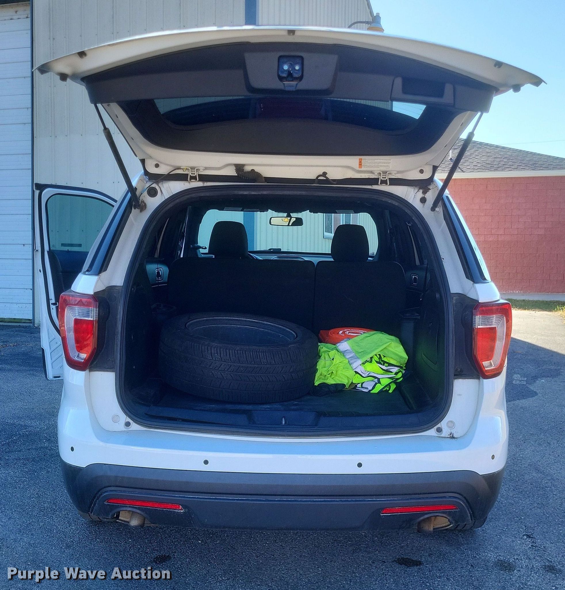 2017 Ford Explorer Police Interceptor SUV. Miles: 105,076 on odometer, VIN: 1FM5K8AR6HGC63264. Engine Displacement: 3.7L V6 DOHC, Cylinders: 6, Fuel type: Gas. Transmission Automatic, All wheel drive. Interior AC, Heat, Seat: Power driver, Heated mirrors, Power windows, Power locks, Cruise control, Backup camera. Tires Size: 245/55R18. Notes Dash warning indicator: Airbag, Missing center console , Non-operational radio, Contents not included , Heater issues, does not turn off. Missouri title. Title distribution may be delayed up to 14 days from verification of funds. City of Dexter, MO. 305 Cooper Street. Dexter, MO 63841