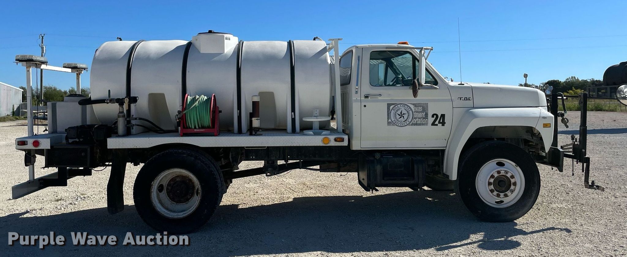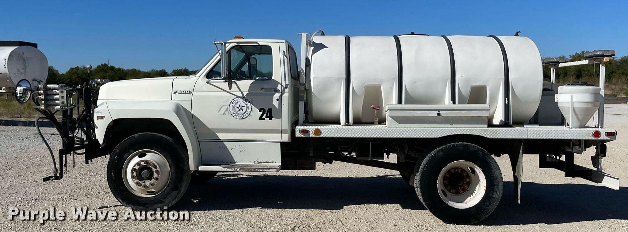 Purple Wave is selling a used Tank Truck or Water Truck in Texas. This item is a 1994 Ford F600 water truck with the following: Miles: 54,077 on odometer, Hours: 3,945 on meter, VIN: 1FDWF60J4RVA23149