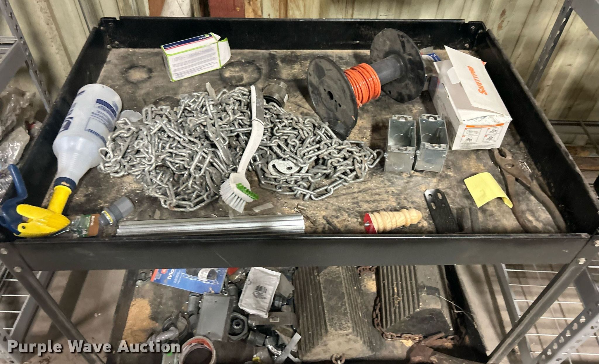 Purple Wave is selling a used Tools in Oklahoma. This item is a Tools with the following: Daytona 6" grinder, HP: 1/2, Phase: Single, Volts: 115, Vise, Table, 8' L x 37" W, (4) metal shelves, (2) carts