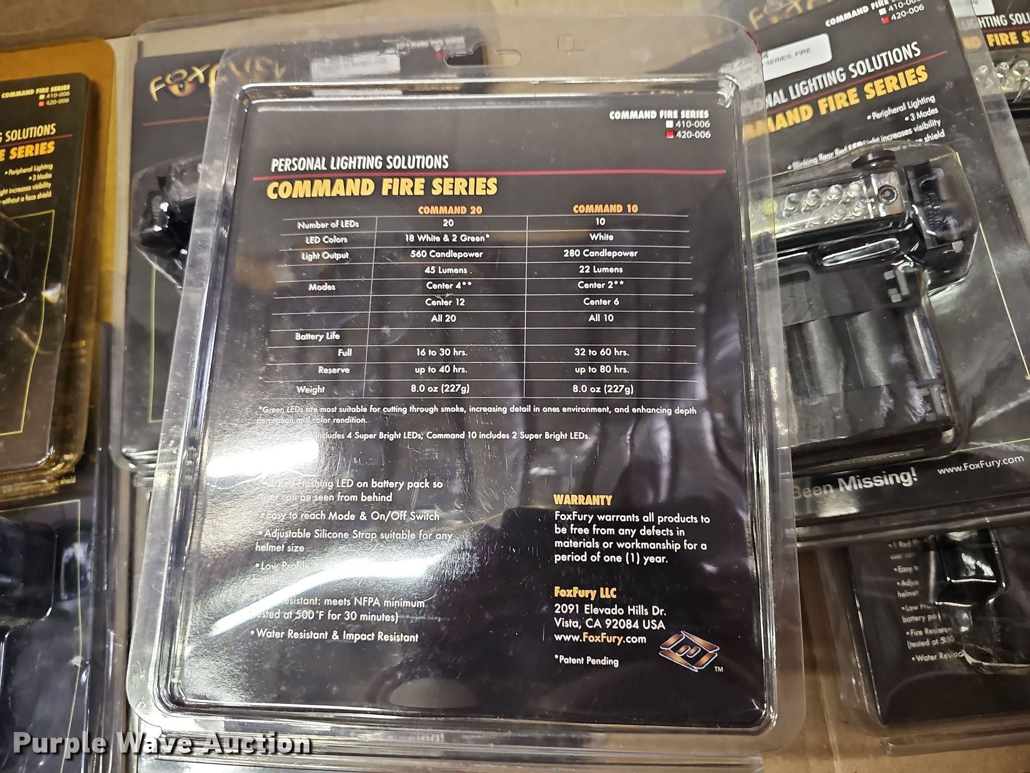 Purple Wave is selling a used Tools in Kansas. This item is a (8) FoxFury helmet lights with the following: Unused