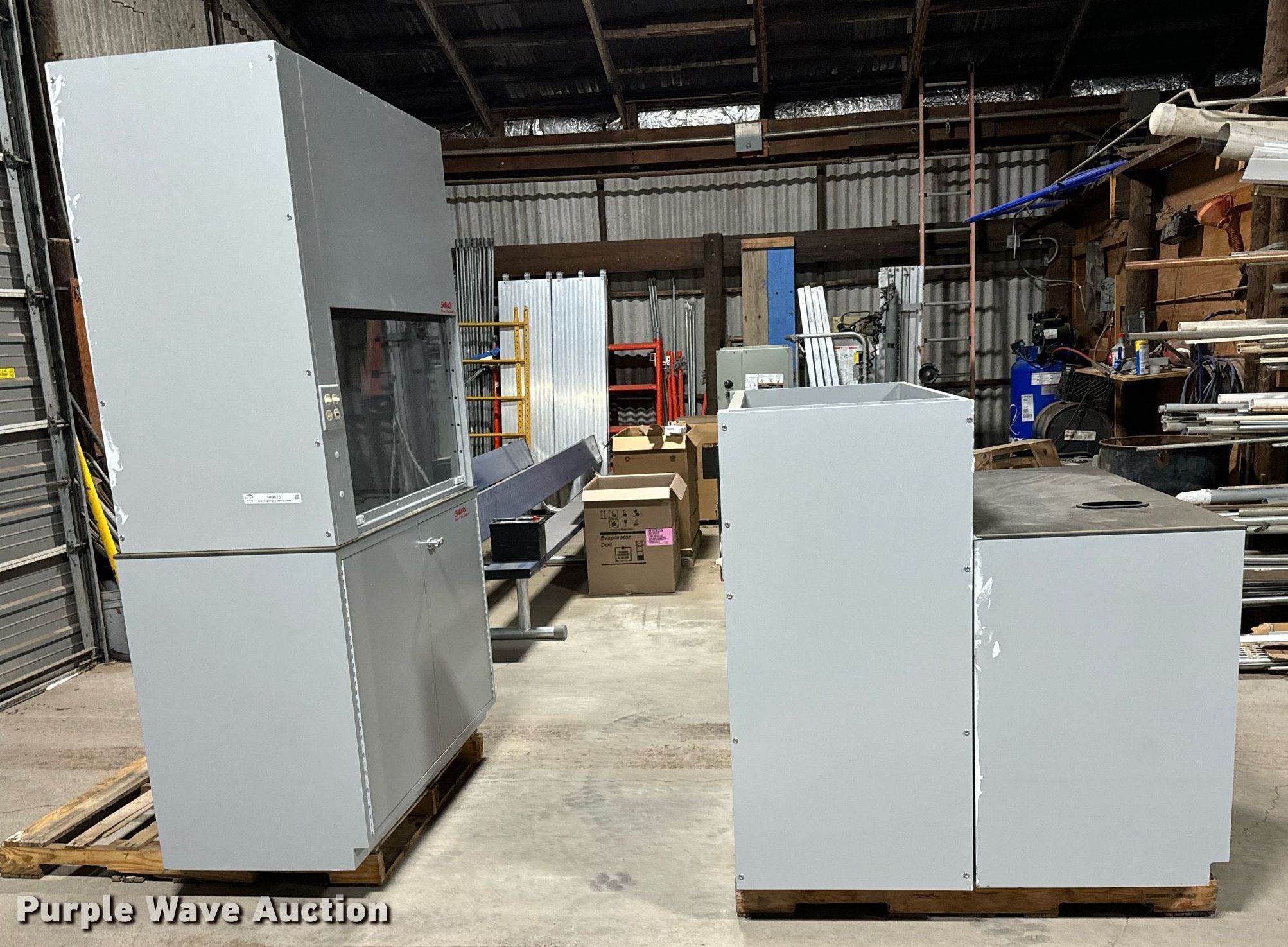 Purple Wave is selling a used Medical Equip. in Kansas. This item is a (2) SciMatCo flume cabinets with the following: Dayton 2C890 blower, Motor, Phase: Single, HP: 3/4, Unused