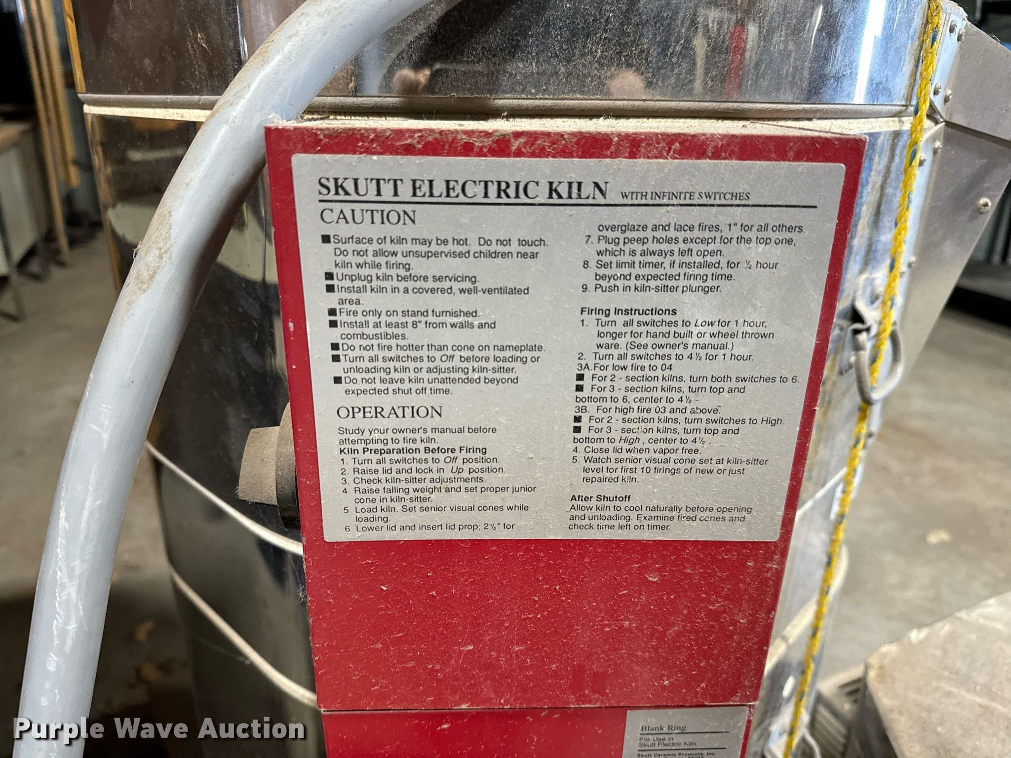 Purple Wave is selling a used Tools in Kansas. This item is a (5) kilns with the following: Skutt KM-1027-3, Serial: 1371, Volts: 208, Phase: Three, Skutt 818-240, Volts: 240, Phase: Single, Paragon A119R3, Phase: Single, Volts: 120, (2) Paragon QuickFire 6, Phase: Single, Volts: 120