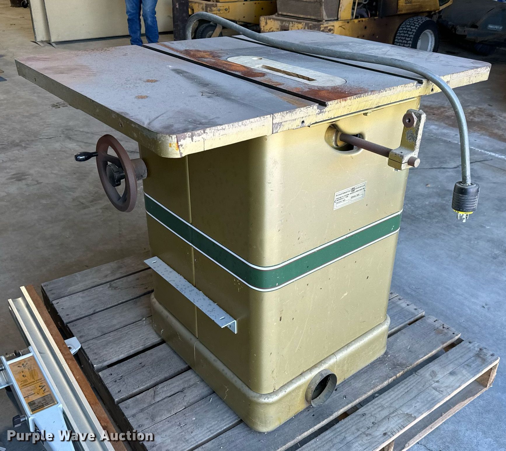 Purple Wave is selling a used Tools in Kansas. This item is a Powermatic Houdsille 66 table saw with the following: Serial: 83661390, Phase: Three, HP: 3, Volts: 208-230/460