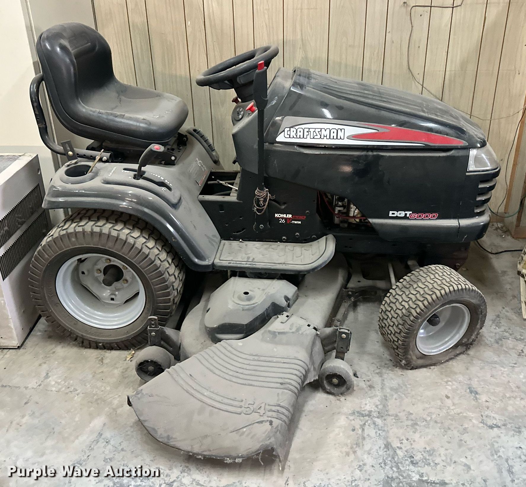 (2) Craftsman DGT6000 lawn mowers. Cutting width: 50". Engine Kohler , Cylinders: 2, Fuel type: Gas, HP: 26. Transmission Hydrostatic. Tires Front: 16x8.50-8, Rear: 23-10.50x12. Notes Unknown operating condition. Horton, KS 66439