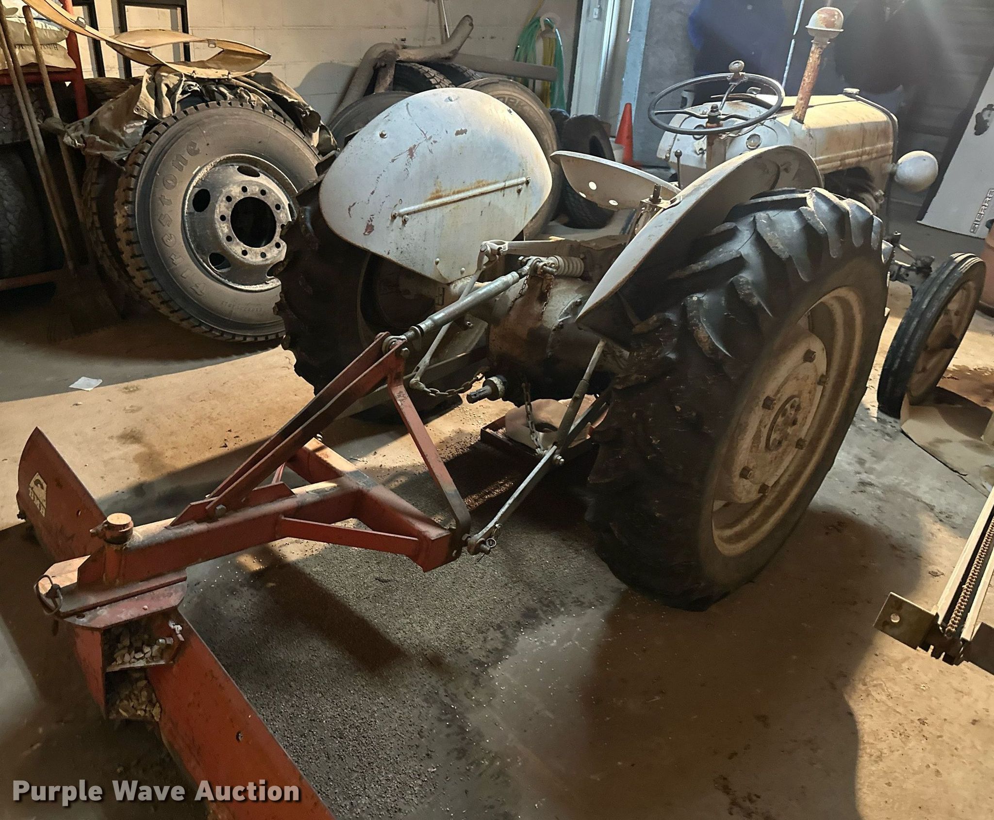 Ford 2N tractor. Serial: 9N292014. Engine Ford, Displacement: 2.0L, Cylinders: 4, Volts: 12, Fuel type: Gas. Transmission Manual, 3F - 1R. Features PTO: 540, Three point Top link, Rear blade: 6' W. Tires Front: 4.00-19.5, Rear: 11.2-28. Notes Unknown operating condition. Horton, KS 66439