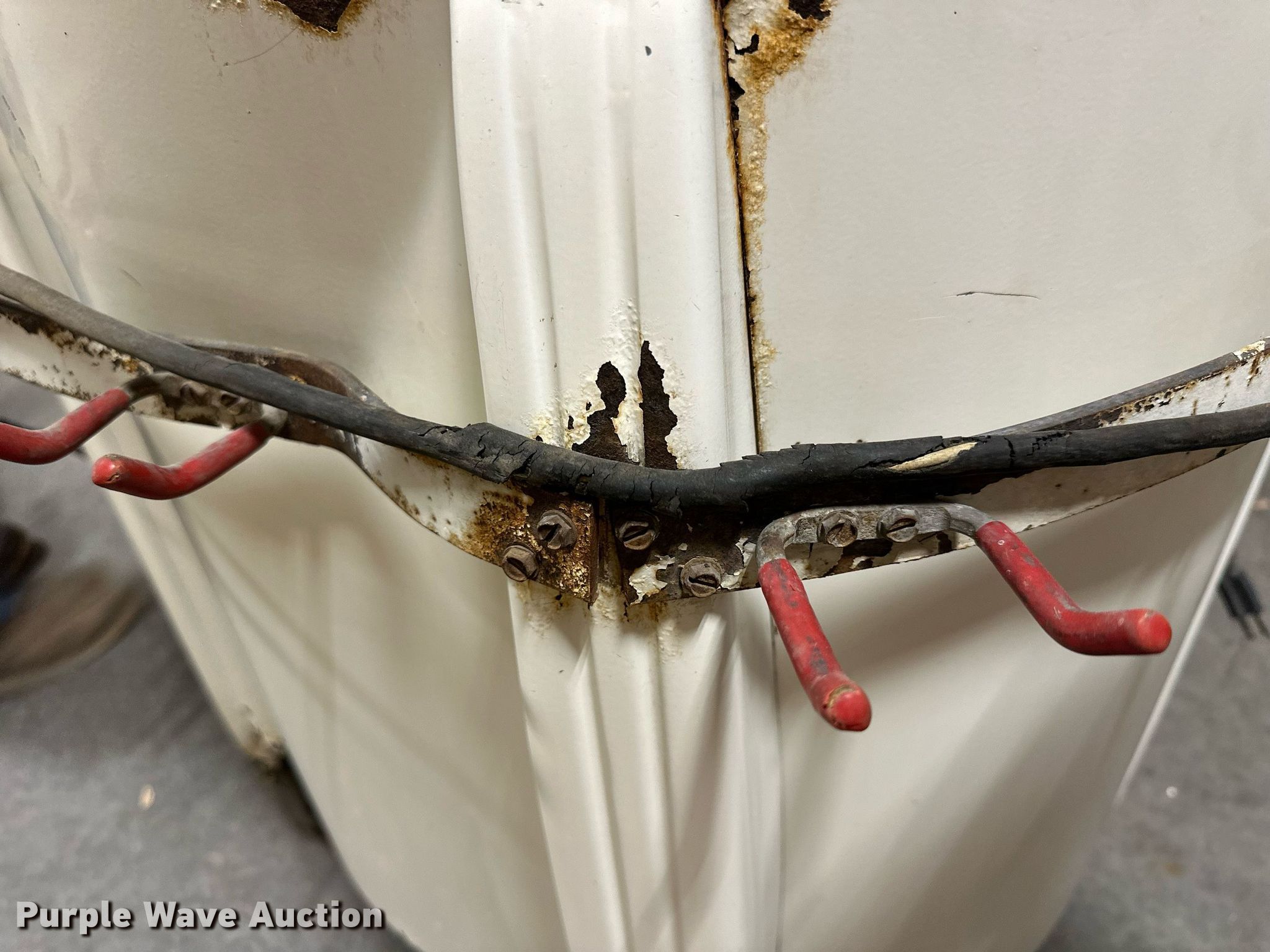 Purple Wave is selling a used Office Supplies and Equip. in Kansas. This item is a Office supplies with the following: (33) chairs, Office table, 72" L x 36" W x 28" H, Tool cabinet, 34" L x 18" W x 36" H, McGraw Edison Co washer, Electrical cord damaged, Thoro-Matic floor buffer, (3) 17" floor buffing pads, Sunbeam YLR2-5-24H2 water dispenser, Serial: 20060505514, Water jug