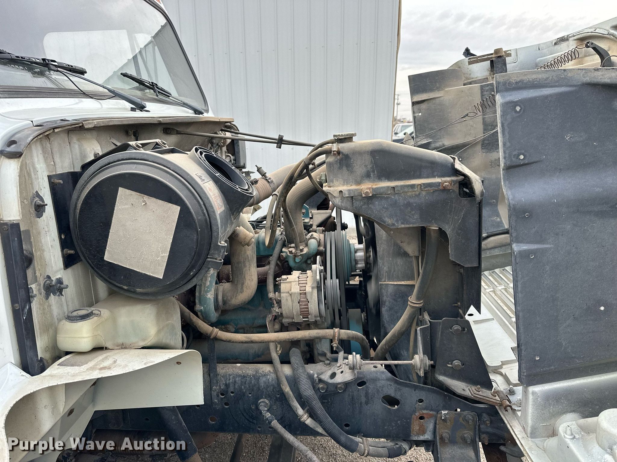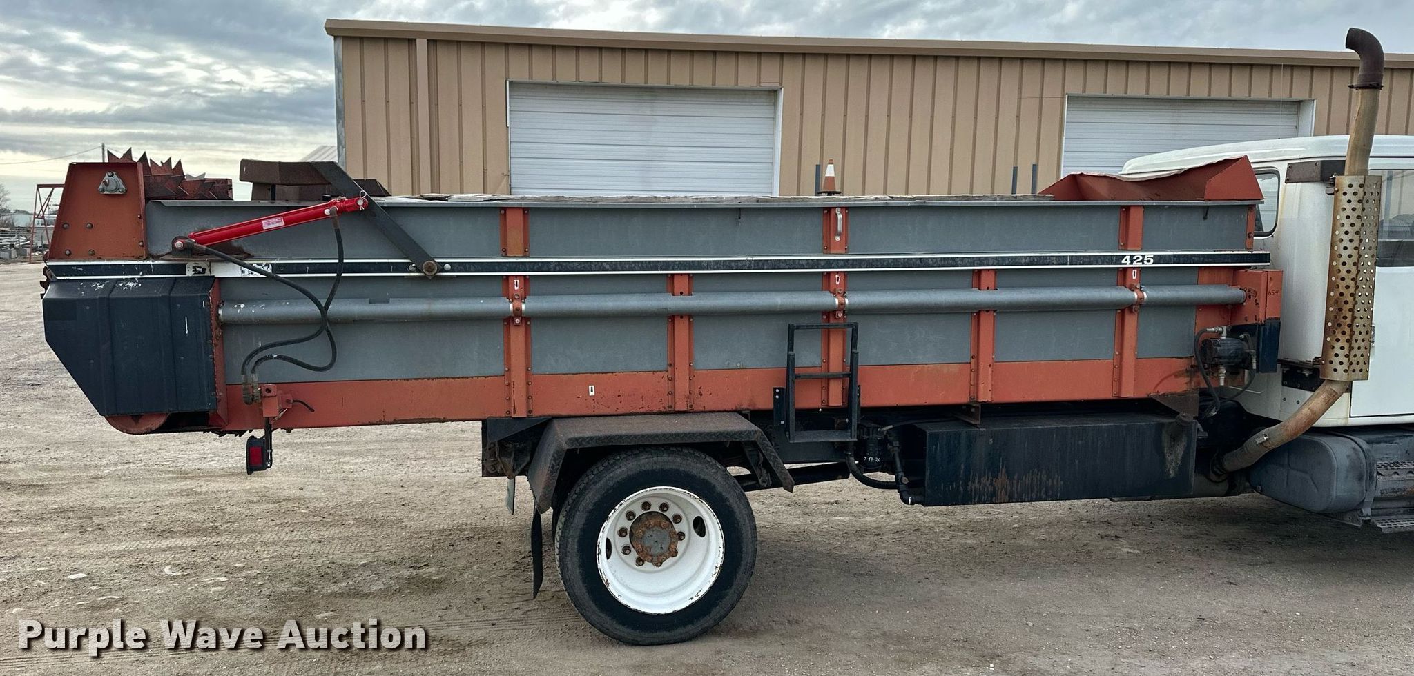 1991 International 4700 manure spreader truck. Miles: 94,494 on odometer, Hours: 5,475 on meter, VIN: 1HTSCNPN3MH366205, Unit #: 654. Engine International DT360, Displacement: 5.9L, Cylinders: 6, Fuel type: Diesel. Transmission Automatic. Chassis Axles: Single, Suspension: Spring, Brakes: Air, PTO, GVWR: 32,200 lbs, Wheelbase: 206". Interior Heat. Features Manure spreader bed Gehl MS425, Serial: 5051, 20' L x 74" W, Side height: 40", Chain driven floor, Rear beaters: Horizontal Quantity: 2, End gate: Hydraulic. Tires Front: 10R22.5, Rear: 9R22.5. Kansas title. Title distribution may be delayed up to 14 days from verification of funds. City of Hays, KS. 1002 Vine St. Hays, KS 67601