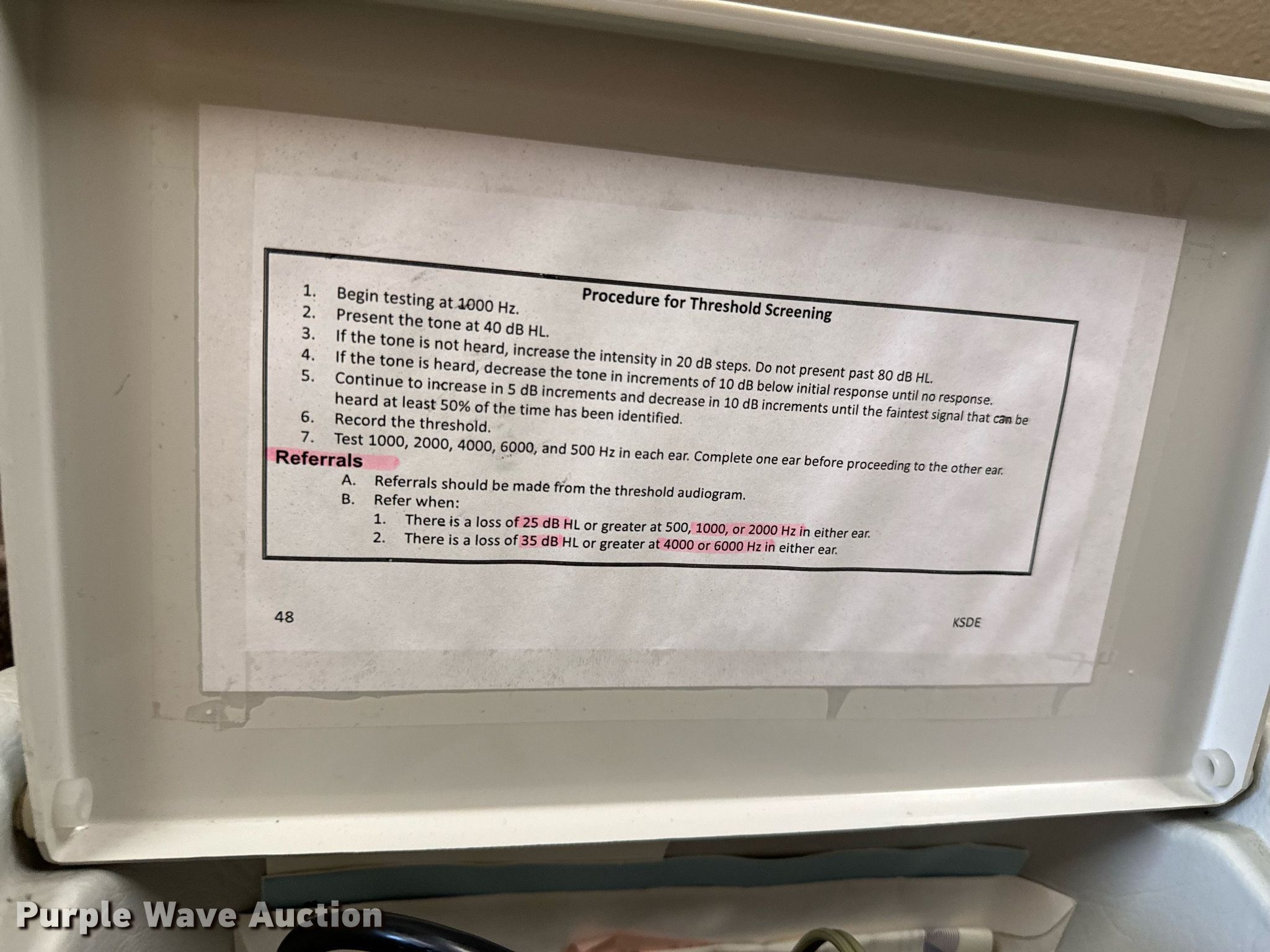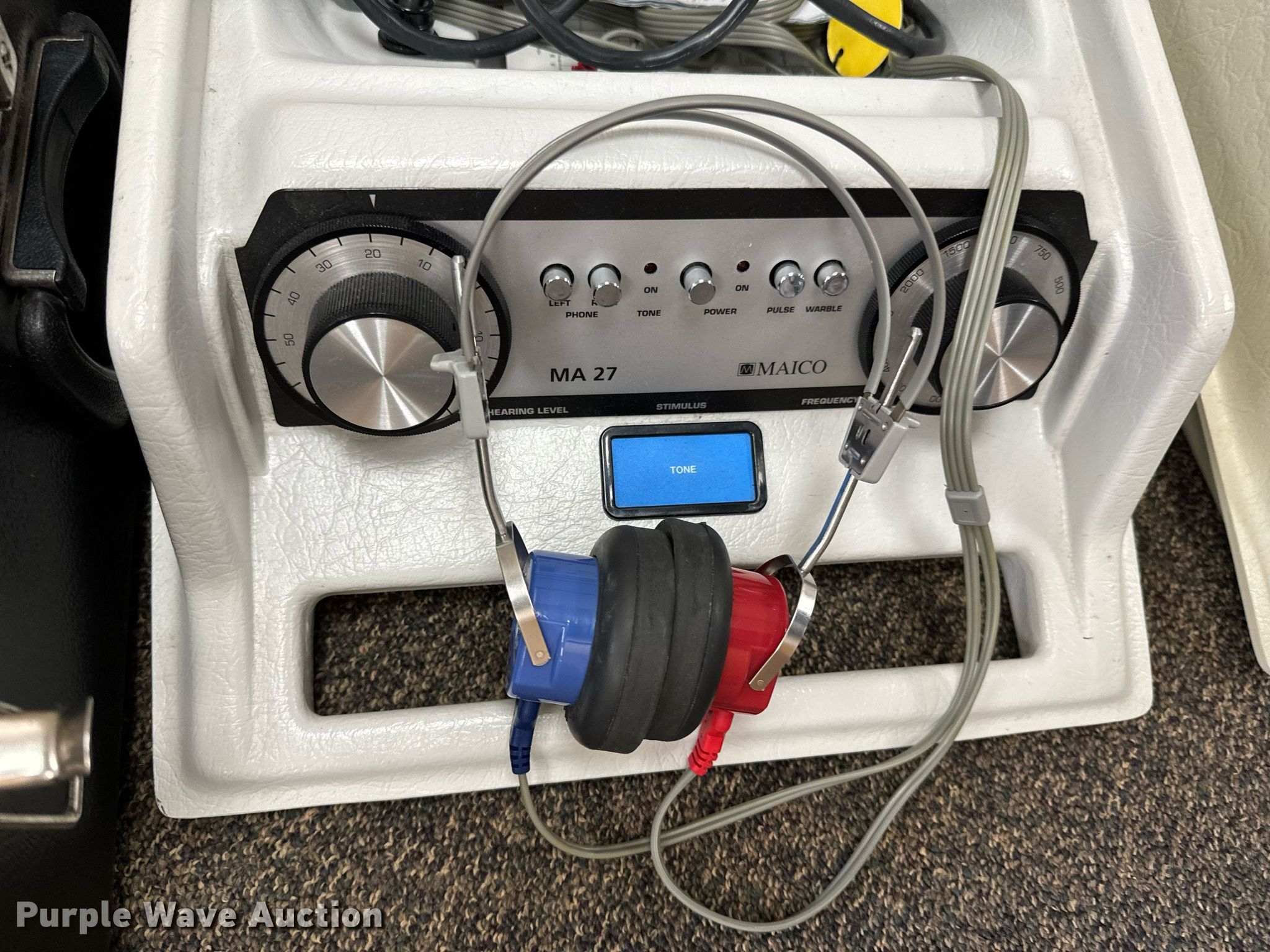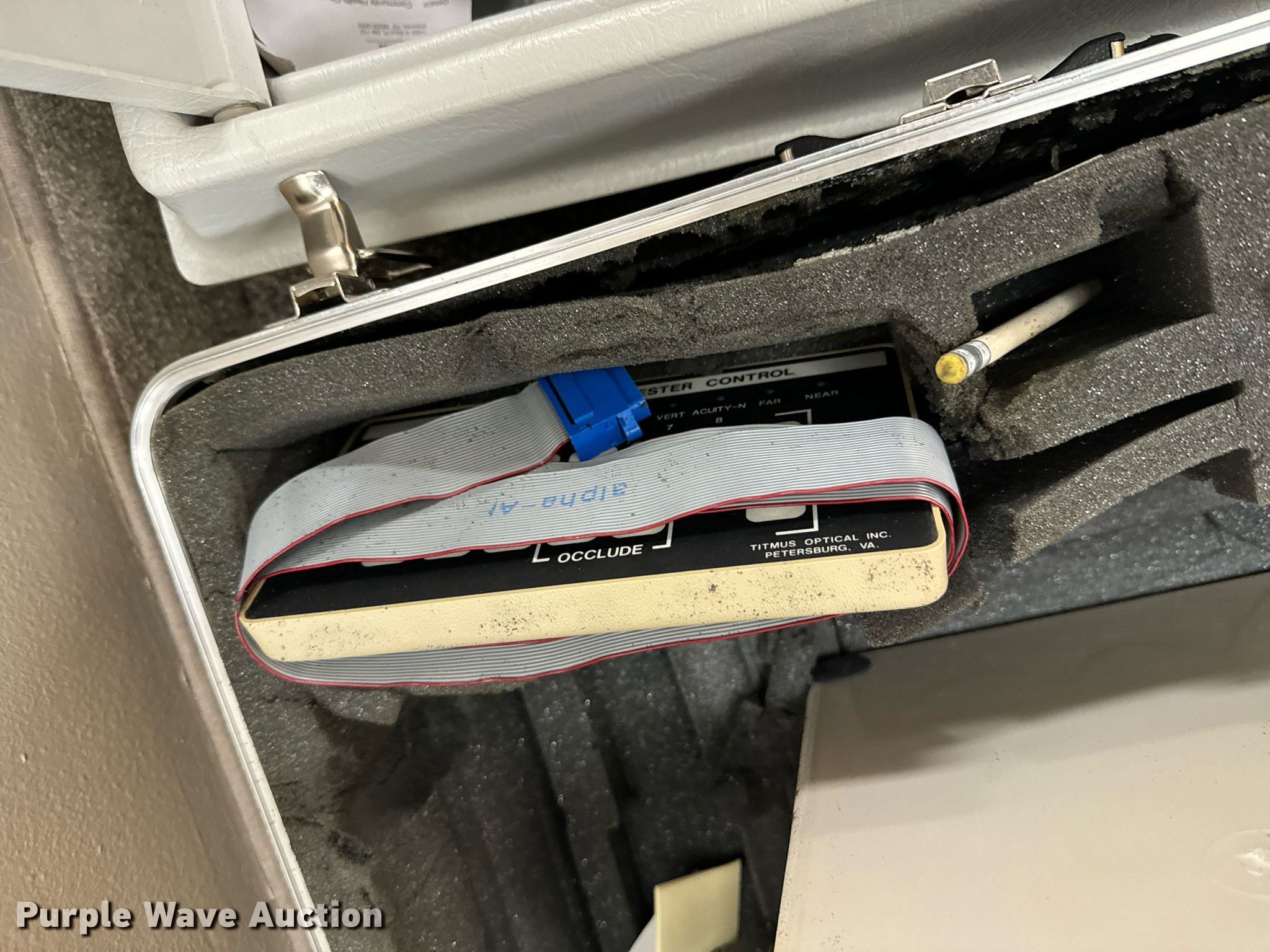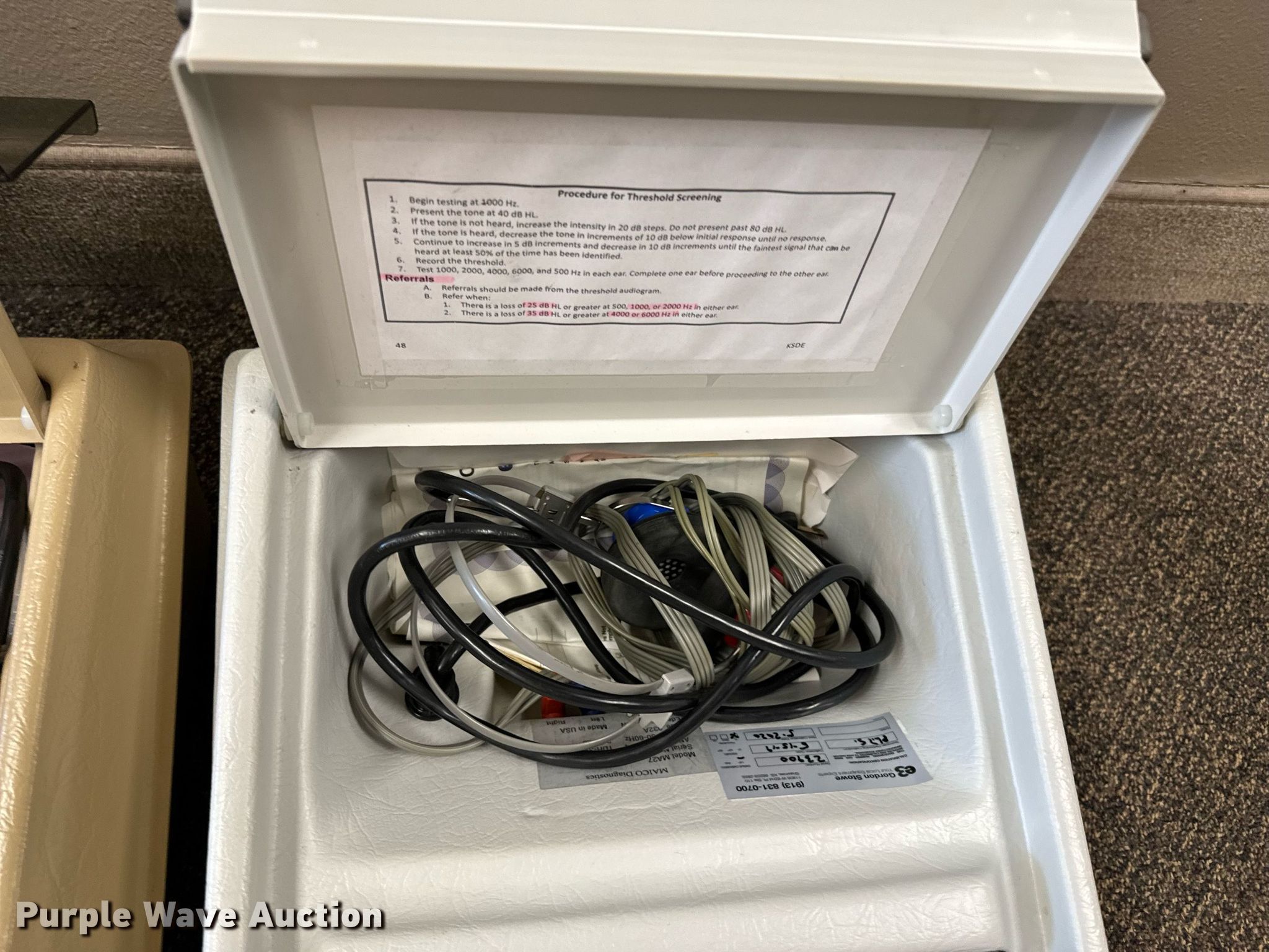 Purple Wave is selling a used Medical Equip. in Kansas. This item is a Medical screening equipment with the following: (2) Titmus vision testers, (2) Maico vision testers, (5) Maico audiometers, Crutches