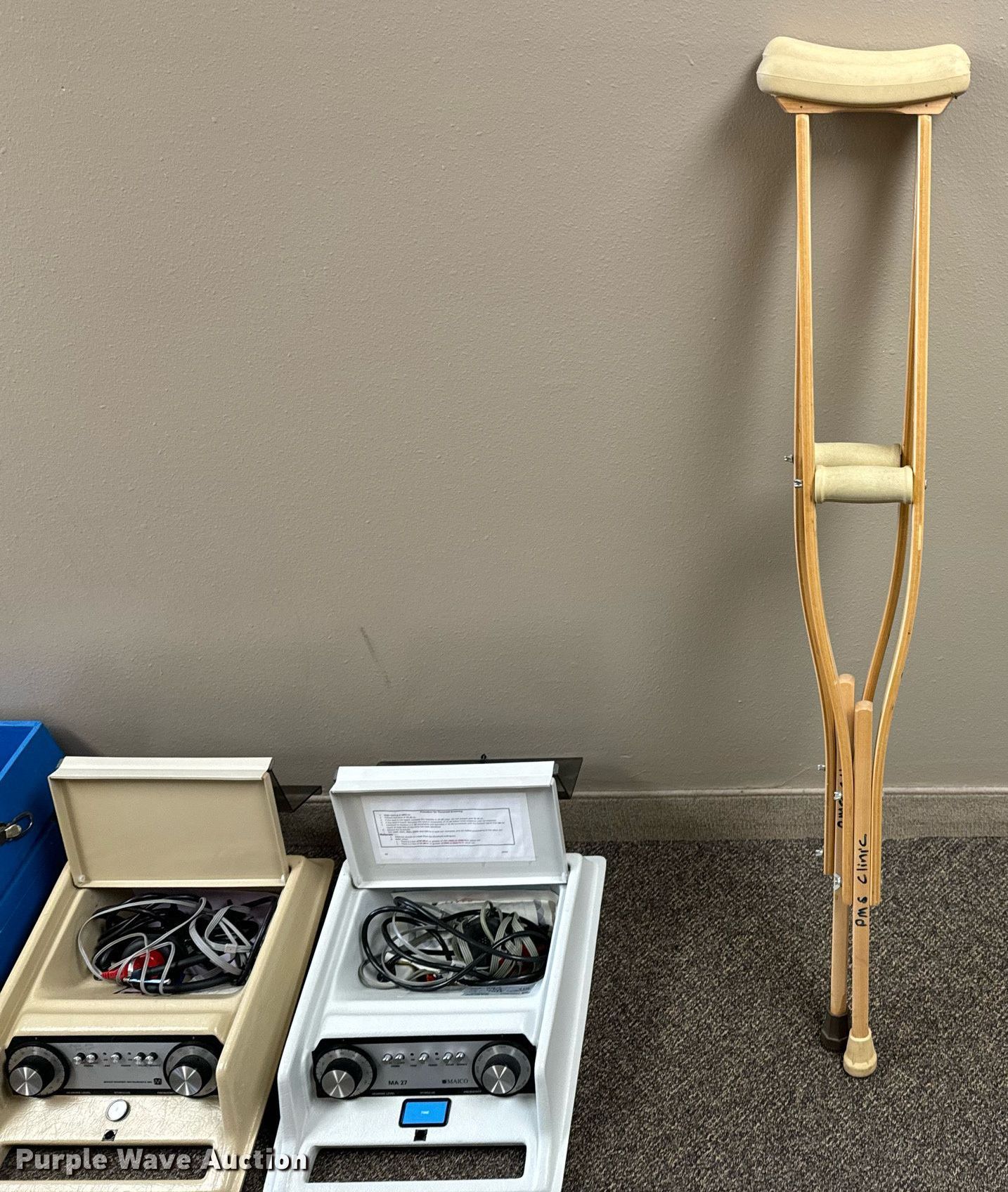 Medical screening equipment. (2) Titmus vision testers, (2) Maico vision testers, (5) Maico audiometers, Crutches. USD 250. 510 Deill Street. Pittsburg, KS 66762