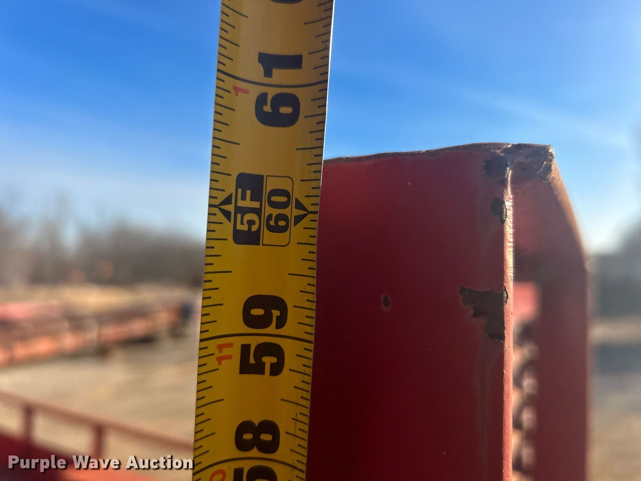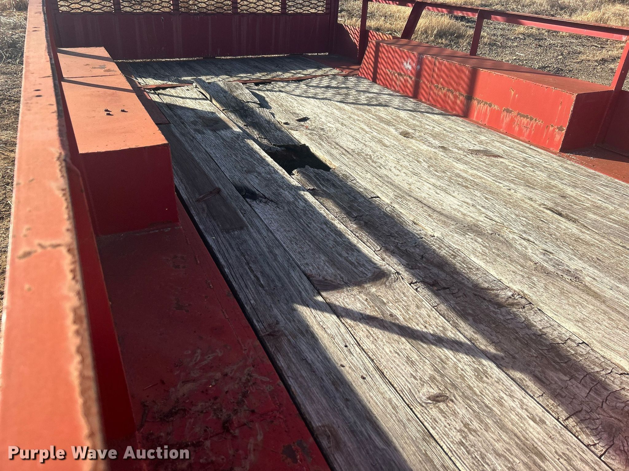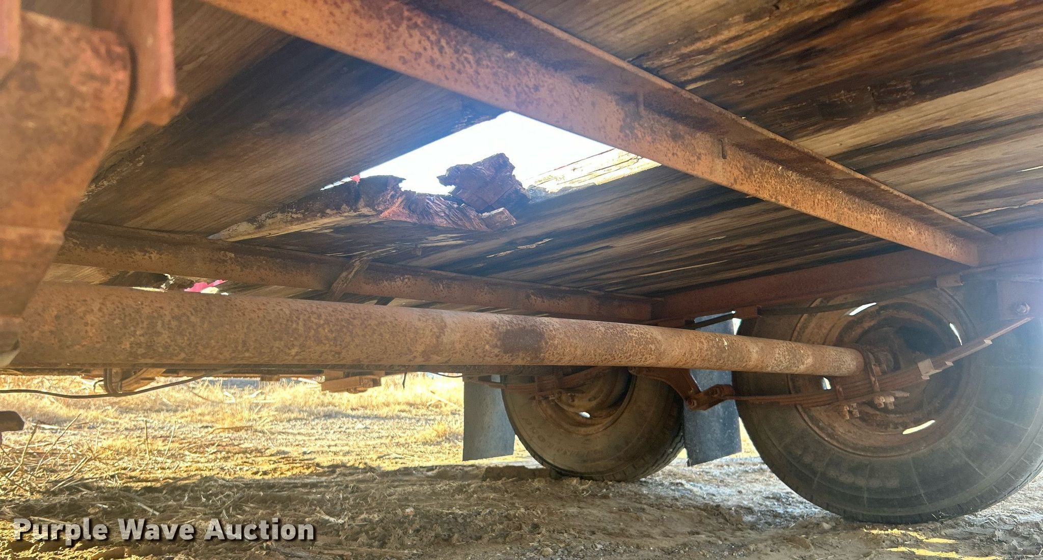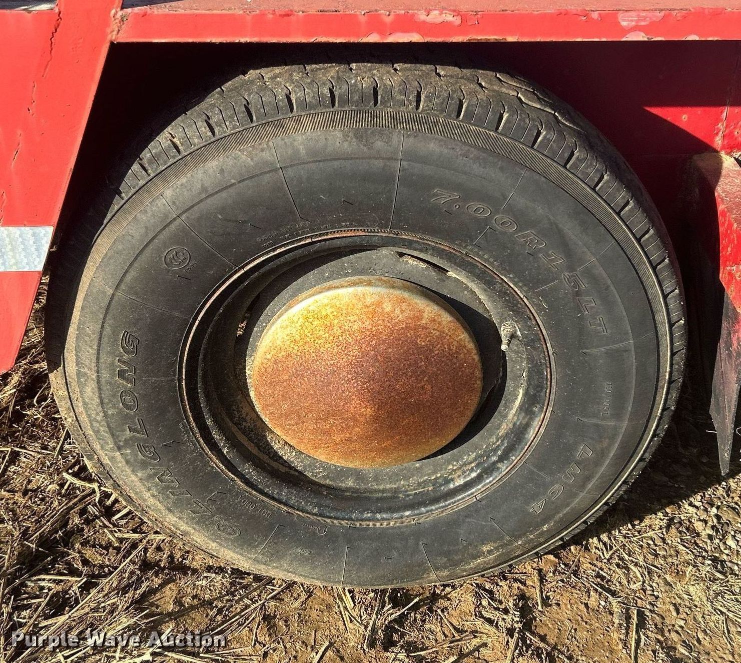 Shop built equipment trailer. Dimensions. Overall: 20' L x 90" W, Deck: 13' 4" L x 66" W, Side height: 19", Ramps: Manual Length: 5'. Features Deck type: Wood. Chassis Hitch: Gooseneck, Landing gear: Single, Suspension: Spring, Brakes: Electric, Axles: Tandem. Tires Size: 7.00-R15LT. Transfer of ownership documentation will be a bill of sale. 902 Smathers Avenue. Drumright, OK 74030