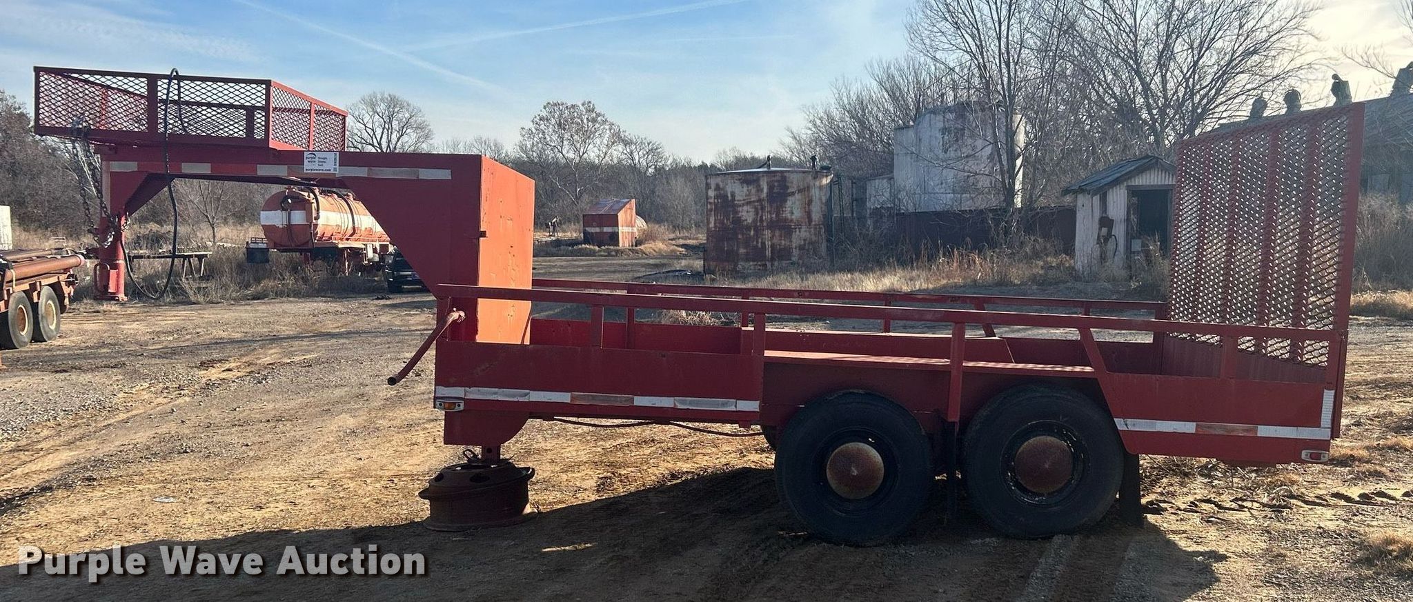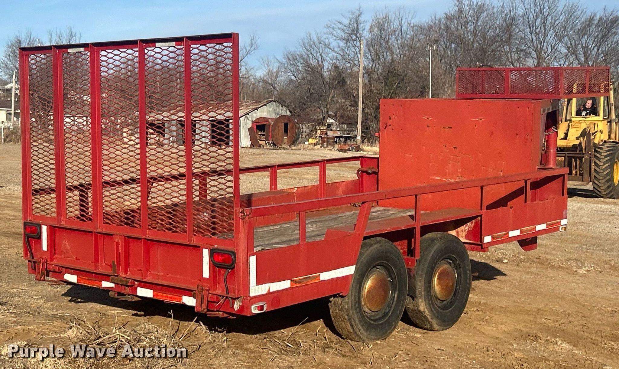 Purple Wave is selling a used Equip. Trailer in Oklahoma. This item is a Shop built equipment trailer with the following: Overall: 20' L x 90" W, Deck: 13' 4" L x 66" W, Side height: 19", Ramps: Manual, Length: 5'