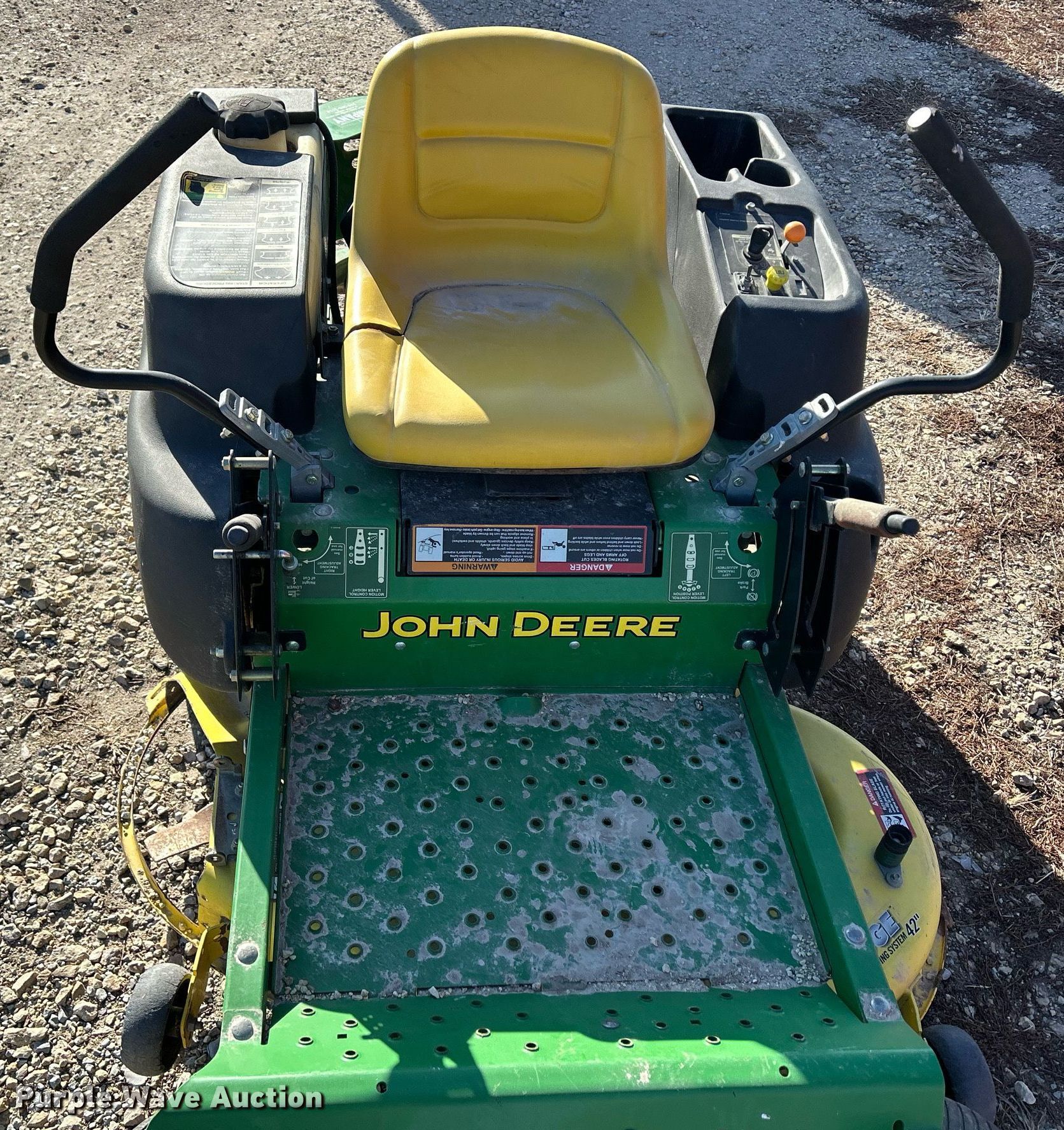 John Deere Z225 ZTR lawn mower. Hours: Unknown, Cutting width: 42", Serial: M0Z225A043491. Engine John Deere, Cylinders: 2, Fuel type: Gas, HP: 18.5. Transmission Hydrostatic. Chassis PTO. Tires Front: 13x5.00x6, Rear: 18x8.50-8. Notes Dead battery, Starter issues, needs replaced. 1533 150th St. Hazleton, IA 50641