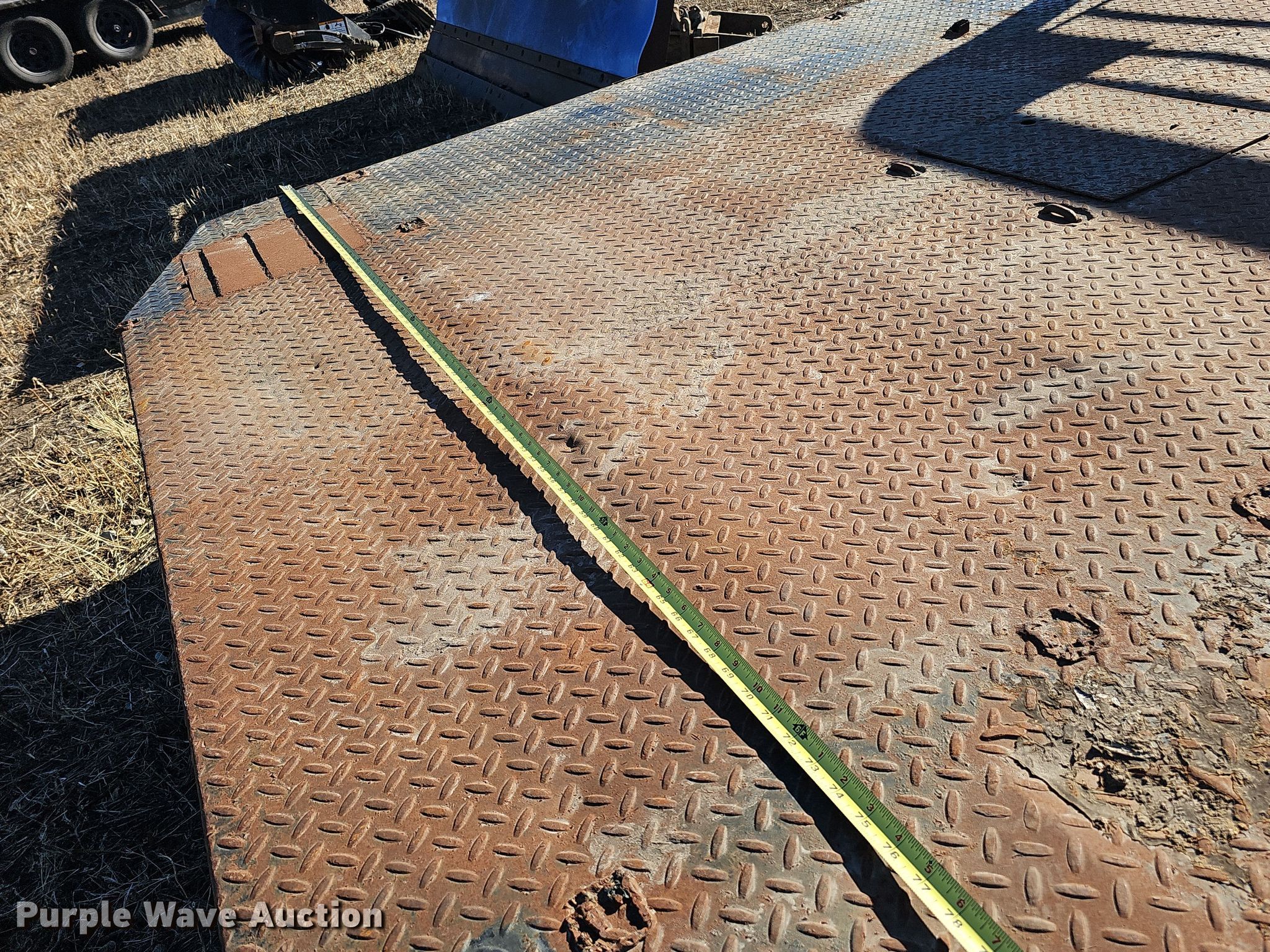 CM flatbed. 11' 6" L x 96" W, Hitch: Gooseneck. Thompson Asphalt Paving. 2820 St. Paul Road. Grand Island, NE 68803