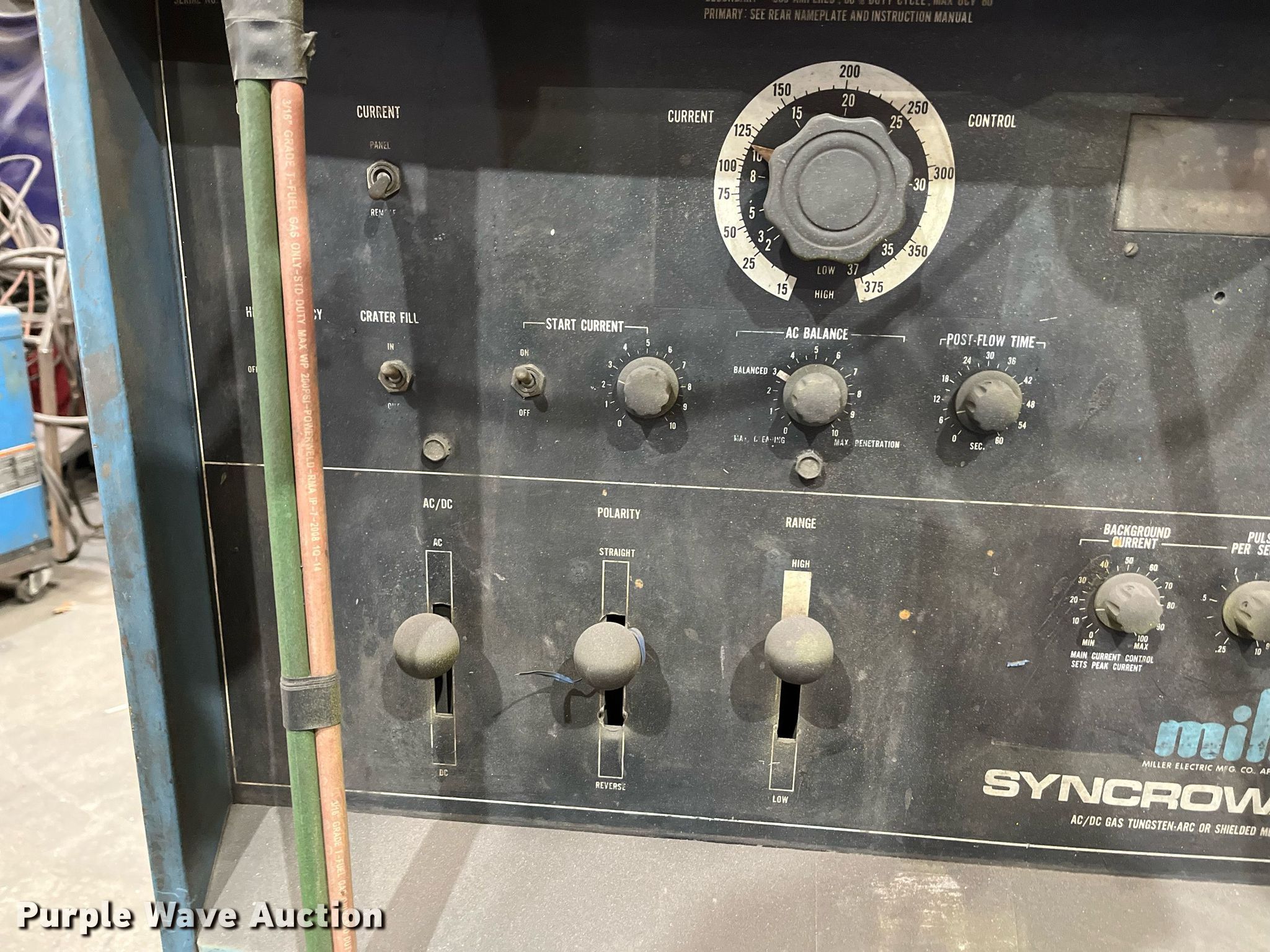 Purple Wave is selling a used Welder (Manual) in Texas. This item is a Miller Syncrowave 300 welder with the following: Welder, Capabilities: CC, DC, AC, TIG, Stick, Leads, Generator, Phase: Single, Miller Coolmate 3, Serial: LA090795
