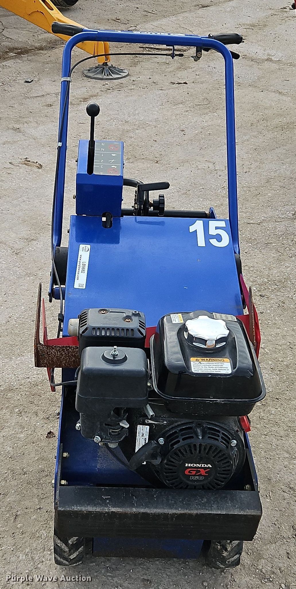 Blue Bird SC550 sod cutter. Serial: 141900756. Engine Honda GX160, Cylinders: 1, Fuel type: Gas. Transmission 4F - 1R. Features Cutting width: 18". Gerken Rent-All. 31600 Old KC Rd. Paola, KS 66071