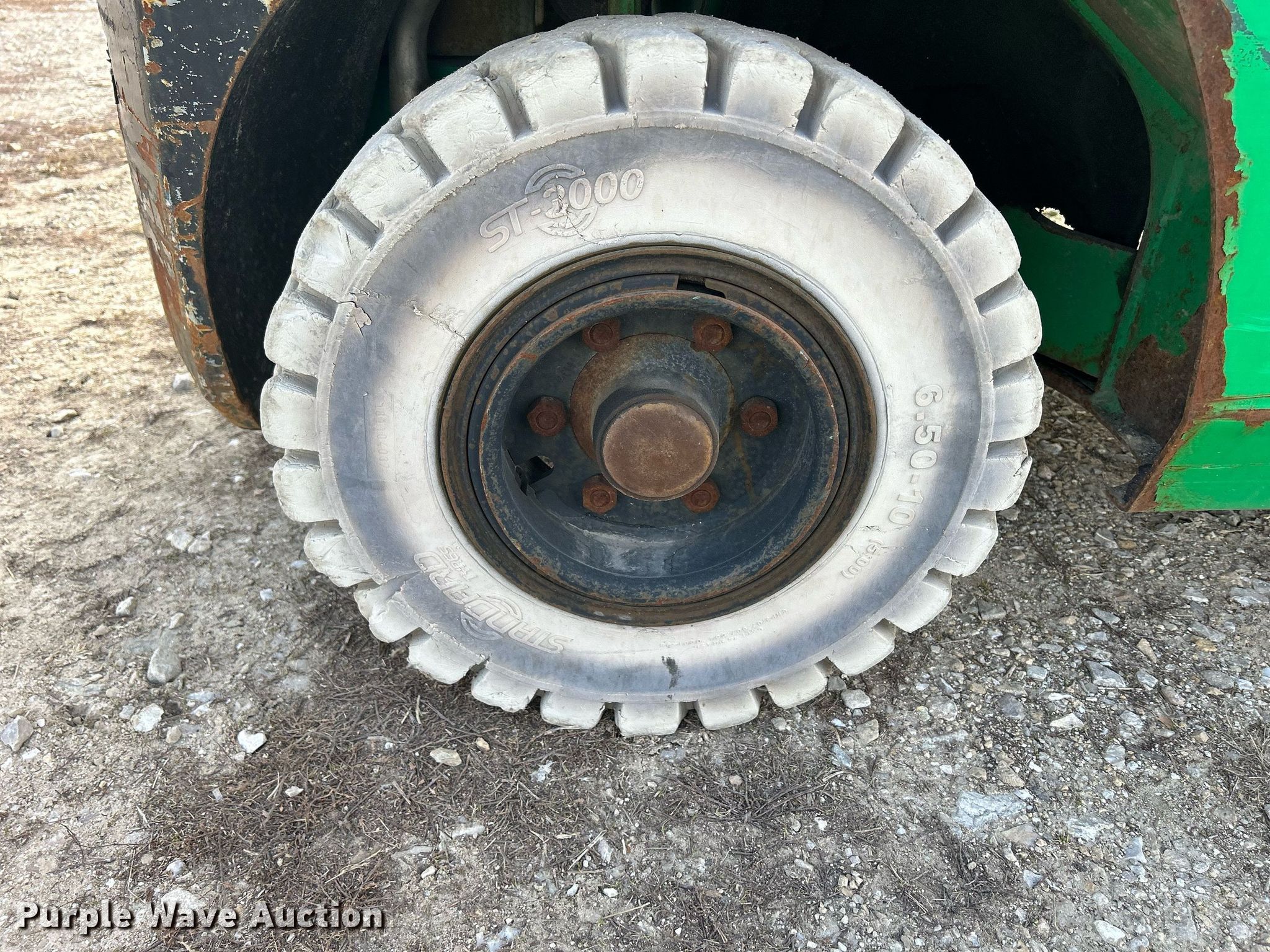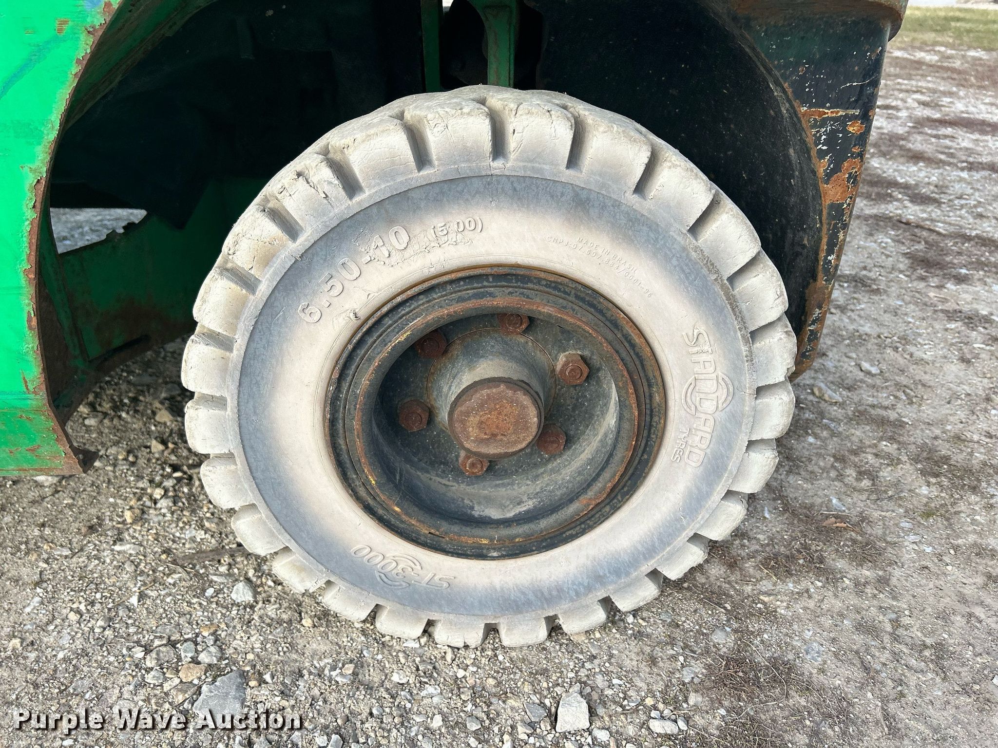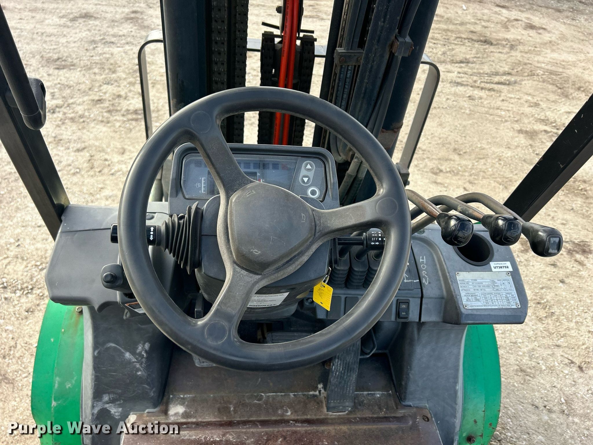 2014 Mitsubishi FG30N forklift. Hours: 3,050 on meter, Miles or hours may vary, unit still in use, Serial: AF13G00069. Engine Mitsubishi , Cylinders: 4, Fuel type: Dual fuel LP bottle: Not included. Transmission Powershift, 1F - 1R. Features Maximum lift capacity: 4,200 lbs, Maximum lift height: 240", Mast stages: 4, Side shift, Mast tilt, Fork length: 42". Tires Front: 28x9-15, Rear: 6.50-10, Solid. Quality Equipment. 1415 West Washington Street. Mount Pleasant, IA 52641