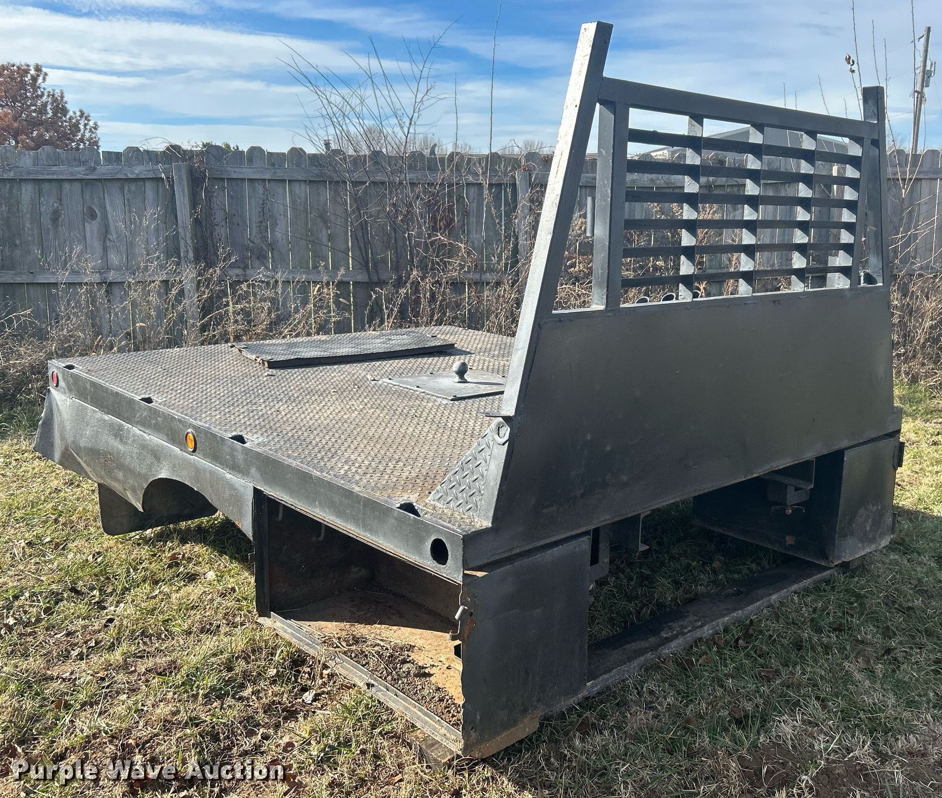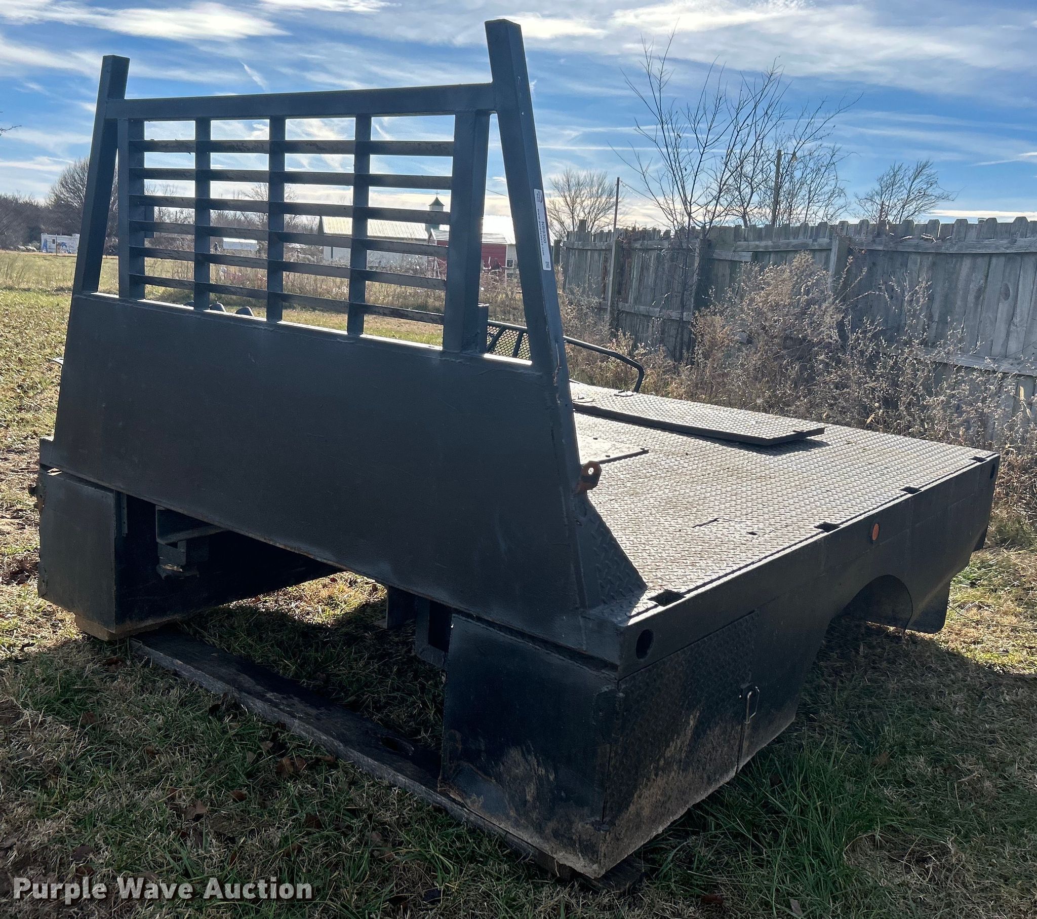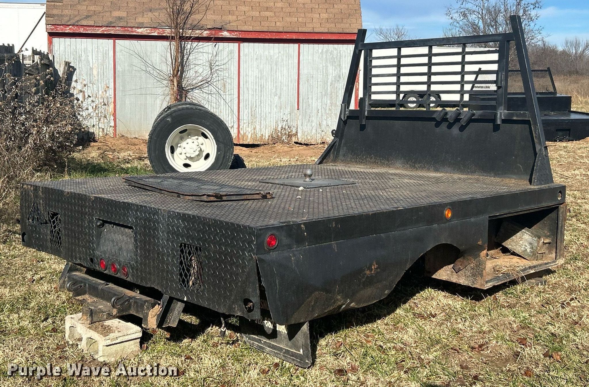 Purple Wave is selling a used Truck Part and Attach. in Oklahoma. This item is a Flatbed with the following: 102" L x 82" W, Bed type: Steel, Gooseneck hitch