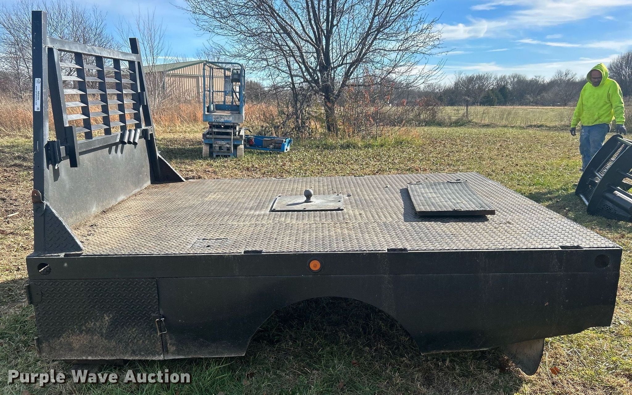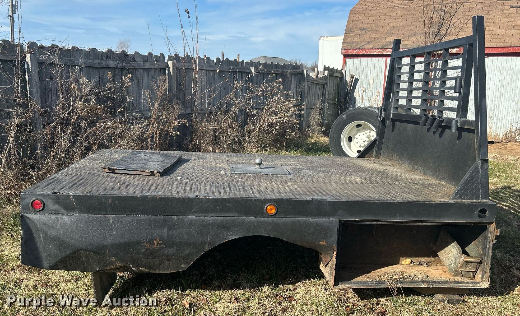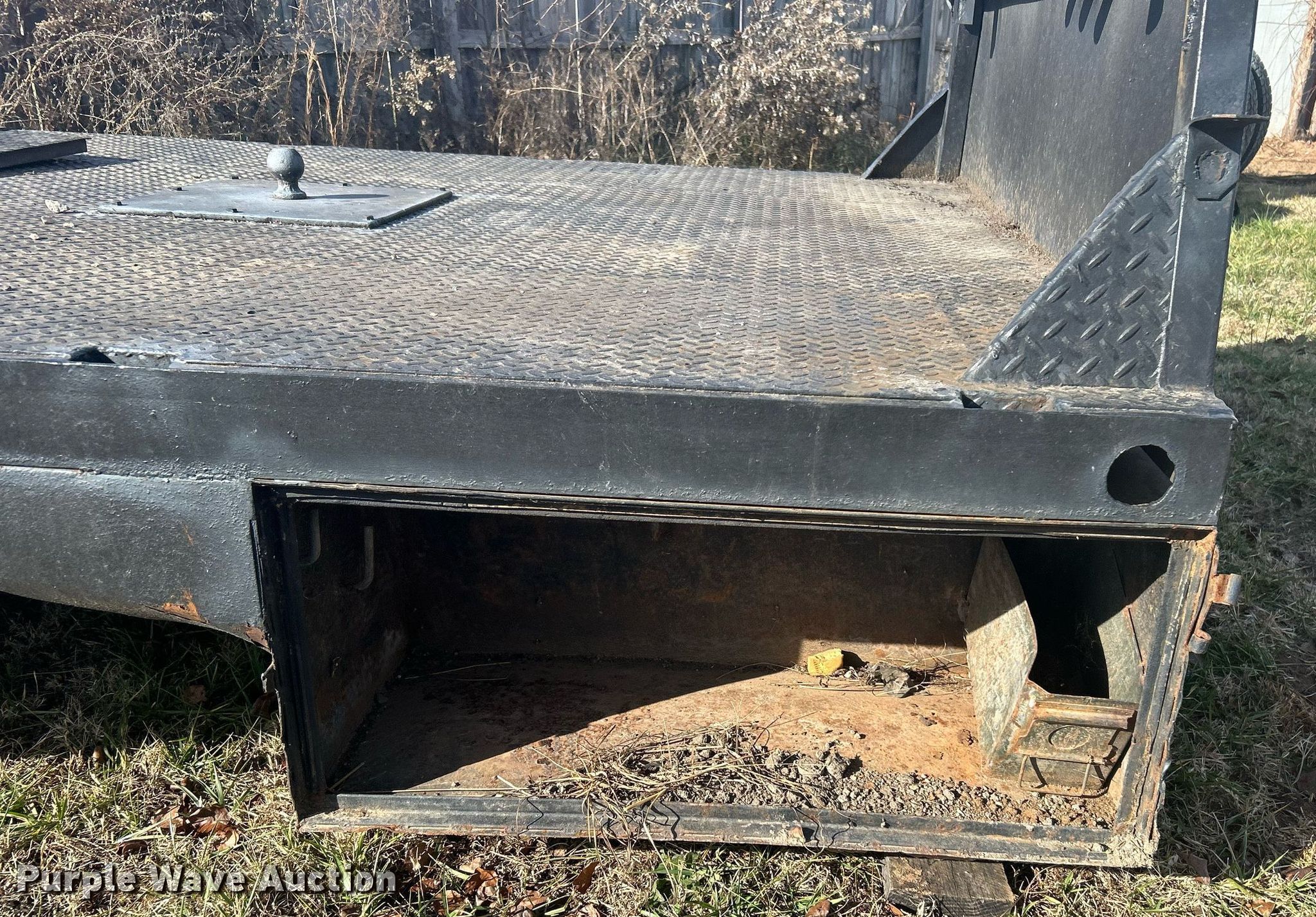 Purple Wave is selling a used Truck Part and Attach. in Oklahoma. This item is a Flatbed with the following: 102" L x 82" W, Bed type: Steel, Gooseneck hitch