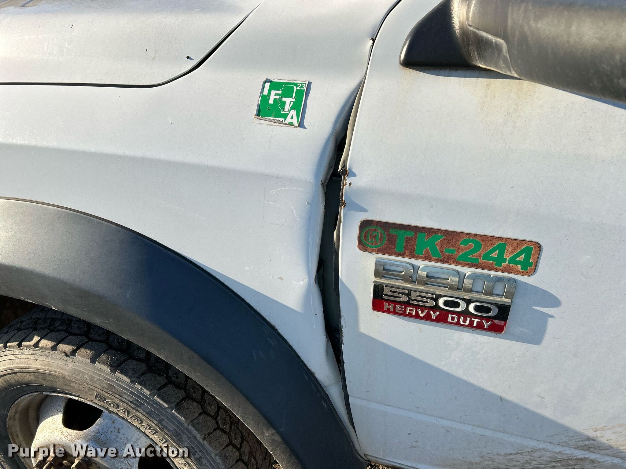 2011 Dodge Ram 5500HD flatbed truck. Miles: 268,724 on odometer, Hours: 11,303 on meter, VIN: 3D6WU7EL9BG541678. Engine Displacement: 6.7L, Cylinders: 8, Fuel type: Diesel. Transmission Automatic, Four wheel drive. Interior AC, Heat, Heated mirrors, Power windows, Power locks, Cruise control. Features Flatbed CM, 11' 4" L x 93" W, Hitch: Gooseneck. Tires Size: 225/70R19.5. Notes Company stickers will be removed prior to auction, Dash warning indicator: Check engine, ABS, Airbag, Windshield chipped or cracked, Non-operational fuel gauge. Illinois title. Title distribution may be delayed up to 14 days from verification of funds. Keeley Construction. Cahokia, IL 62206