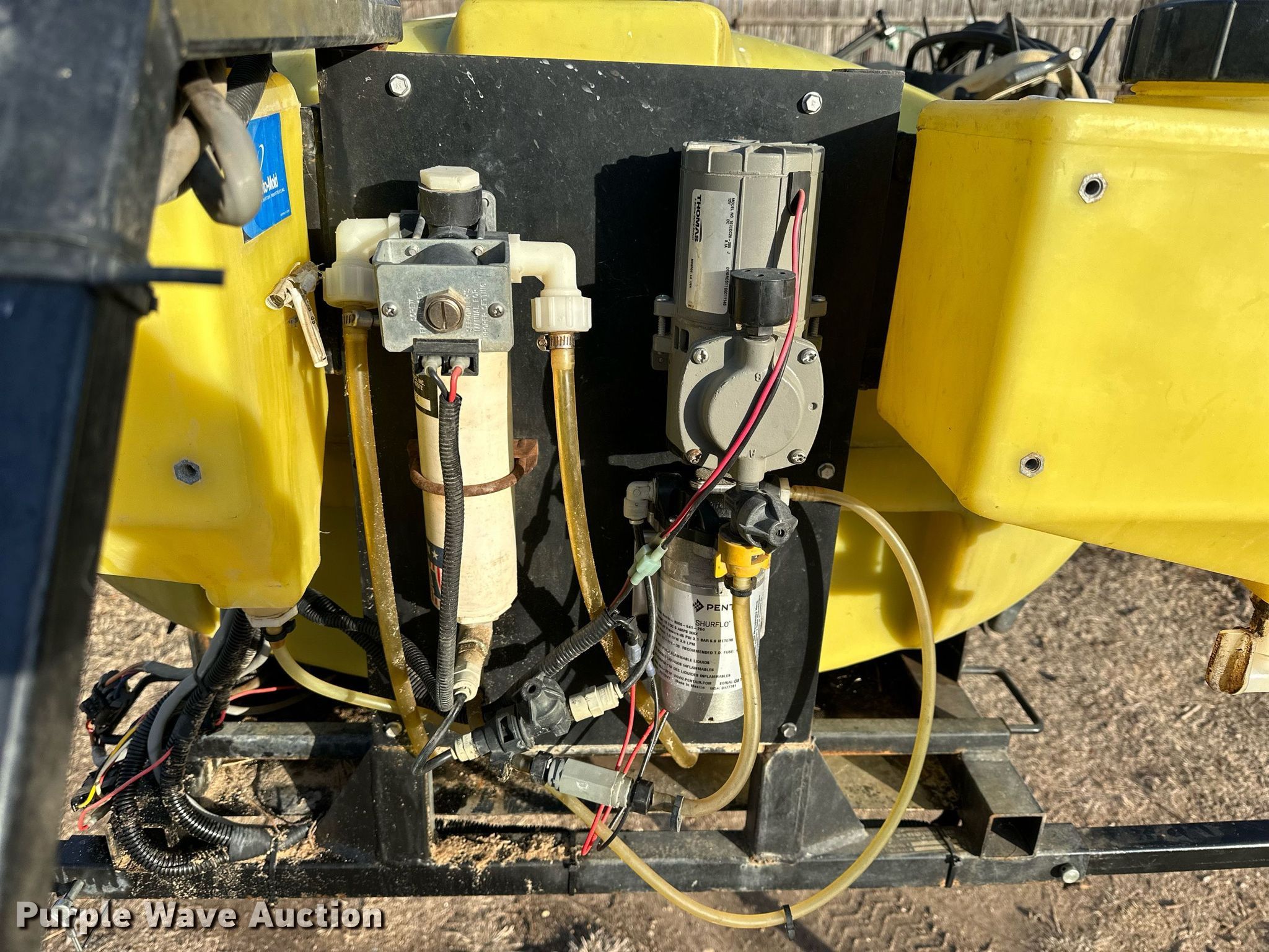 Purple Wave is selling a used Turf Sprayer in Kansas. This item is a B&B Technologies turf sprayer with the following: Boom width: 20', B&B tank, Capacity: 200 gallons, Foam marker, MT-3405F II MT-34FII-04 flow rater controller, Serial: 31431, Thomas 107CDC20-285 pump, Volts: 12, Pentair Hypro 8000-541-250 pump, GPM: 1, Hose, Wand, (2) wheels included