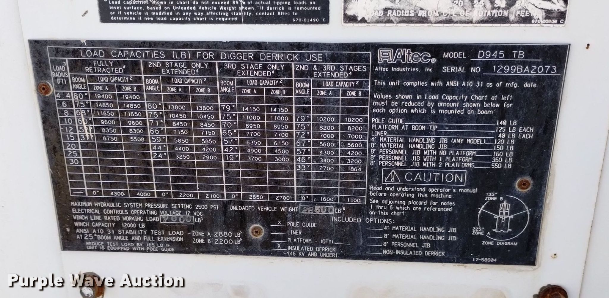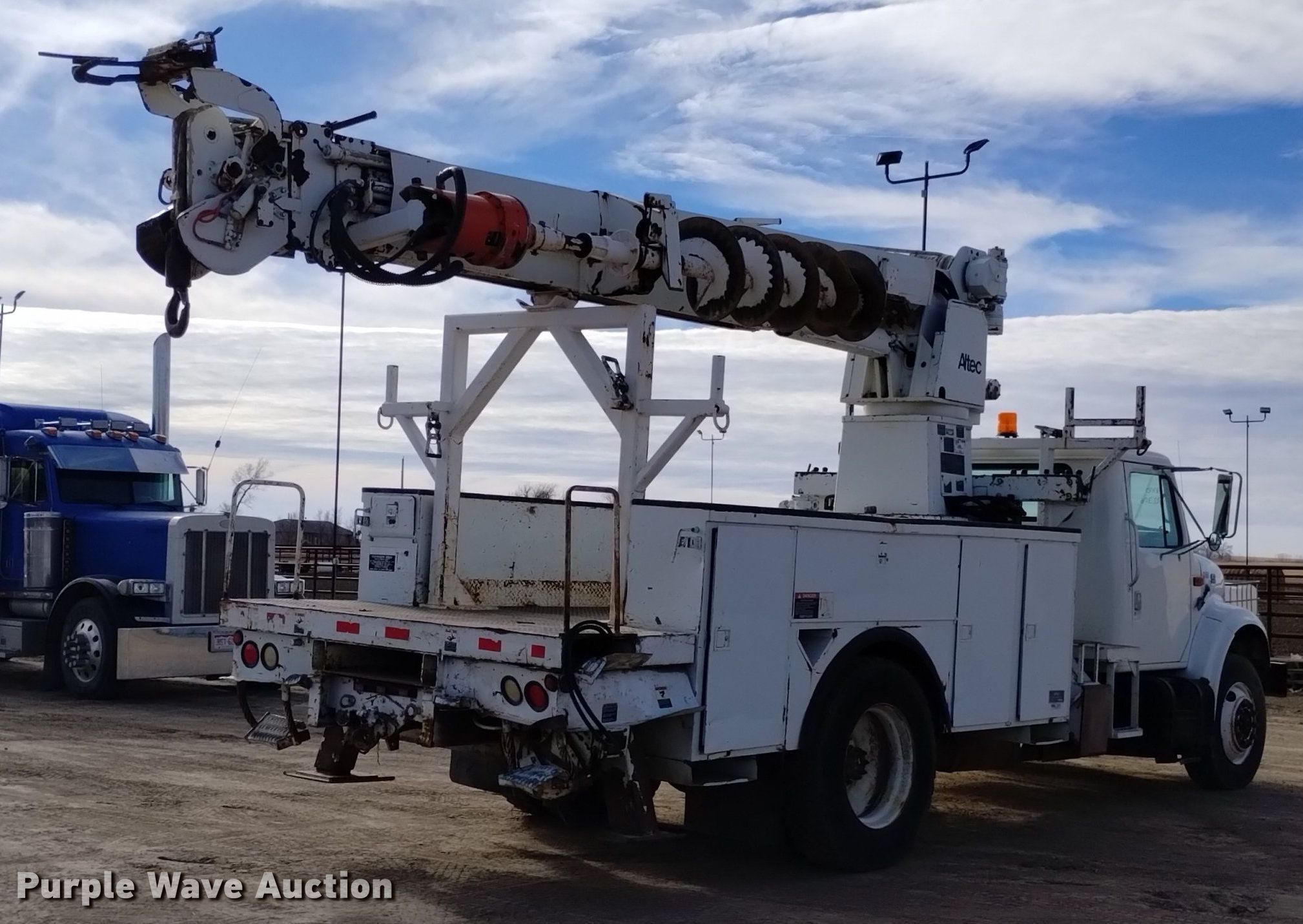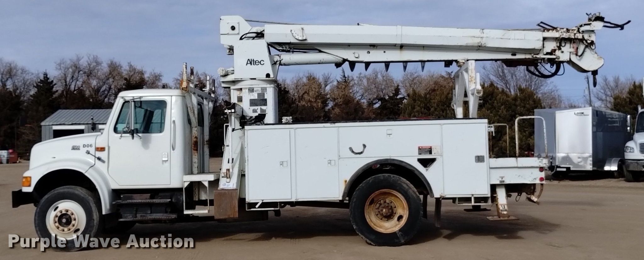 2000 International 4700 digger derrick truck. Miles: 20,532 on odometer, Hours: 3,121 on meter, VIN: 1HTSCAAR3YH277616, Unit #: D06. Engine International DT466, Displacement: 7.6L, Cylinders: 6, Fuel type: Diesel. Transmission Spicer Double Duty D, Manual, Speed: 5, plus 2. Chassis Axles: Single, Suspension: Spring, Brakes: Air, PTO, GVWR: 35,000 lbs, Wheelbase: 188". Interior AC, Heat, Cruise control, Brake controller. Features Bed Altec, Serial: 17-58904, 15' L x 93" W, Boom Altec D945 TB, Serial: 1299BA2073, Boom length: 30', Maximum lift capacity: 19,400 lbs, Boom type: Insulated, Telescopic, Boom controls Platform/ basket, Material handler, Pole guide, Auger Diameter: 22".. Tires Front: 275/80R22.5, Rear: 11R24.5. Notes Clutch issues, Auger issue, flighting bent. Colorado title. Title distribution may be delayed up to 14 days from verification of funds. Stampede Power Line Services. 35074 Cr SS. Wiley, CO 81092