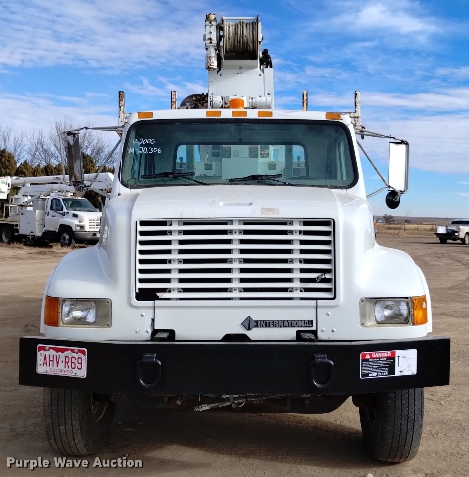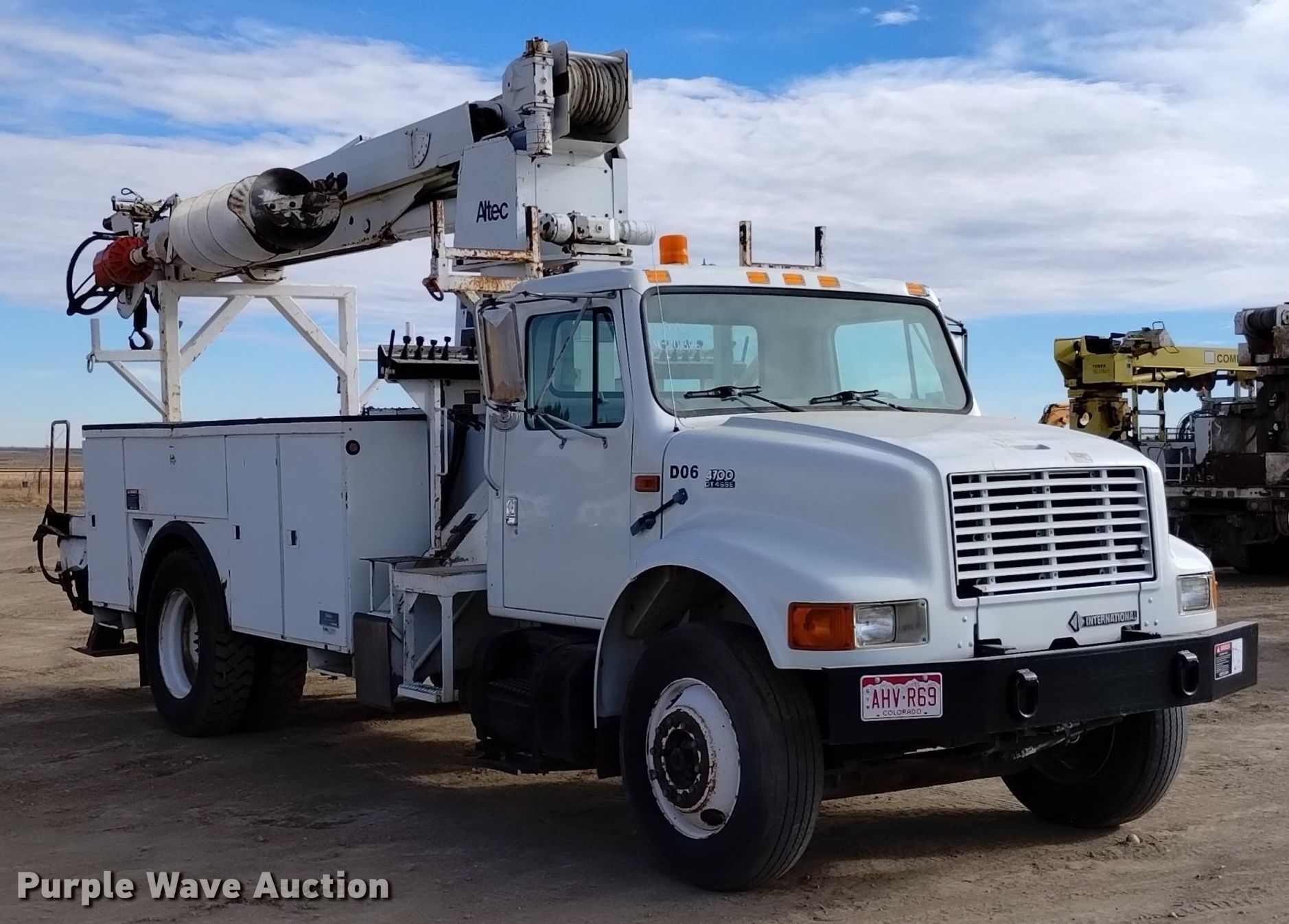 Purple Wave is selling a used Digger Derrick Truck in Colorado. This item is a 2000 International 4700 digger derrick truck with the following: Miles: 20,532 on odometer, Hours: 3,121 on meter, VIN: 1HTSCAAR3YH277616, Unit #: D06