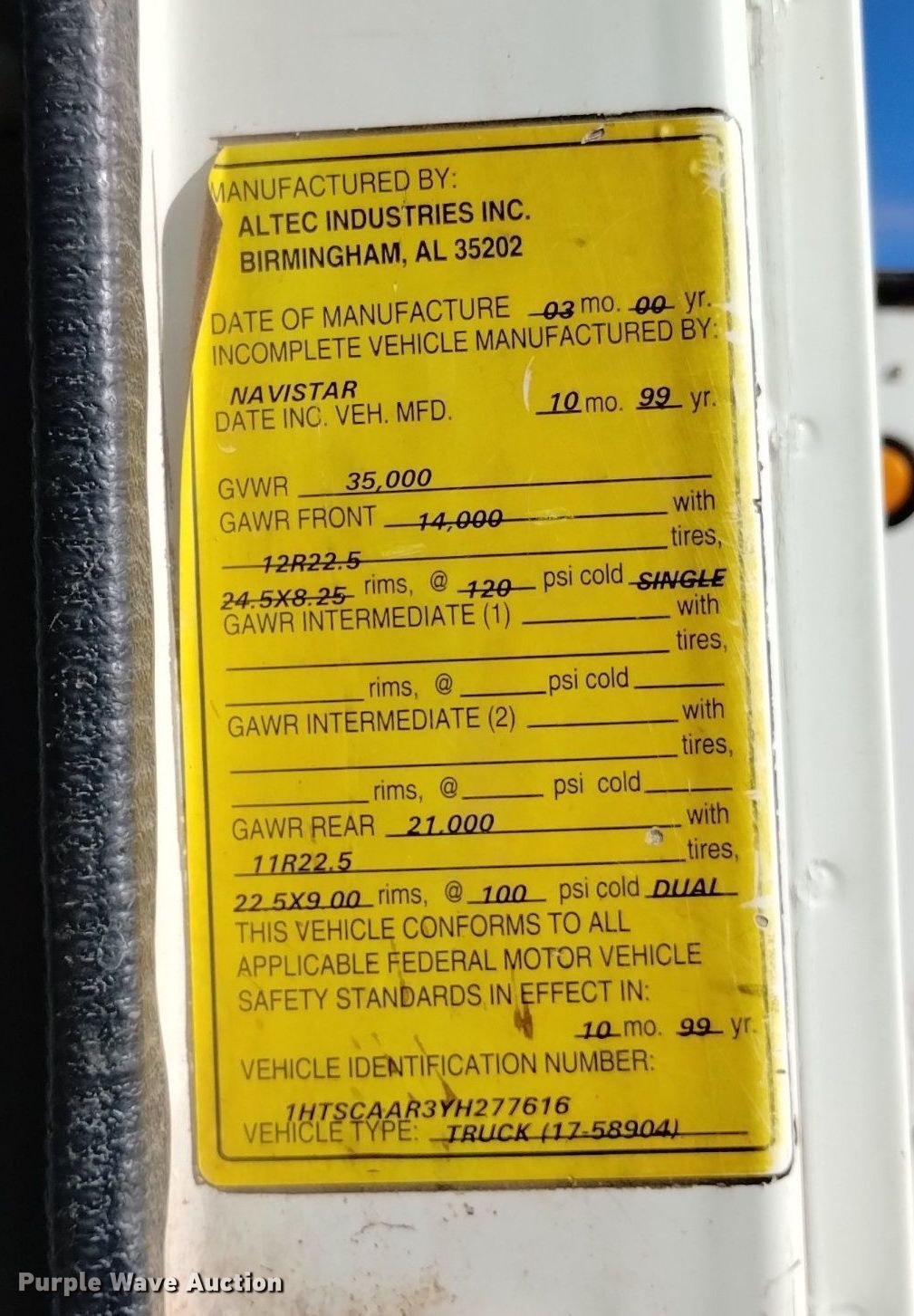- VIN: 1HTSCAAR3YH277616