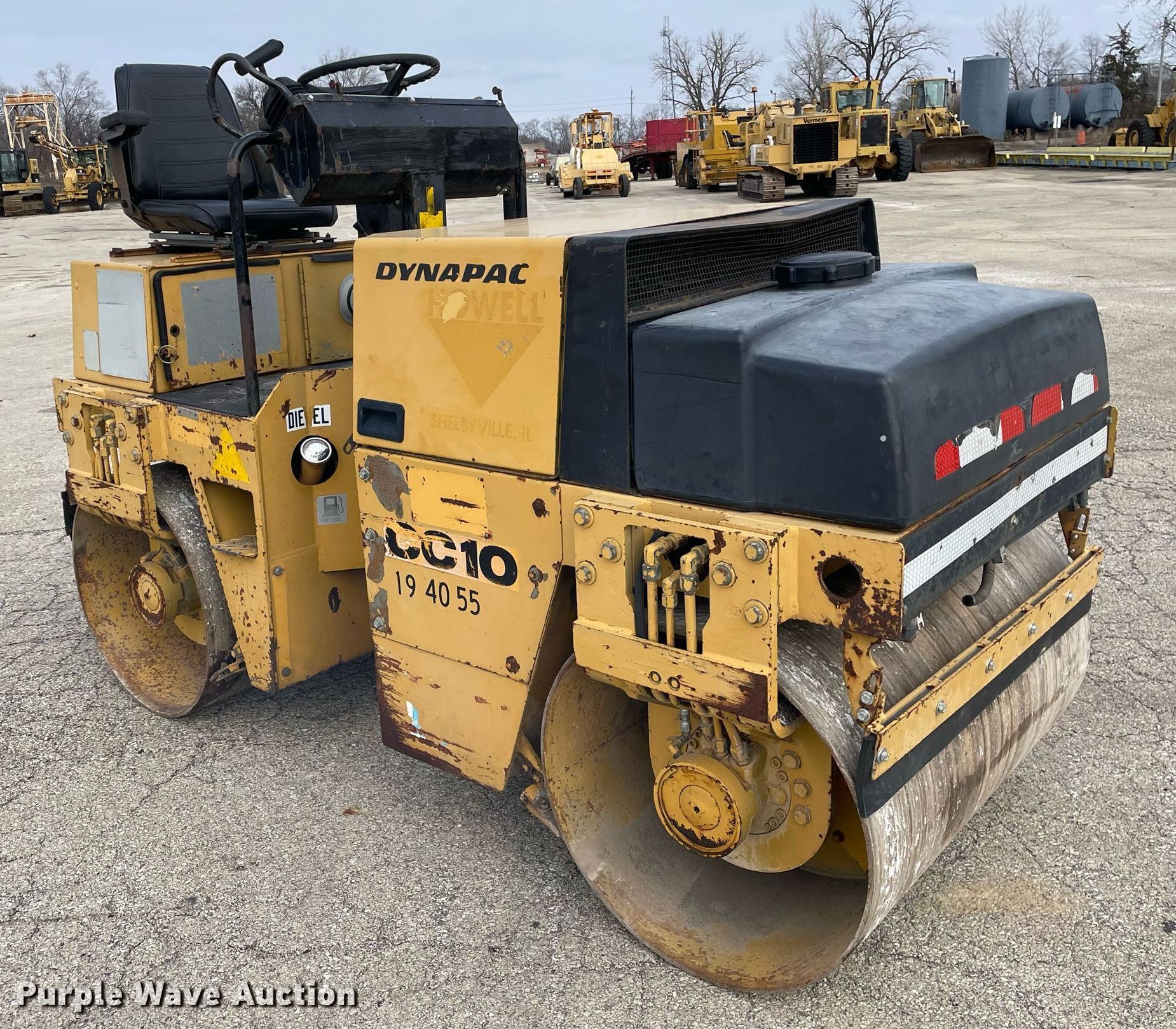 Purple Wave is selling a used Double Drum Roller Compactor in Illinois. This item is a Dynapac CC10 double drum vibratory roller with the following: Hours: 1,837 on meter, Serial: 5861696, Unit #: 19-40-55