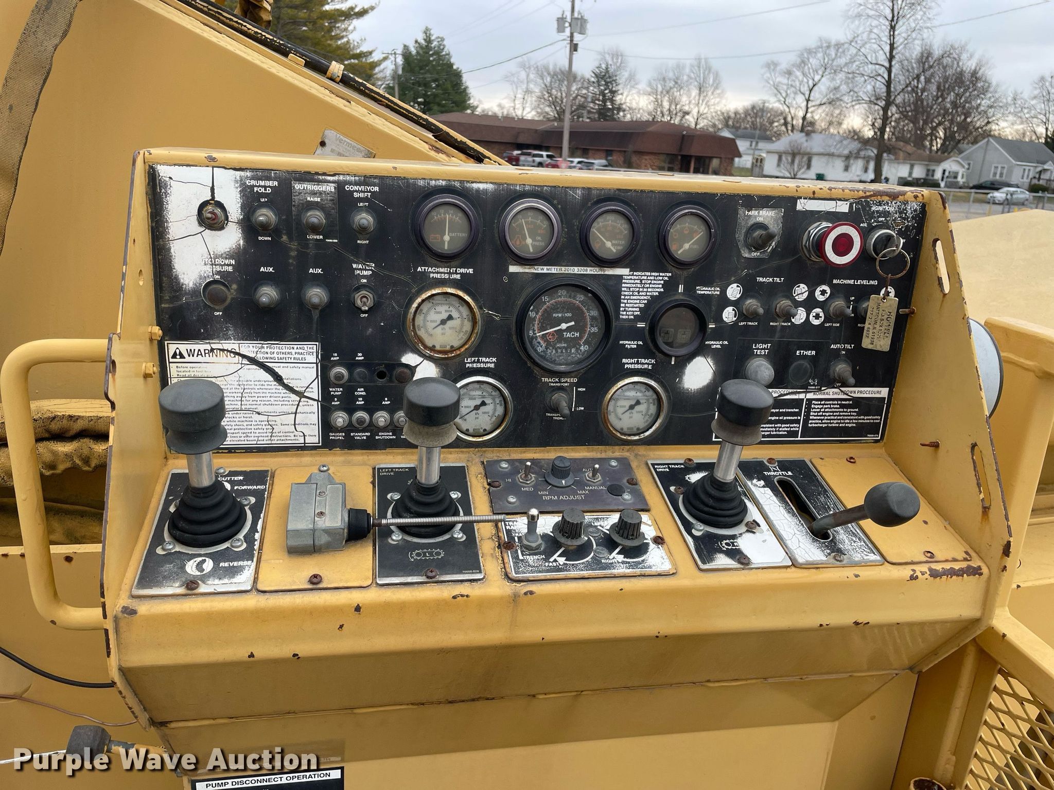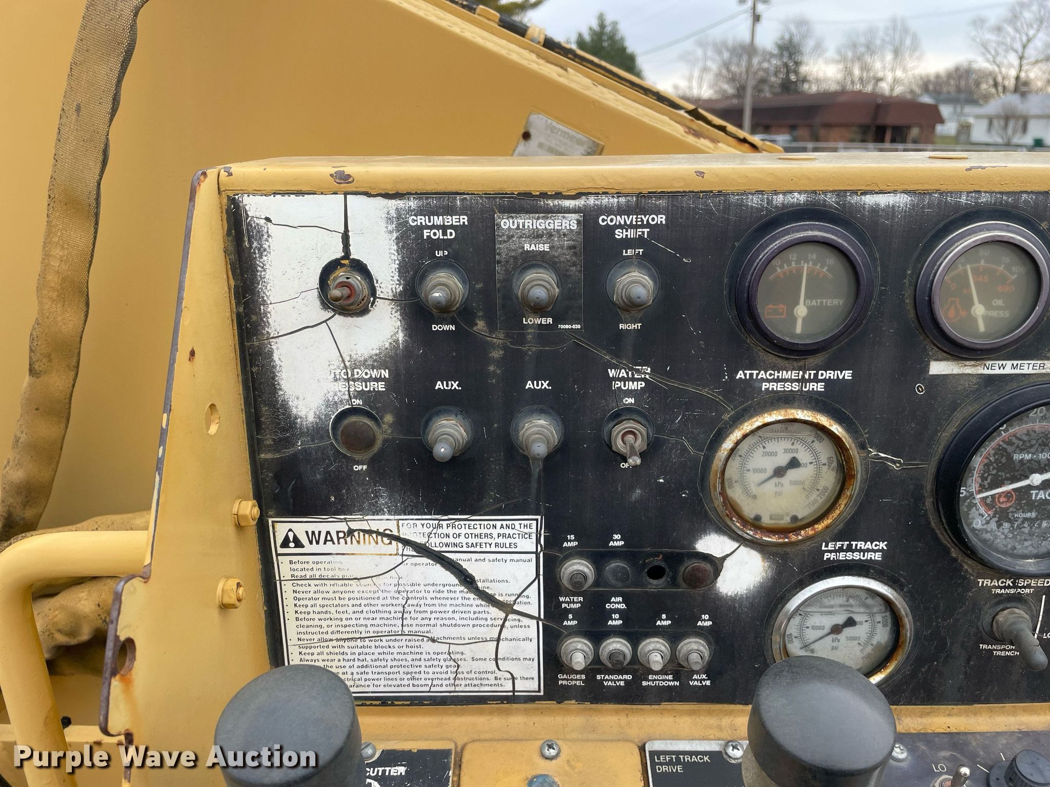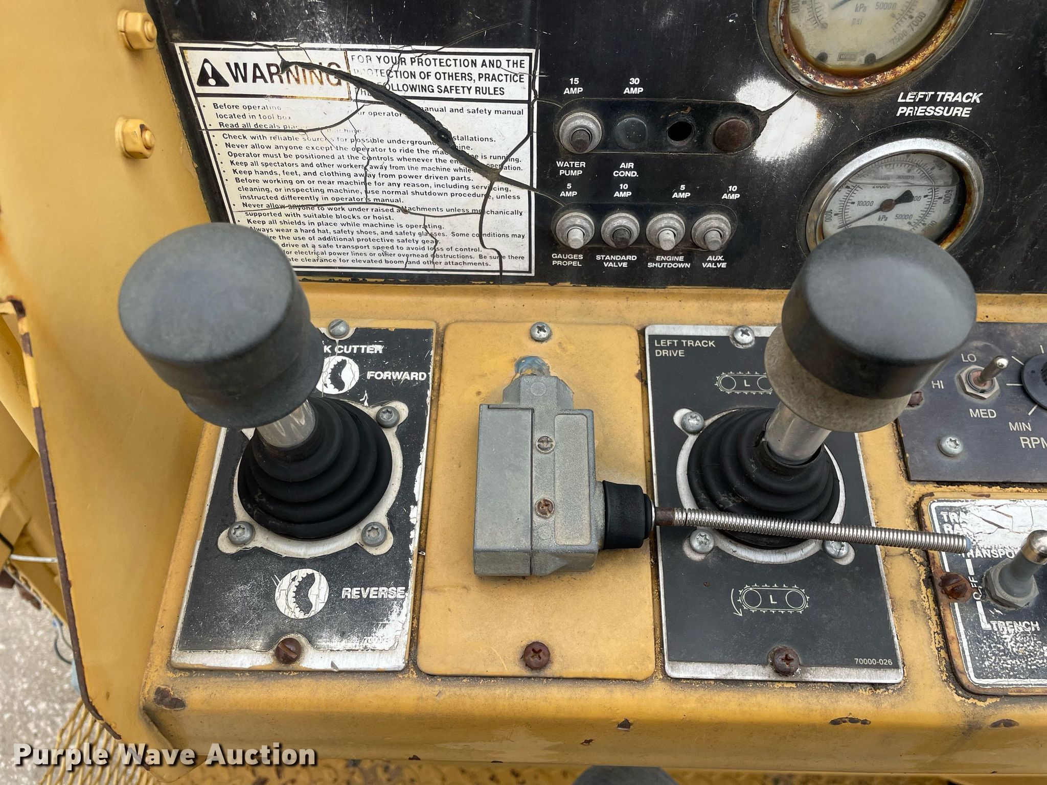 1994 Vermeer T655 rock saw. Hours: 742 on meter, Serial: 1VRE260B2R1000223, Unit #: 24-2-21. Engine Caterpillar, Cylinders: 6, Fuel type: Diesel. Transmission Hydrostatic. Features Model: T655RC, Serial: 1VRL250DD0P1000110, Rock wheel Wheel diameter: 96", Cutting width: 5", Teeth: Rock. Tracks Width: 21", Steel. Howell Paving Inc. 1020 N 13th. Matoon, IL 61938