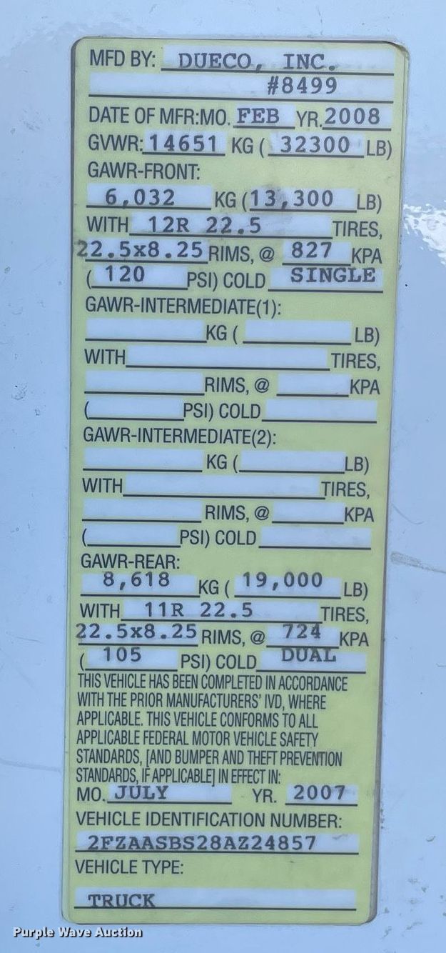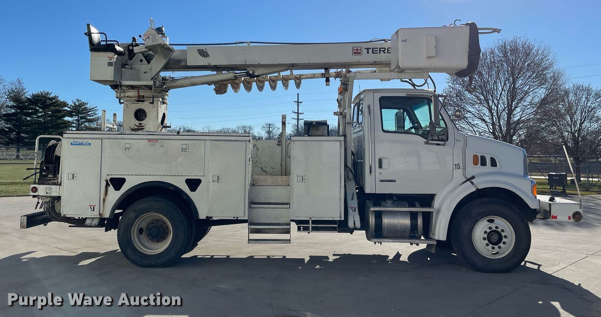 Purple Wave is selling a used Digger Derrick Truck in Illinois. This item is a 2008 Sterling L7500 digger derrick truck with the following: Miles: 214,483 on odometer, Hours: 14,095 on meter, VIN: 2FZAASBS28AZ24857, Unit #: 15