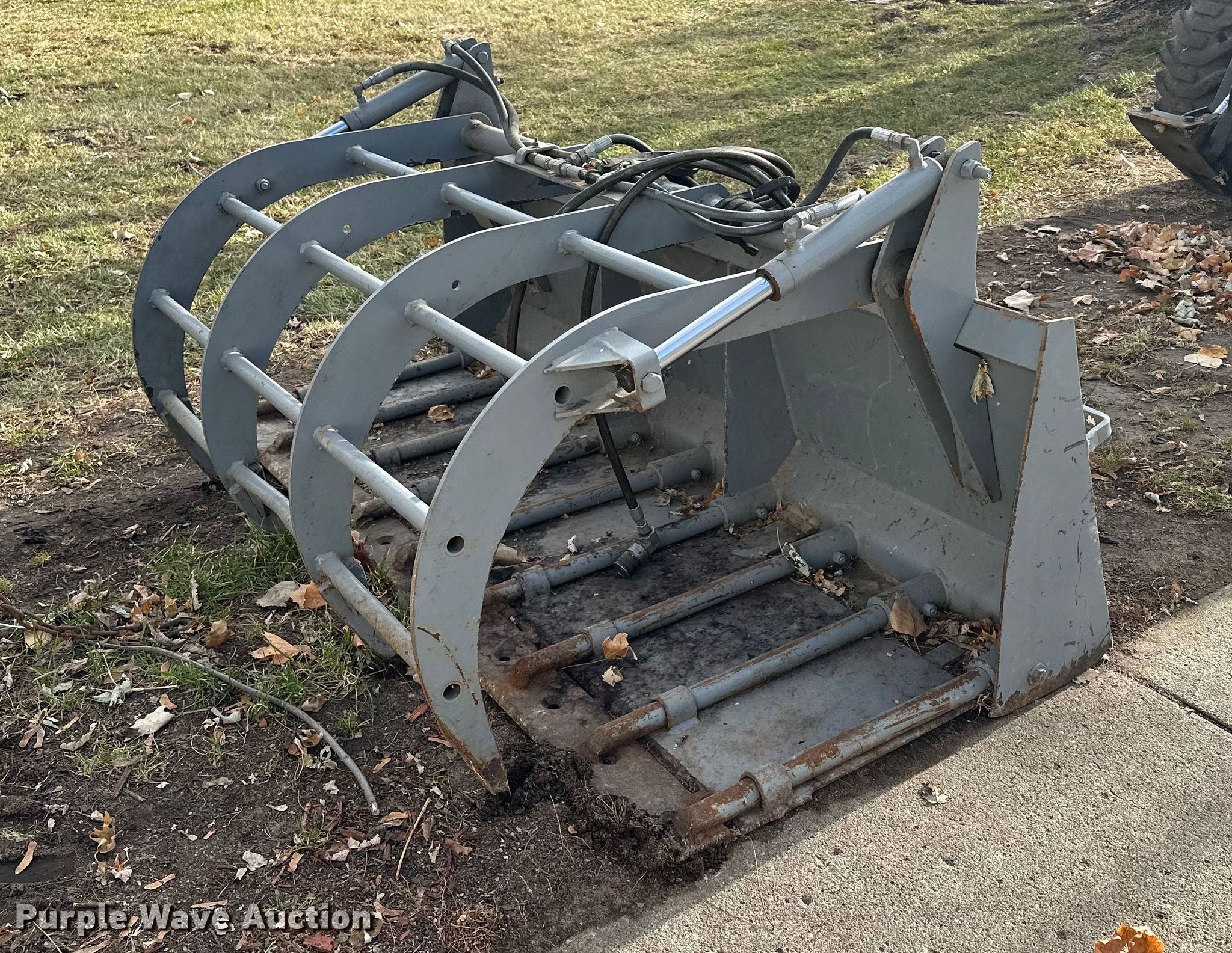Purple Wave is selling a used Skid Steer Attach. in Minnesota. This item is a Skid steer grapple bucket with the following: Width: 72", Cutting edge: Weld-on