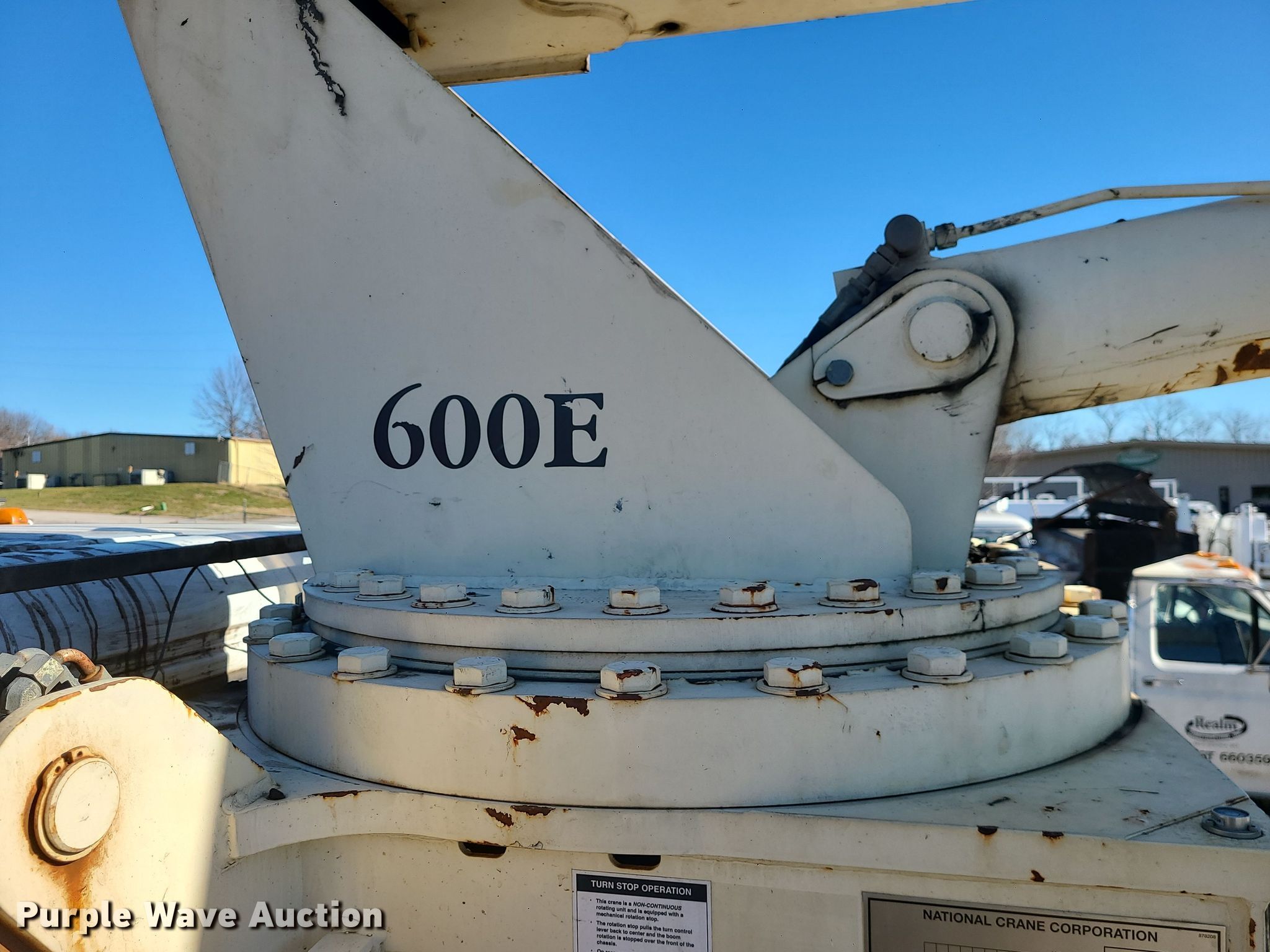 2007 Freightliner Business Class M2 crane truck. Miles: Unknown, VIN: 1FVHCYDJ37DX28351. Engine Displacement: 7.2L, Cylinders: 6, Fuel type: Diesel. Transmission Manual, Speed: 10. Chassis Axles: Tandem, Suspension: Spring over walking beam, Differential lock: Full , Brakes: Air, PTO, GVWR: 58,000 lbs. Interior AC, heat. Features Flatbed 20' L x 96" W, Crane National 600e, Boom, Maximum boom length: 90' Sections: 4, Maximum lift capacity: 40,000 lbs, Boom controls Ground, Crane ball & hook. Tires Front: 385/65R22.5, Rear: 11R24.5. Notes Engine is disassembled , Unit must be towed or hauled, Non-operational unit. Missouri title. Mileage has not been verified. Odometer discrepancy will be marked on the title. Title distribution may be delayed up to 14 days from verification of funds. Realm Construction, Inc.. 604 SE Industrial Dr. Blue Springs, MO 64014