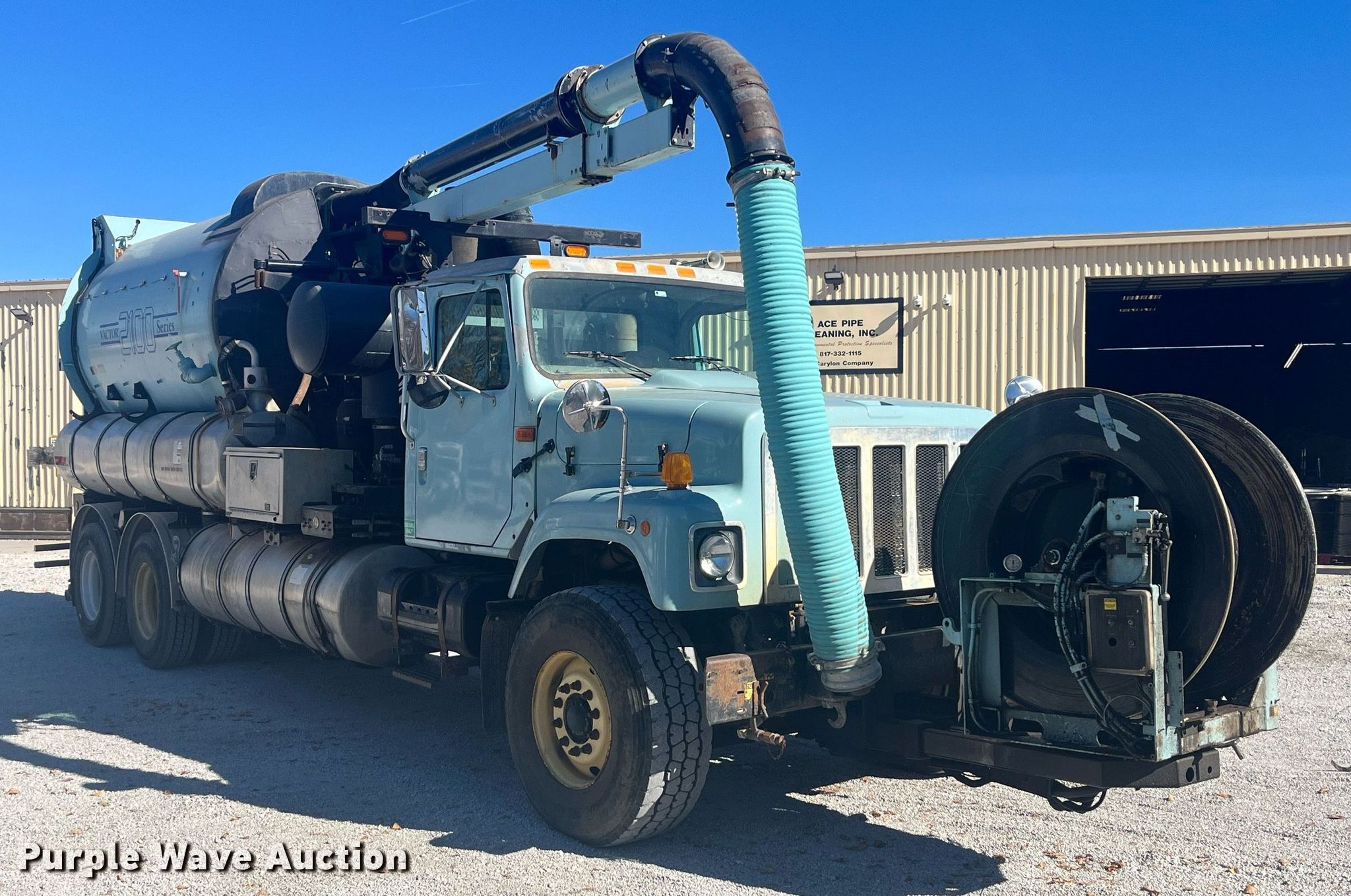 Purple Wave is selling a used Vacuum Truck in Texas. This item is a 2002 International 2574 vacuum truck with the following: Miles: 42,223 on odometer, Hours: 5,719 on meter, VIN: 1HTGGAHT02H511827