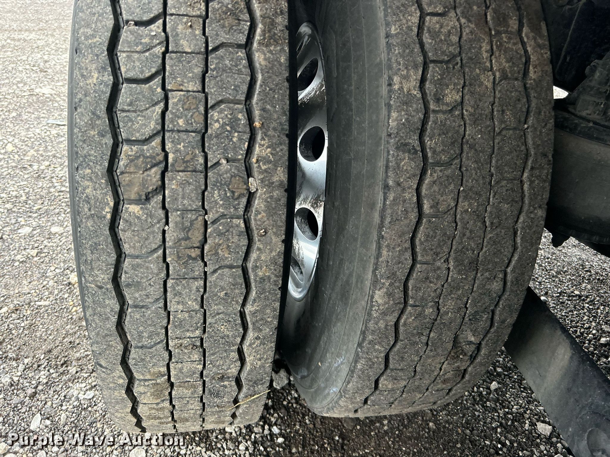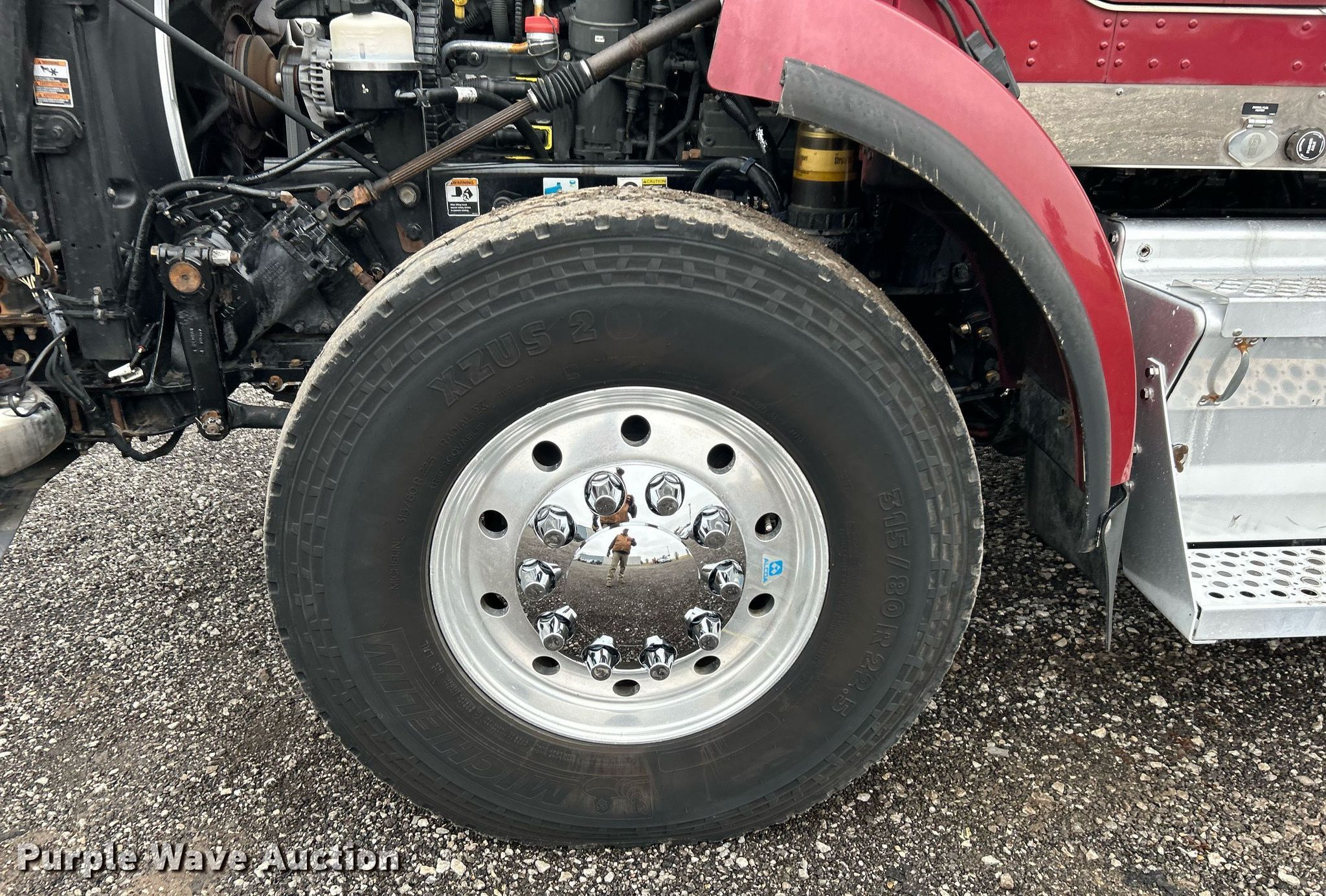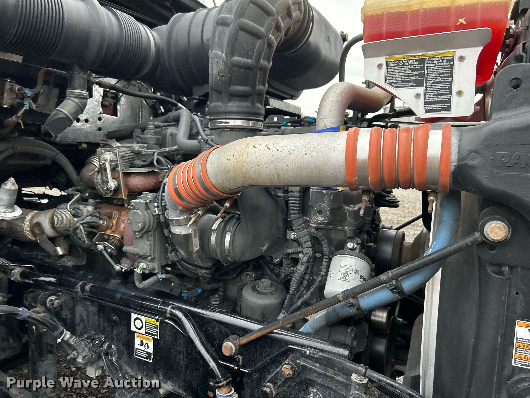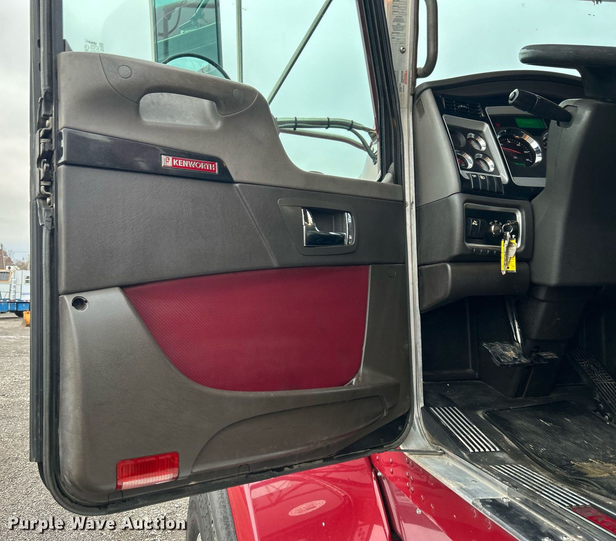 2015 Kenworth T800 tank truck. Miles: 534,081 on odometer, Hours: 13,132 on meter, VIN: 1NKDXP0X9FJ450959. Engine Paccar MX13, Serial: Y059231, Displacement: 12.9L, Cylinders: 6, Fuel type: Diesel, HP: 455, kW: 340. Transmission Eaton Fuller, Manual, Speed: 10. Chassis Axles: Tandem, Pusher axle, Differential lock: Inter-axle, Suspension: Air Dump valves, Brakes: Air, PTO, GVWR: 68,350 lbs. Interior AC, Heat, Power windows, Power locks, Cruise control. Features Bed / tank 19' 8" L x 84" W, Compartments: 1. Tires Front: 315/80R22.5, Rear: 11R22.5, Lift axle: 295/75R22.5. Notes Tank damage. Oklahoma title. Title distribution may be delayed up to 14 days from verification of funds. 15107 North 137th East Avenue. Collinsville, OK 74021