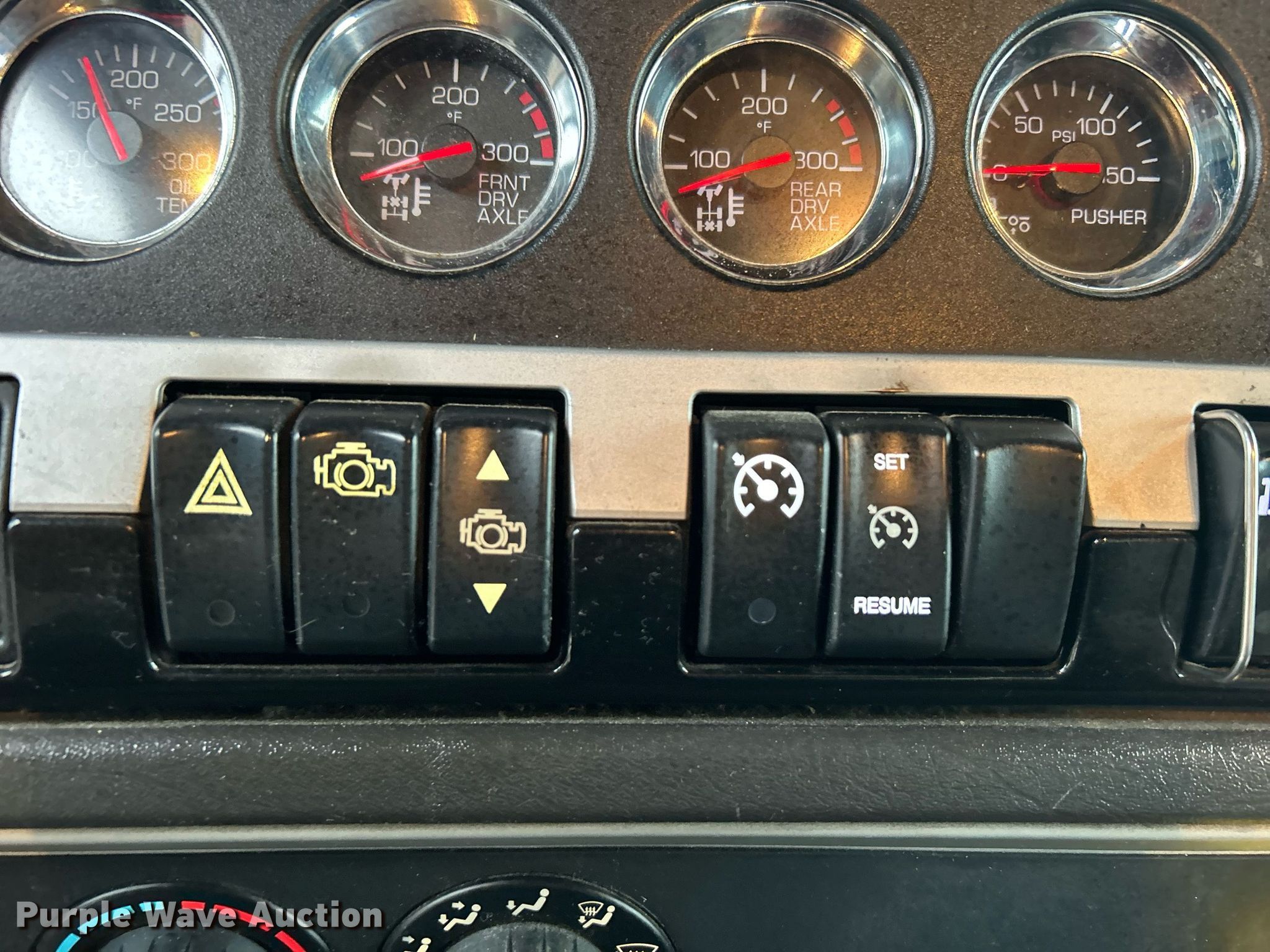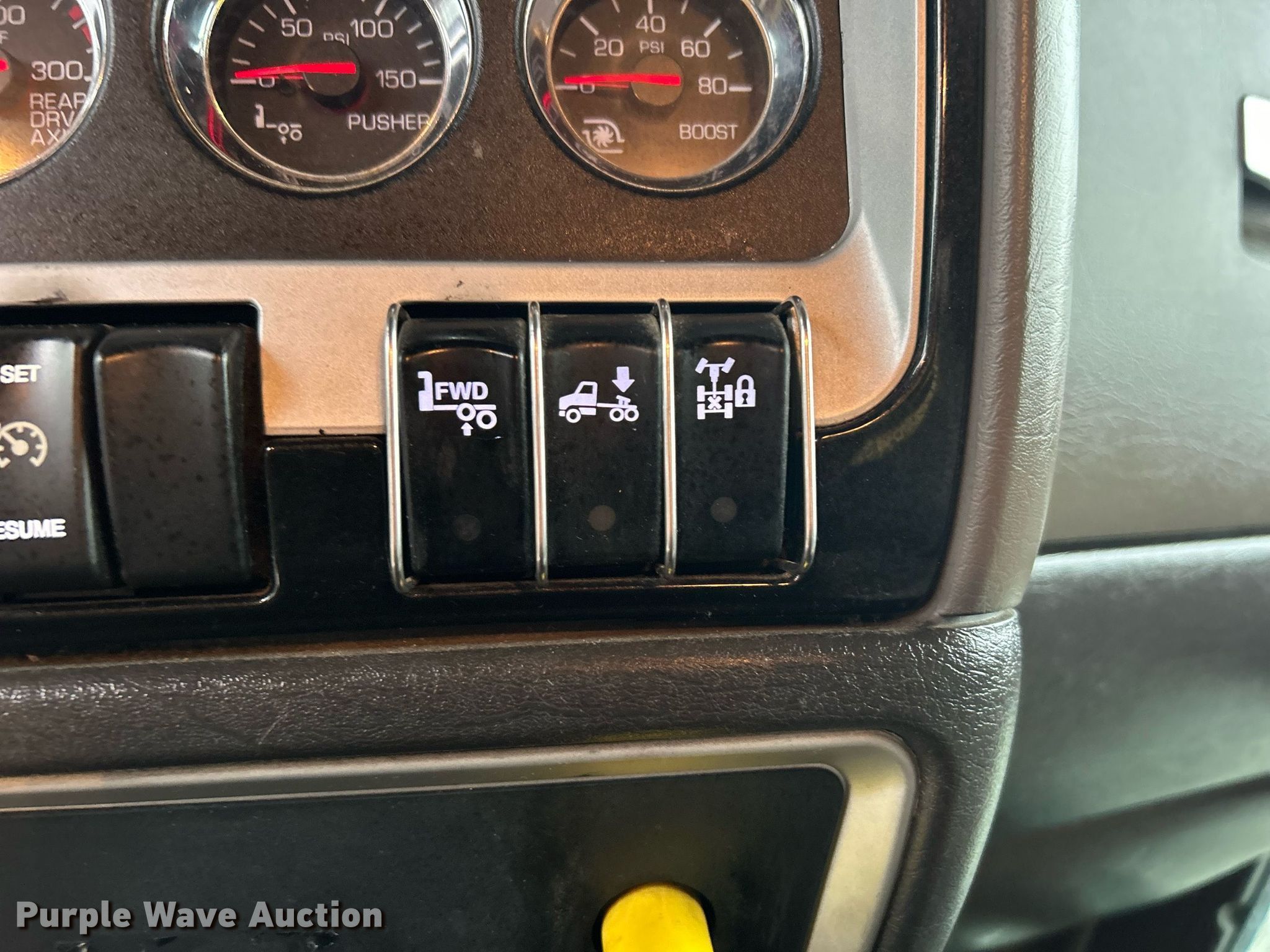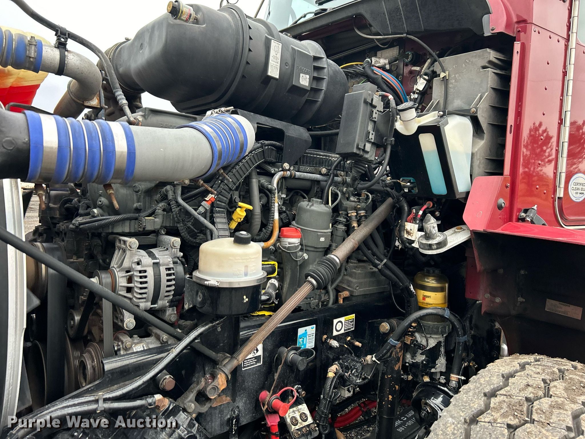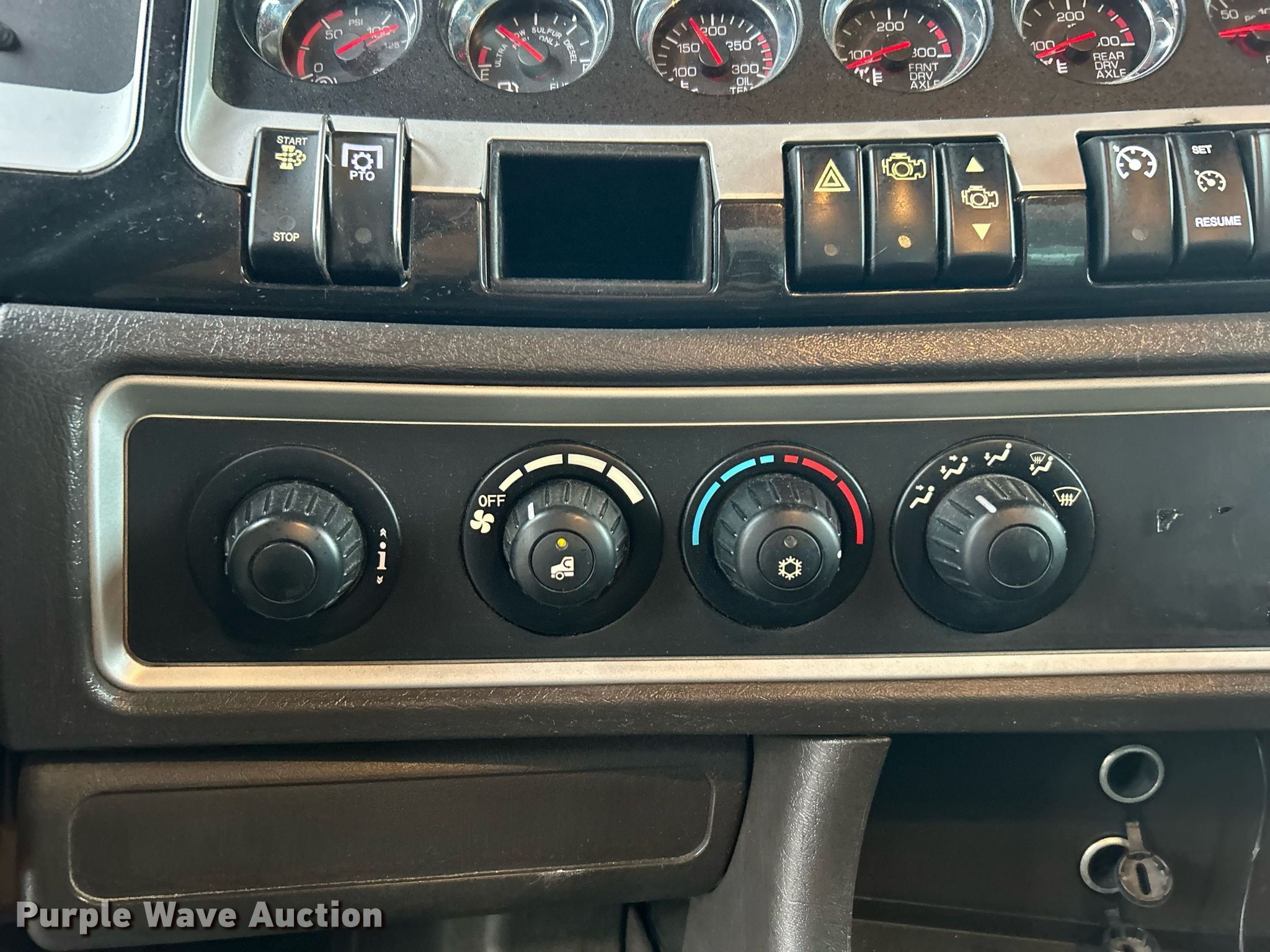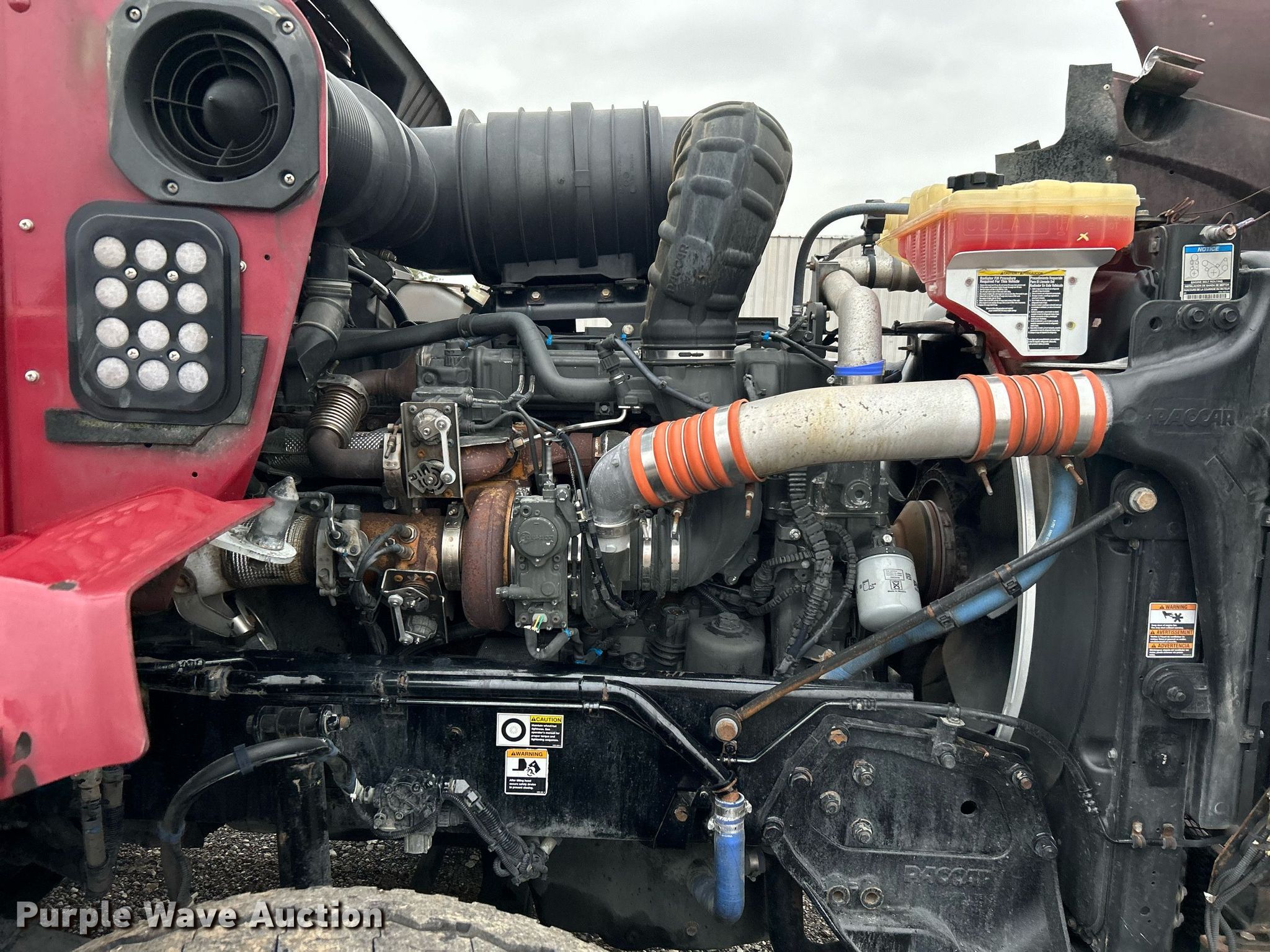 2015 Kenworth T800 tank truck. Miles: 534,081 on odometer, Hours: 13,132 on meter, VIN: 1NKDXP0X9FJ450959. Engine Paccar MX13, Serial: Y059231, Displacement: 12.9L, Cylinders: 6, Fuel type: Diesel, HP: 455, kW: 340. Transmission Eaton Fuller, Manual, Speed: 10. Chassis Axles: Tandem, Pusher axle, Differential lock: Inter-axle, Suspension: Air Dump valves, Brakes: Air, PTO, GVWR: 68,350 lbs. Interior AC, Heat, Power windows, Power locks, Cruise control. Features Bed / tank 19' 8" L x 84" W, Compartments: 1. Tires Front: 315/80R22.5, Rear: 11R22.5, Lift axle: 295/75R22.5. Notes Tank damage. Oklahoma title. Title distribution may be delayed up to 14 days from verification of funds. 15107 North 137th East Avenue. Collinsville, OK 74021
