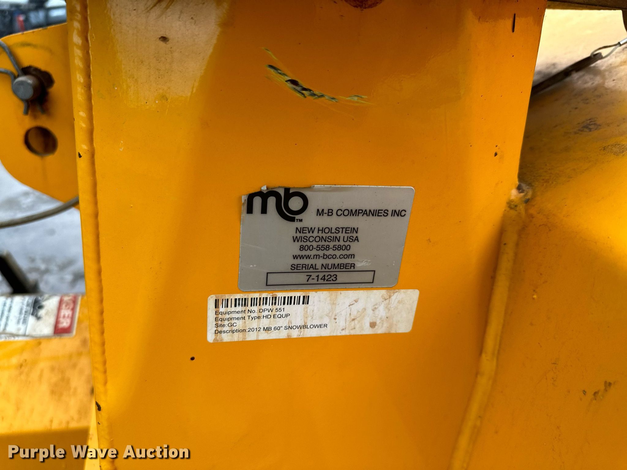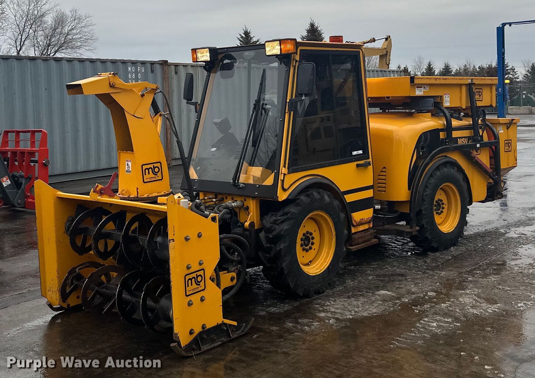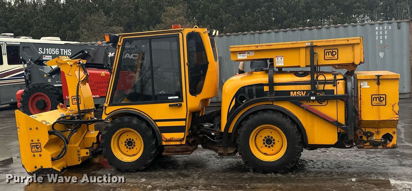 2012 MB MSV municipal tractor. Hours: 1,840 on meter, VIN: 1M9AC1324CH849050, Serial: 92050. Engine Cummins , Displacement: 4.5L, Fuel type: Diesel. Transmission Hydrostatic. Operators station AC, Heat. Features MB snow blower Width: 56", MB spreader, MB snow plow Width: 60, MB sweeper Width: 60", Hydraulic remote sets Front: 3, Rear: 1, Backup camera. Tires Size: 10.5/80-18. Notes Additional 10.5/80-18 tire and wheel, Additional chute included, (5) additional 33/16LL500 tires and wheels included. D & S Construction Service Inc. 9036 County Road 5. North Branch, MN 55056
