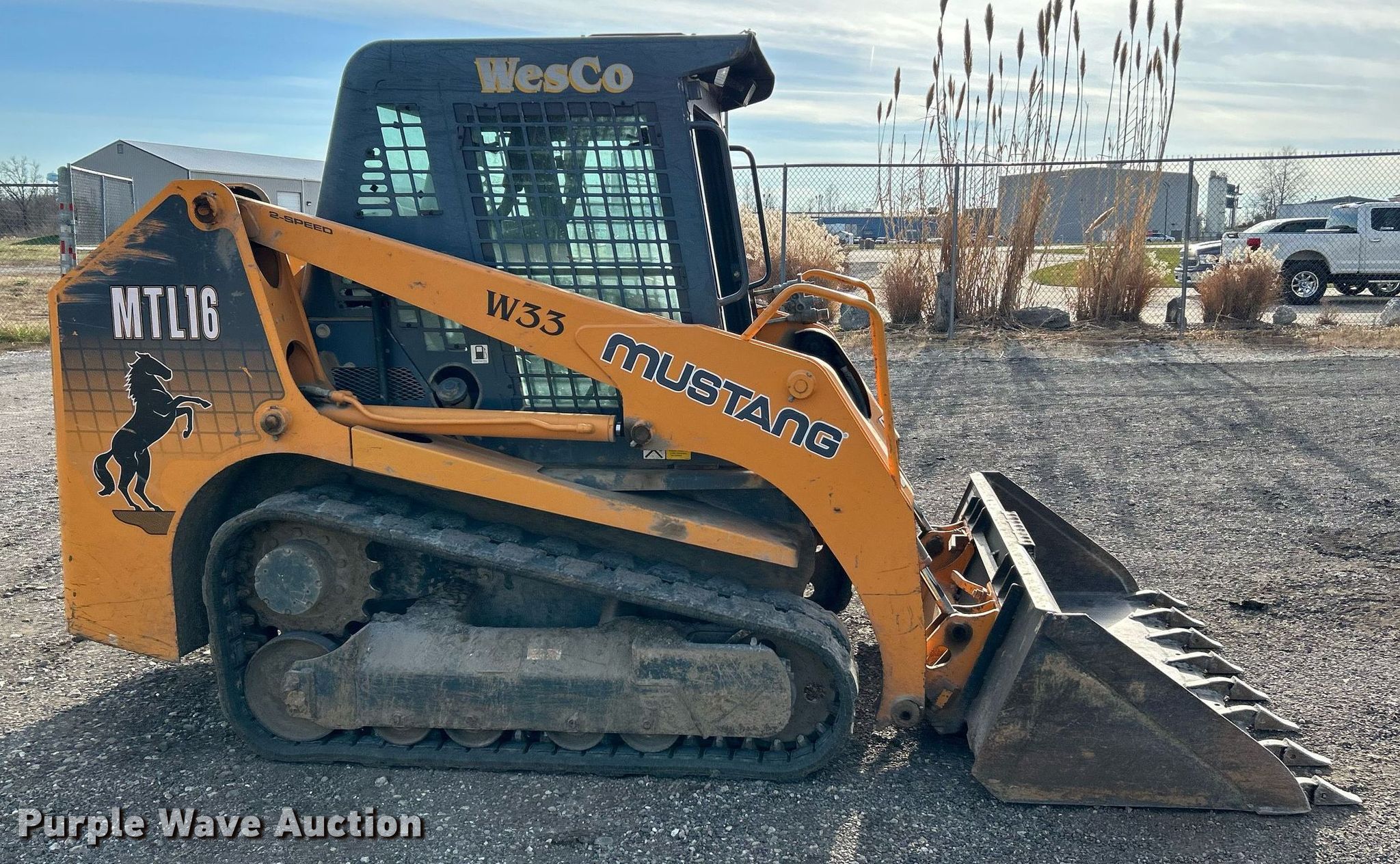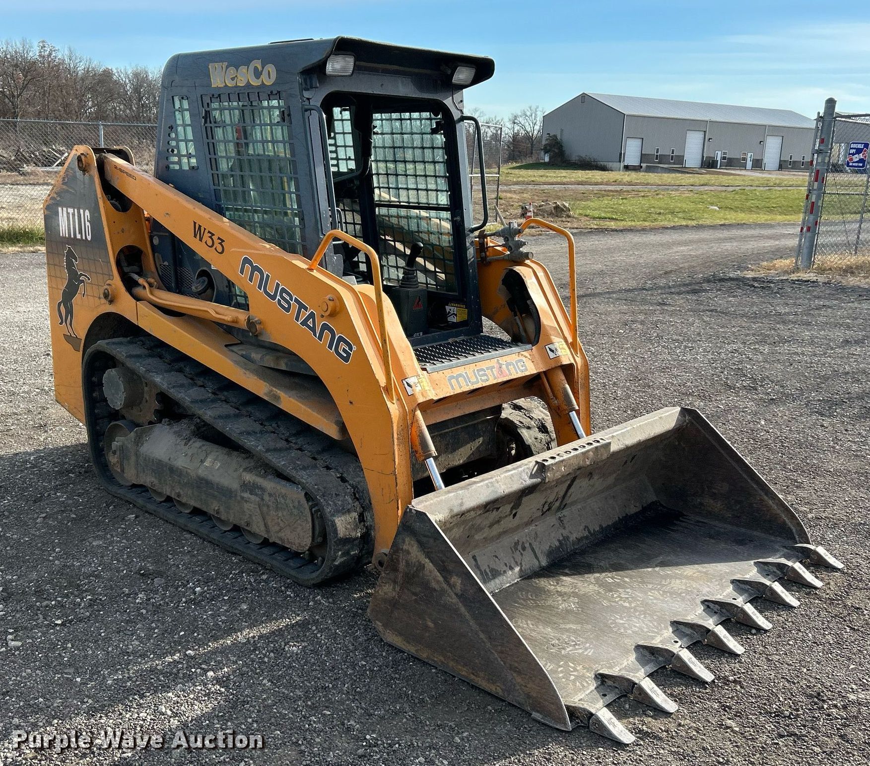 2007 Mustang MTL16 tracked skid steer loader. Hours: 902 on meter, Serial: 21309618. Engine Yanmar 4TNV98-YTBL, Displacement: 3.3L, Cylinders: 4, Fuel type: Diesel, HP: 66. Transmission Hydrostatic, Two speed travel. Operators station Enclosed cab, Heat, Bucket control: Hand. Features Auxiliary hydraulics, Quick coupler: Manual, Bucket Edge 502440, Width: 72". Tracks Width: 12". WesCo Hauling & Contracting, Inc.. Moscow Mills, MO 63362