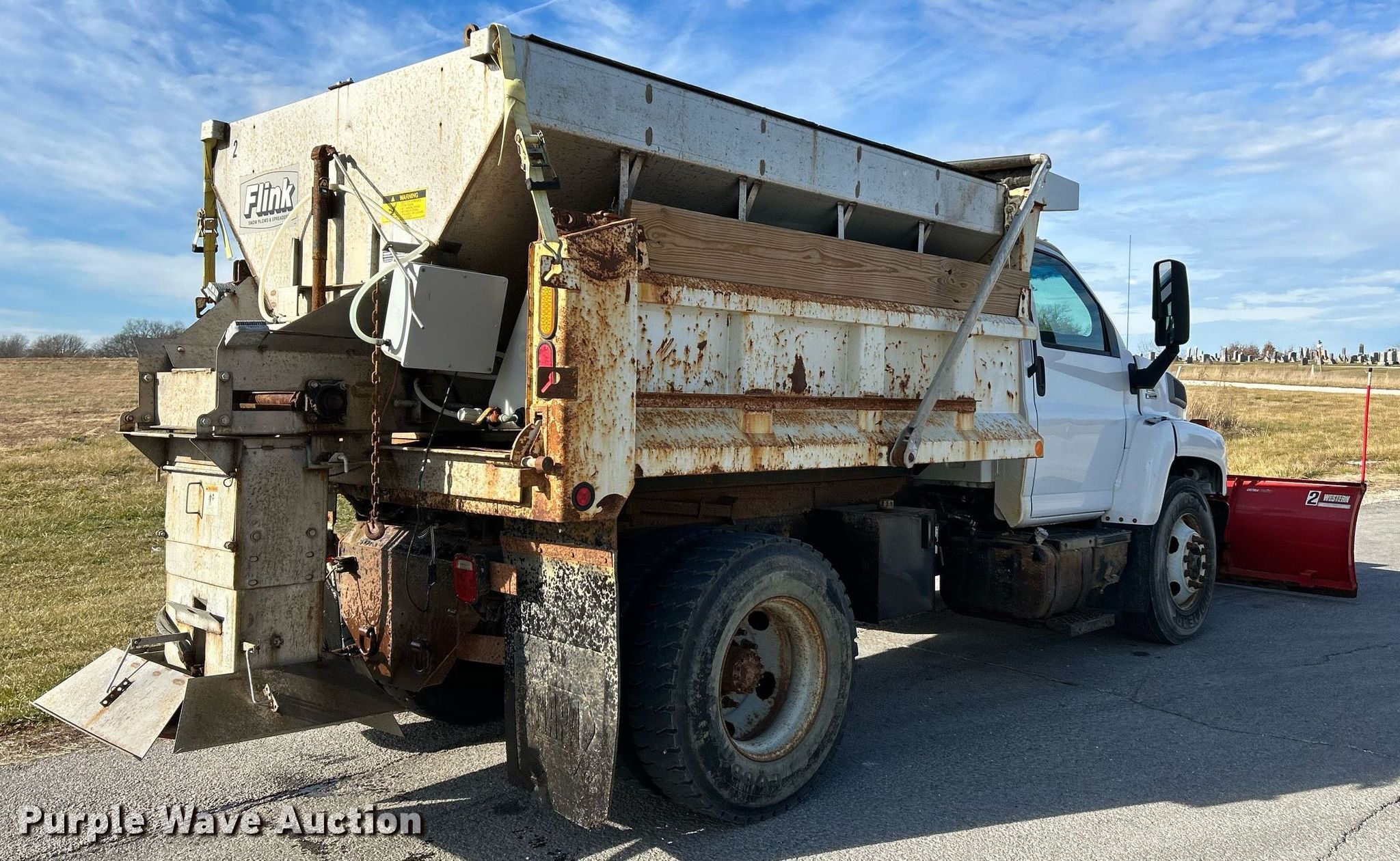 2009 GMC C7500 dump truck. Miles: 46,337 on odometer, VIN: 1GDJ7C1B19F408434. Engine Isuzu, Displacement: 7.8L, Cylinders: 6, Fuel type: Diesel. Transmission Automatic. Chassis Axles: Single, Differential lock: Inter-axle, Suspension: Spring, Brakes: Hydraulic, PTO, GVWR: 25,950 lbs FAWR: 10,000 lbs, RAWR: 19,000 lbs. Interior AC, heat, Cruise control. Features Dump bed 10' L x 96" W, Side height: 27", Side board height: 9", Bed type: Steel, Roll tarp, Ram: Single, End gate: Air operated, Spreader Flink, Plow Western Ultra finish, Width: 120". Tires Size: 11R22.5. Notes Tailgate included, Salt spreader issue, hydraulic hose leaks. Missouri title. Seller is a Missouri licensed motor vehicle dealer. Title will be assigned and distributed by the dealer. Please contact the seller for distribution questions. Title distribution may be delayed up to 30 days from verification of funds. Fruendly Auto Source Inc.. 110 Raceway Park Dr. Moscow Mills, MO 63362