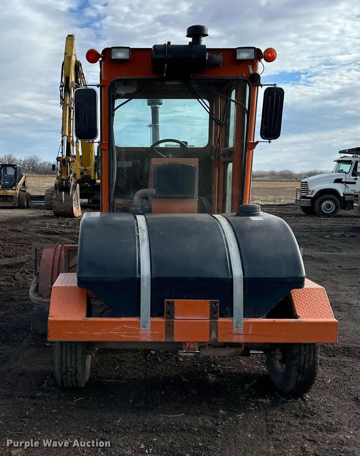 Broce KR350 broom. Hours: 485 on meter, Serial: 409124. Engine Kubota, Cylinders: 4, Fuel type: Diesel. Transmission Hydrostatic. Chassis Brakes: Hydraulic. Operators station Enclosed cab, AC, Heat. Features Broom Width: 96", Water spray system. Tires Size: ST225/75R16. Sunflower Paving Inc.. 4123 Northeast Seward Avenue. Topeka, KS 66616