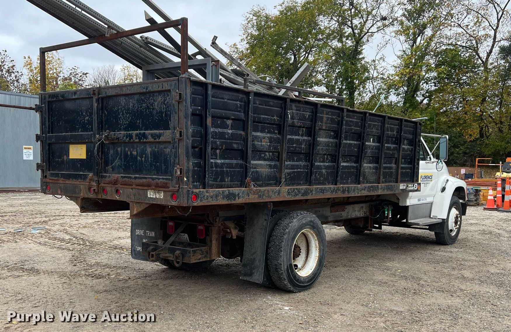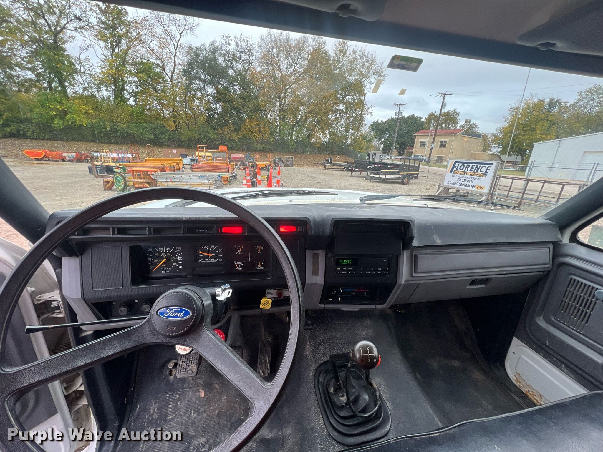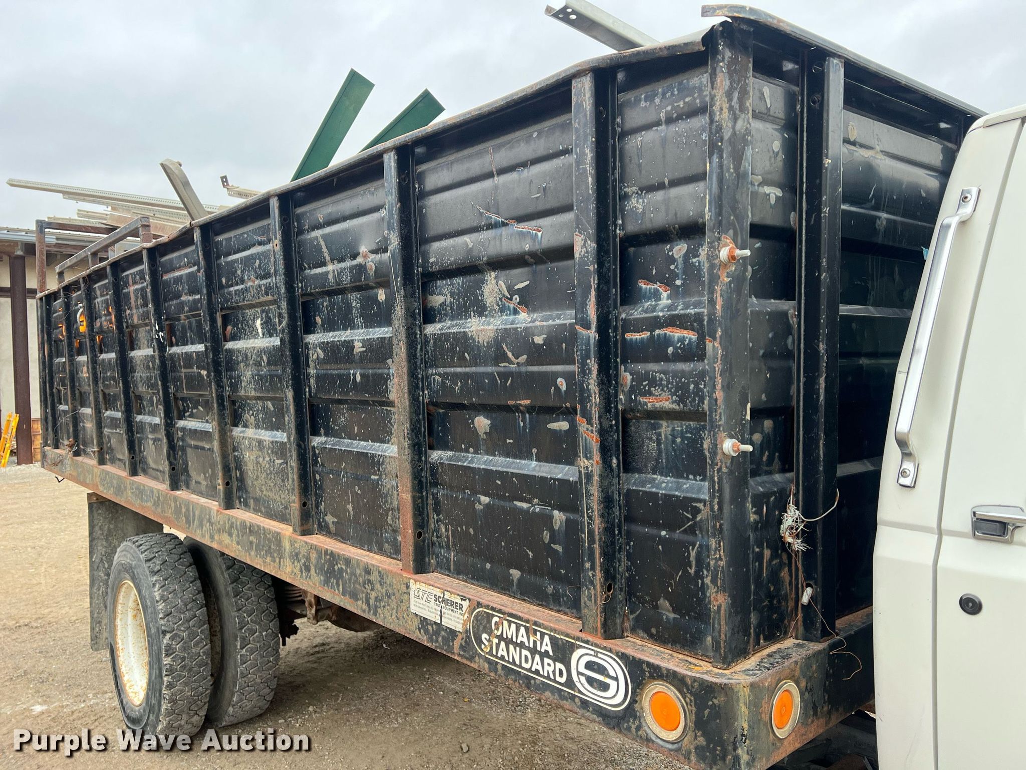 1995 Ford F700 dump truck. Miles: 30,879 on odometer, Miles or hours may vary, unit still in use, VIN: 1FDNF70J8SVA39670. Engine Displacement: 7.0L, Cylinders: 8, Fuel type: Gas, HP: 236. Transmission Manual, Speed: 5, plus 2. Chassis Axles: Single, Suspension: Spring, Brakes: Hydraulic, PTO, GVWR: 26,000 lbs FAWR: 8,500 lbs, RAWR: 17,500 lbs. Interior Heat, Brake controller. Features Dump bed Omaha Standard, 18' L x 96" W, Bed type: Steel, Ram: Single, End gate: Manual. Tires Size: 10/R22.5. Notes Contents in bed not included, Dash warning indicator: Brake, Non-operational dump bed. Kansas title. Bob Florence Contractor, Inc.. 1934 South Kansas Avenue. Topeka, KS 66612