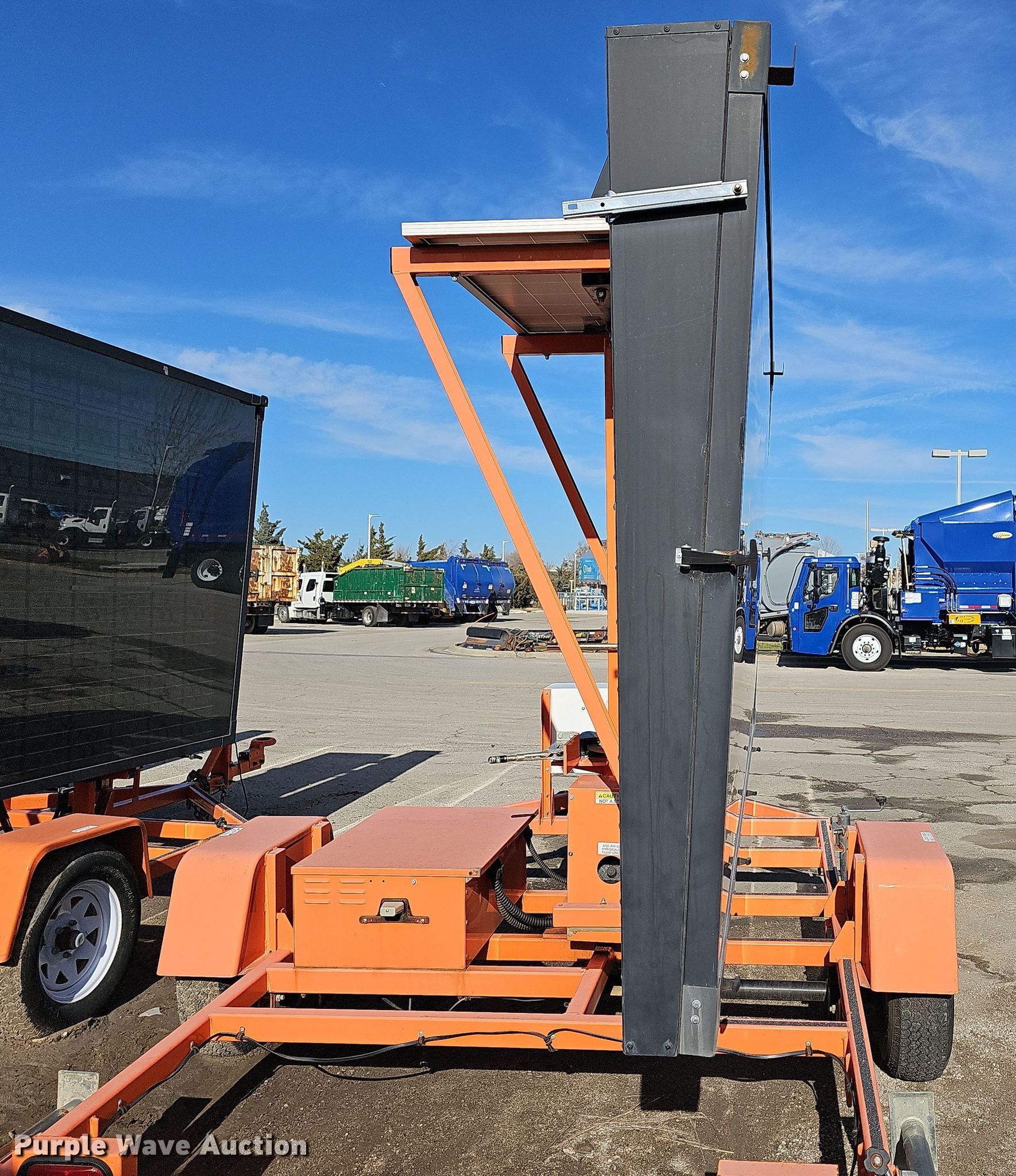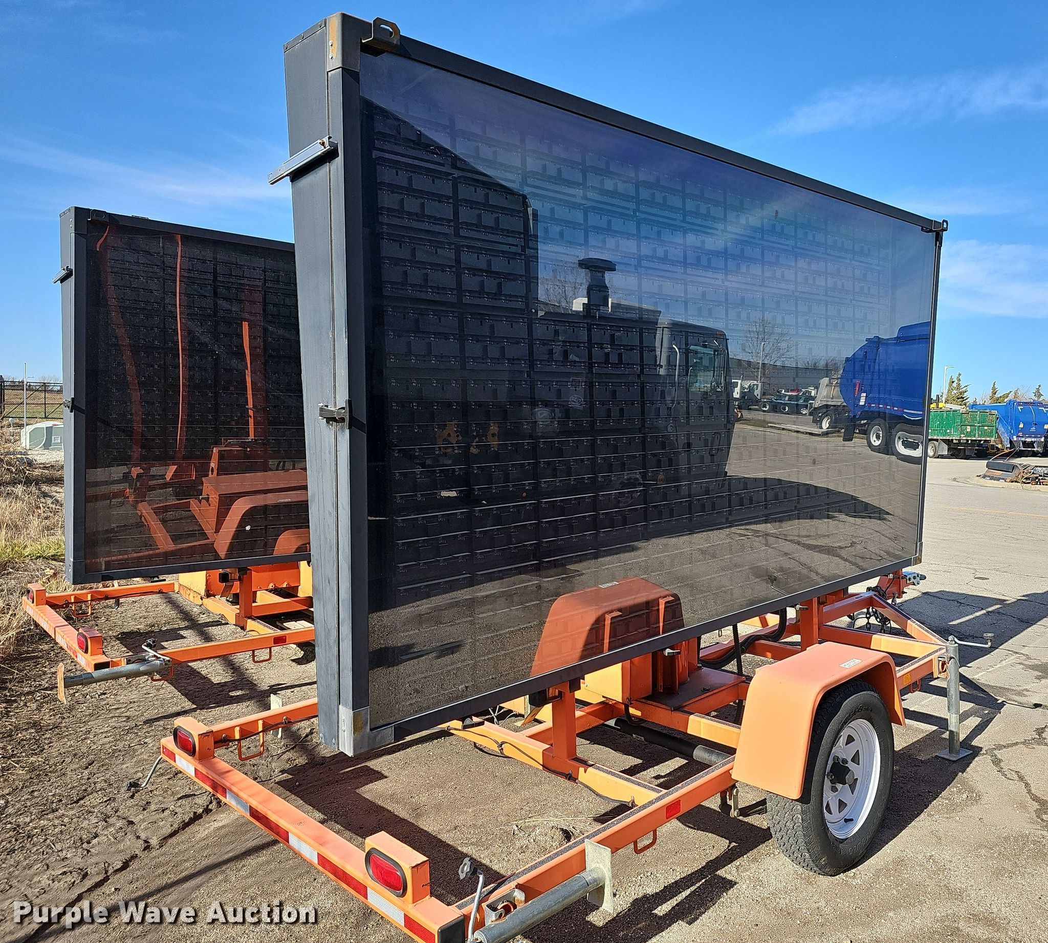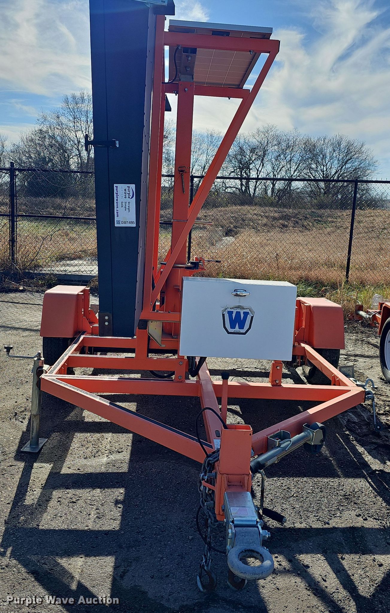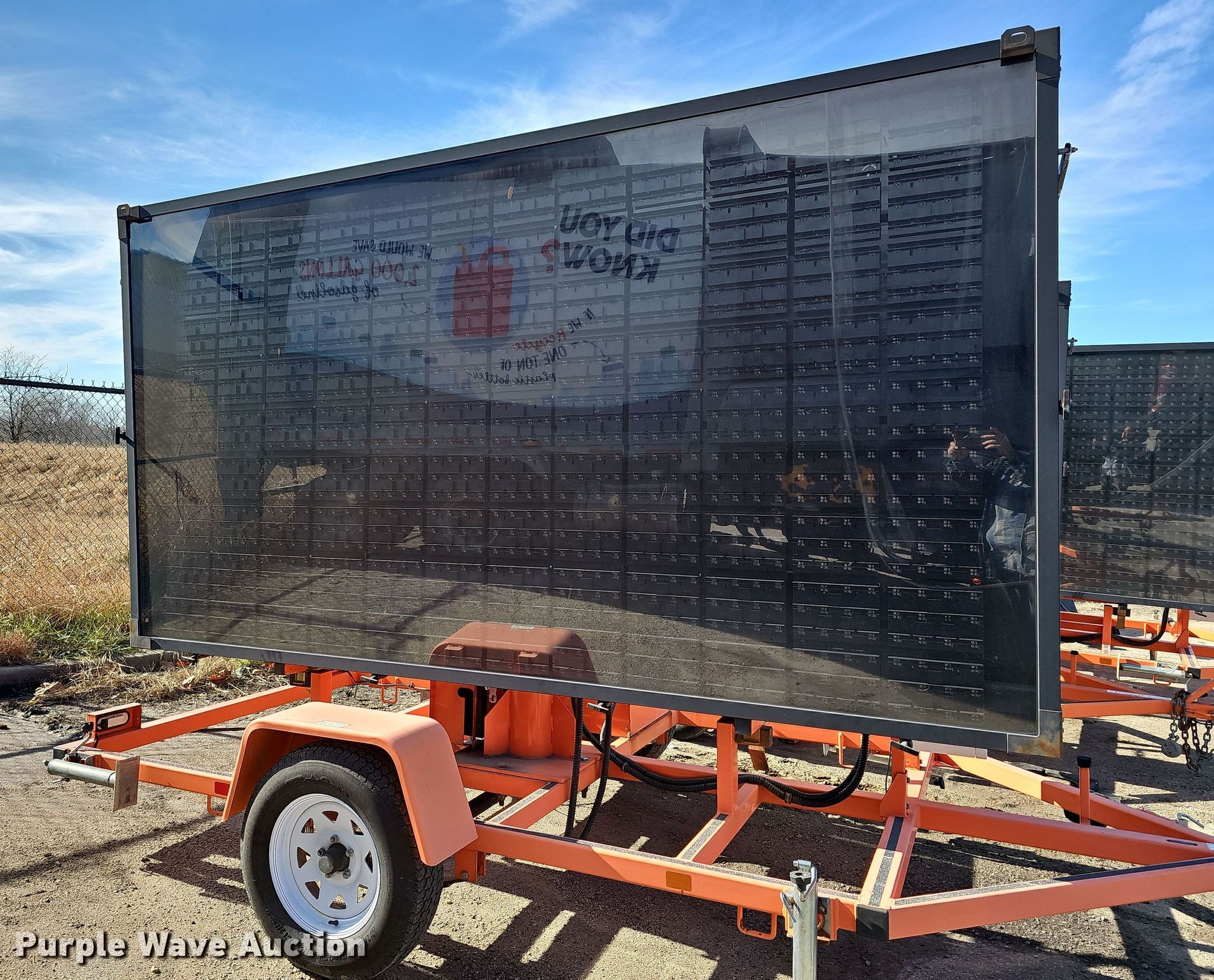 Purple Wave is selling a used Road Safety Equip. in Kansas. This item is a 2012 Wanco WTMMB portable road sign with the following: VIN: 5F12S1619C1003498, Unit #: OPD02, Hitch: Pintle, GVWR: 3,600 lbs, Stabilizers: 4