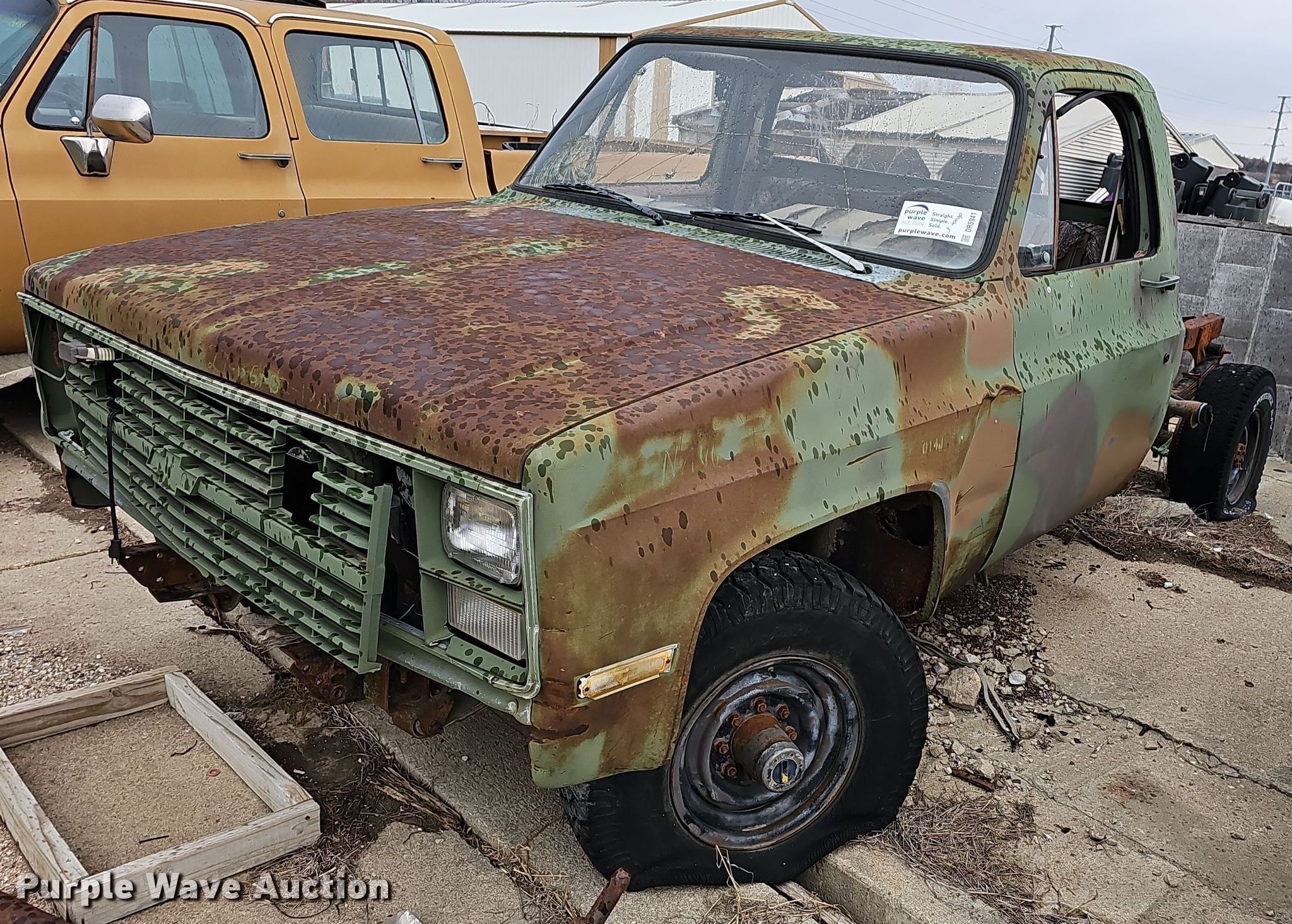 1985 Chevy CD30903 pickup truck cab and chassis. Miles: Unknown, VIN: 1GCGD34J4FF411107, Unit #: 3. Engine Displacement: 6.2L V8 OHV , Fuel type: Diesel. Transmission Automatic, Four wheel drive. Tires Size: LT265/75R16. Notes Parts only , Parts missing, Windows and mirrors missing, Rodent damage, Windshield chipped or cracked, Dead battery, Non-operational unit. Kansas title. Title distribution may be delayed up to 14 days from verification of funds. Manhattan, KS 66503