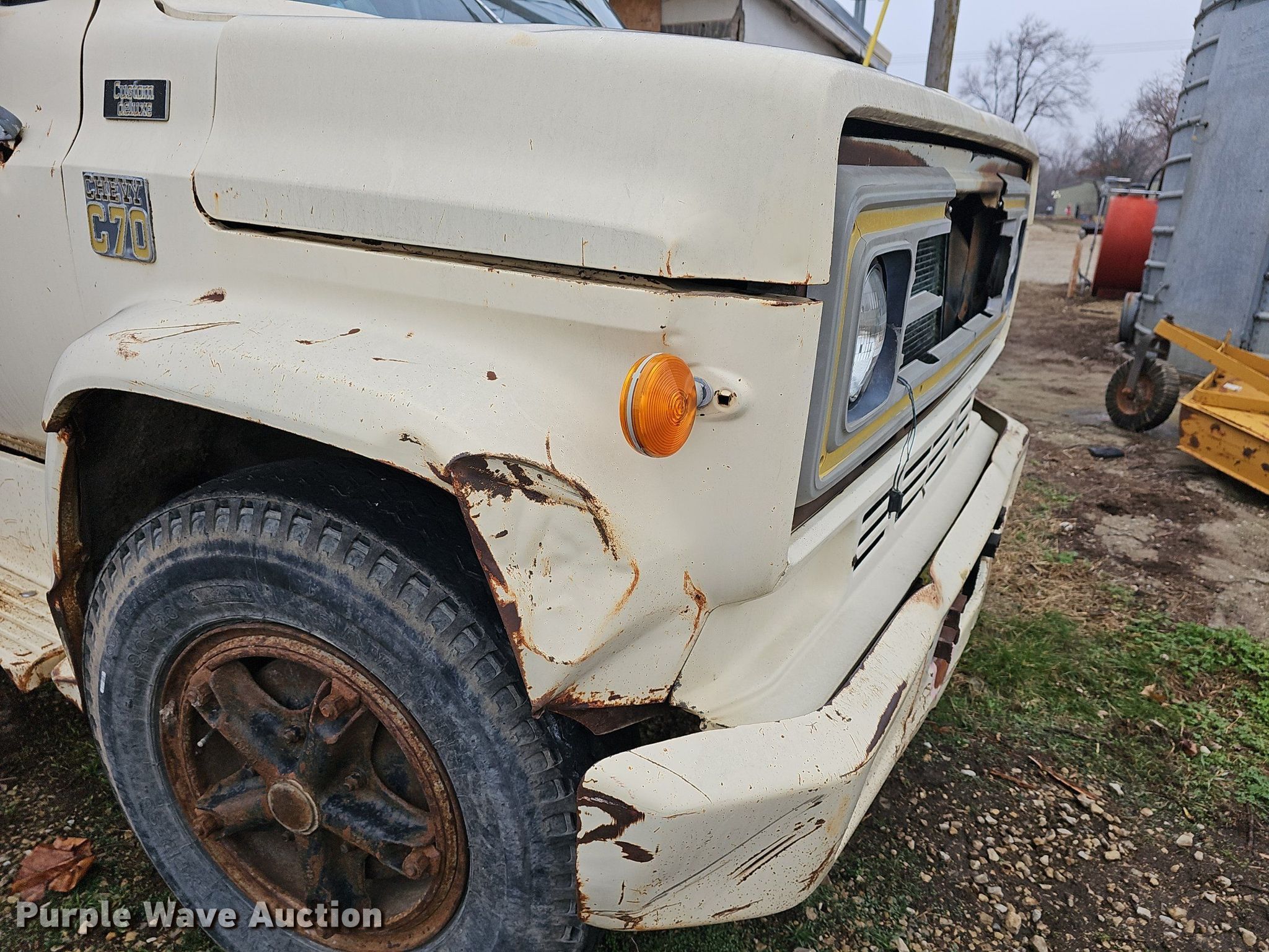 Purple Wave is selling a used Grain Truck in Kansas. This item is a 1979 Chevrolet C70 grain truck with the following: Miles: 90,561 on odometer, VIN: C17DB9V179539, Unit #: 17